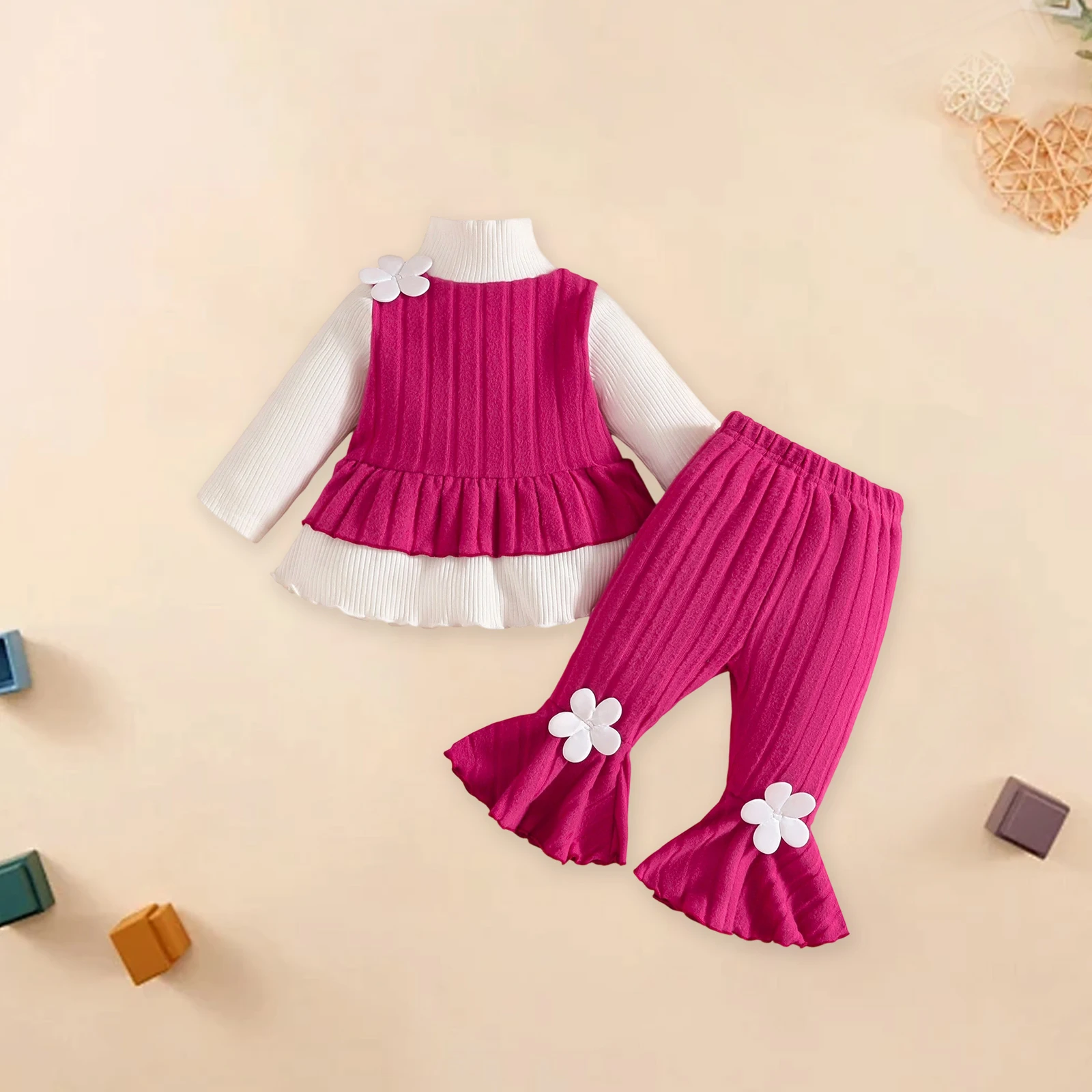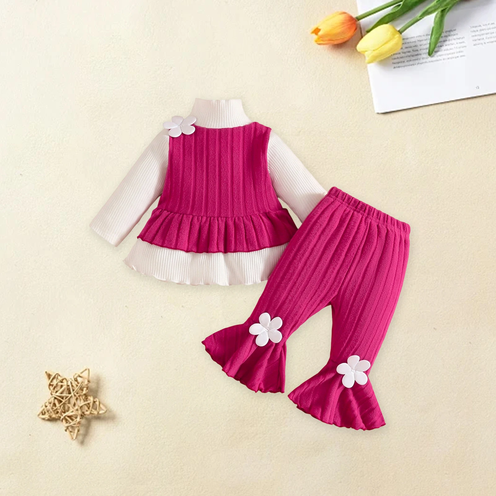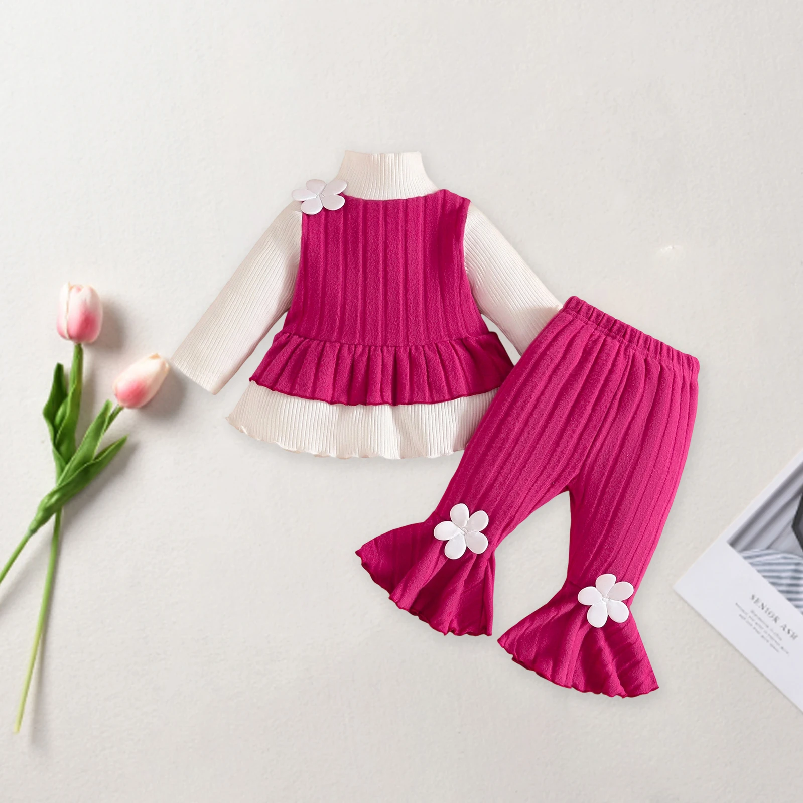 Discover the delightful Toddler Baby Girl Fall Outfits featuring a charming 3D flower design. This adorable two-piece set includes a long sleeve top and stylish bell-bottom pants, perfect for your little one to wear during any season. The outfit is designed for comfort and cuteness, making it an excellent choice for playdates, family gatherings, or just a day out. With its vibrant red color and intricate details, your toddler will be the center of attention wherever she goes!