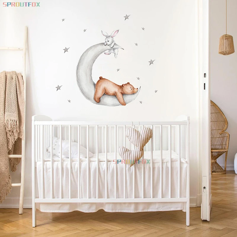 Apportez une touche magique et ludique à la chambre de votre petite fille avec notre autocollant mural représentant un adorable lapin et un ours endormis sur la lune, entourés d’étoiles scintillantes. Ce sticker décoratif est parfait pour créer une atmosphère douce et apaisante, idéale pour le sommeil et l’éveil de votre enfant.