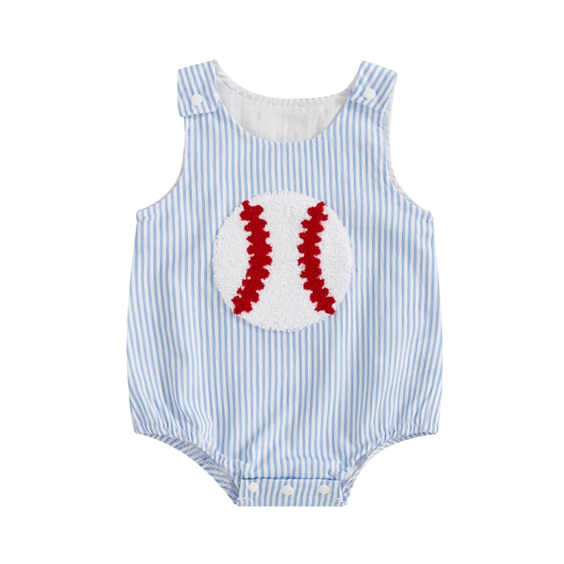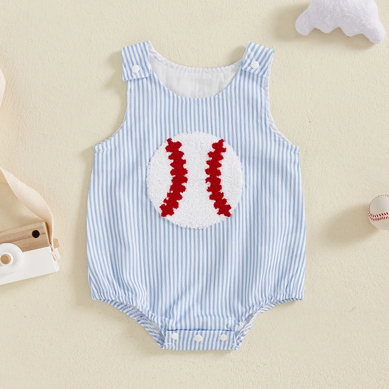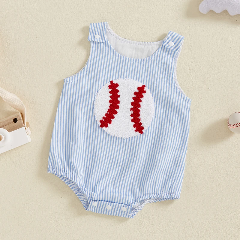 The Minimillo Baby Boys Girls Rompers is an adorable and stylish choice for your baby this summer. Designed with comfort and cuteness in mind, this romper features charming baseball embroidery and delightful stripes, making it an ideal outfit for any sunny day. Its sleeveless design ensures that your baby stays cool while exploring the world around them.