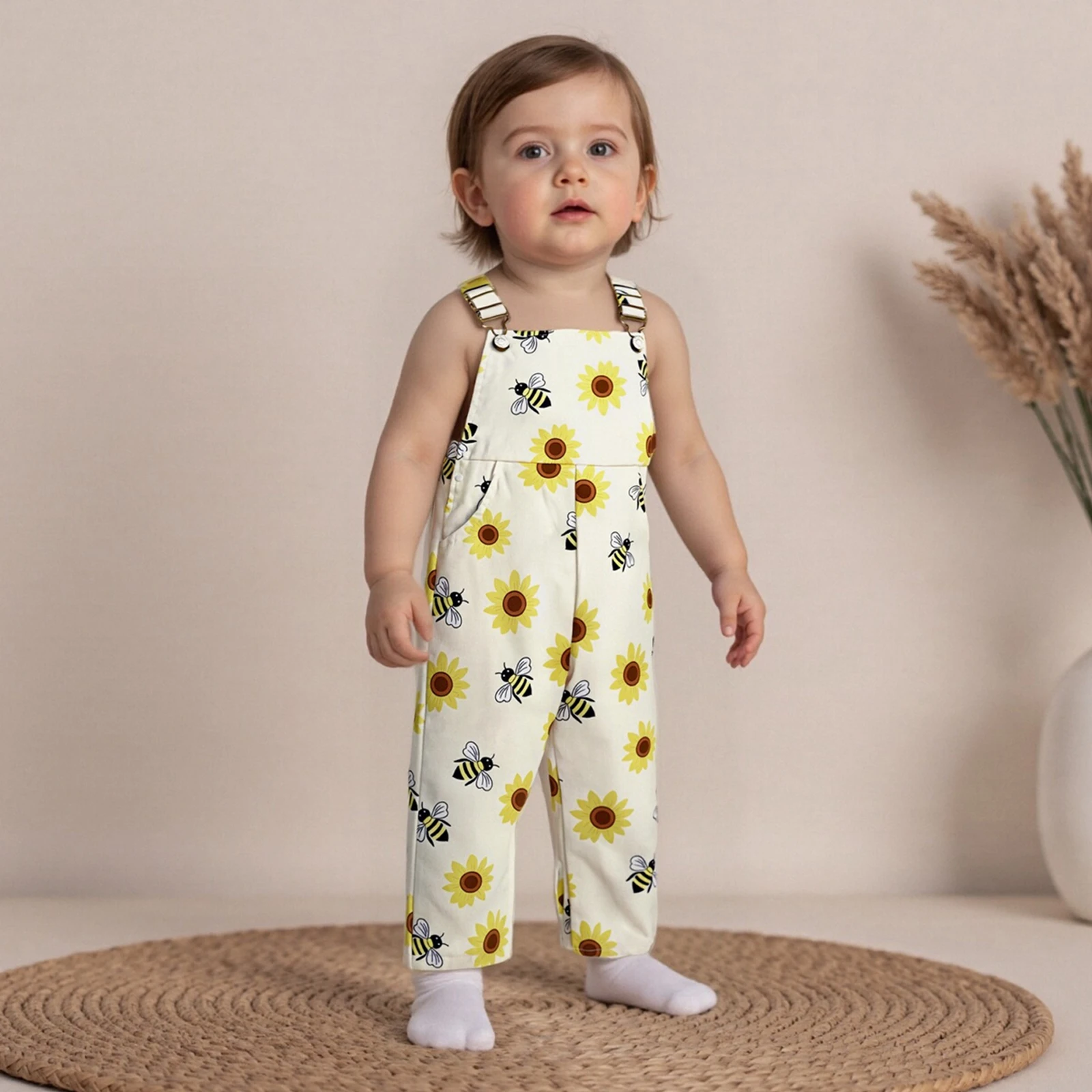 Introduce your little one to style and comfort with our adorable Toddler Girls and Boys Fall Overalls. This charming bee sunflower print sleeveless romper is perfect for any season, allowing your child to express their playful personality while staying comfortable and stylish. Designed with a square neck and made from high-quality 100% polyester, these overalls are both durable and soft against your child’s gentle skin. Whether it’s for a fun day out or playtime at home, these overalls are a must-have addition to your toddler’s wardrobe.
