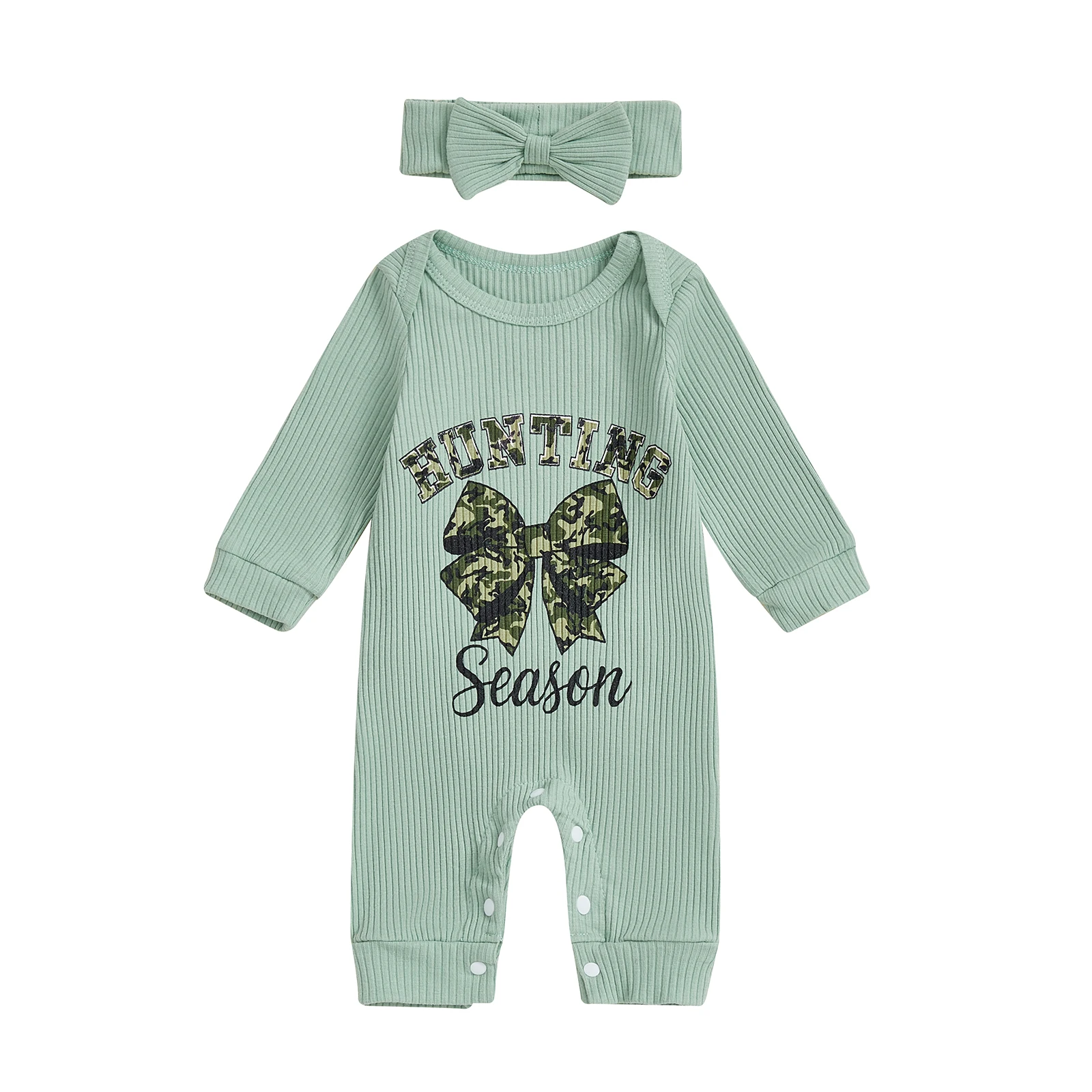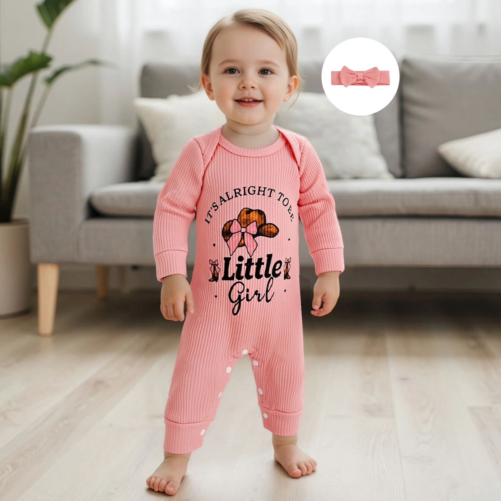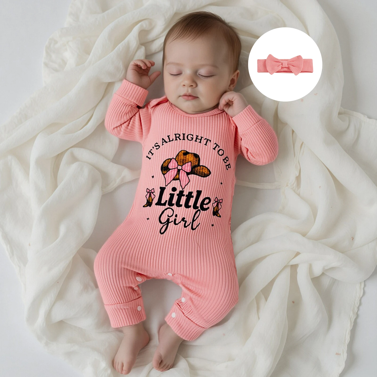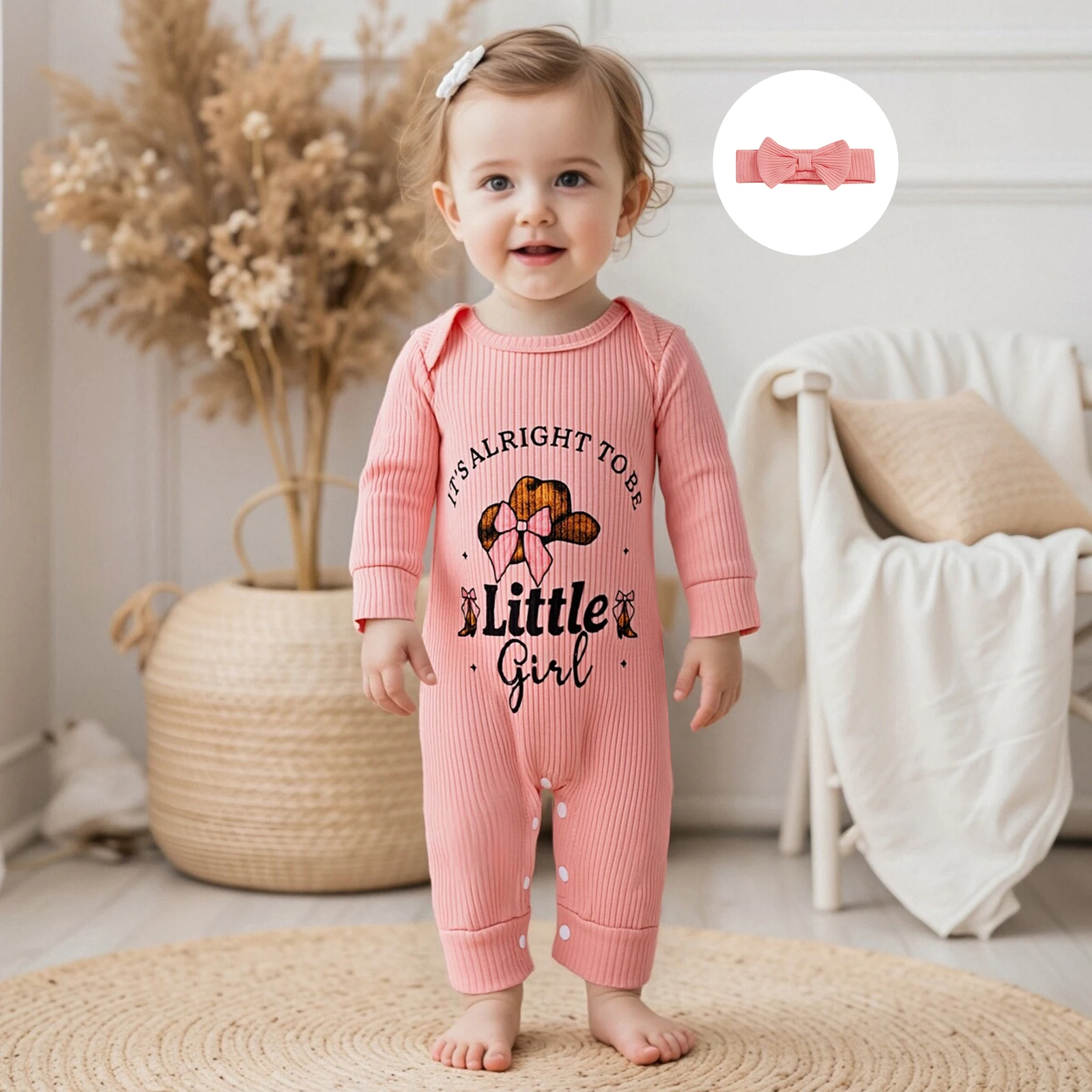 This adorable Baby Girl Fall Outfit set combines style and comfort for your little one. Featuring a charming crew neck long sleeve romper adorned with a cute bow letter design, this outfit is perfect for chilly days in the fall. Accompanied by a matching bow headband, this two-piece set will make your baby girl the center of attention. Made with high-quality materials, it ensures a snug fit while allowing freedom of movement for all her playful adventures!