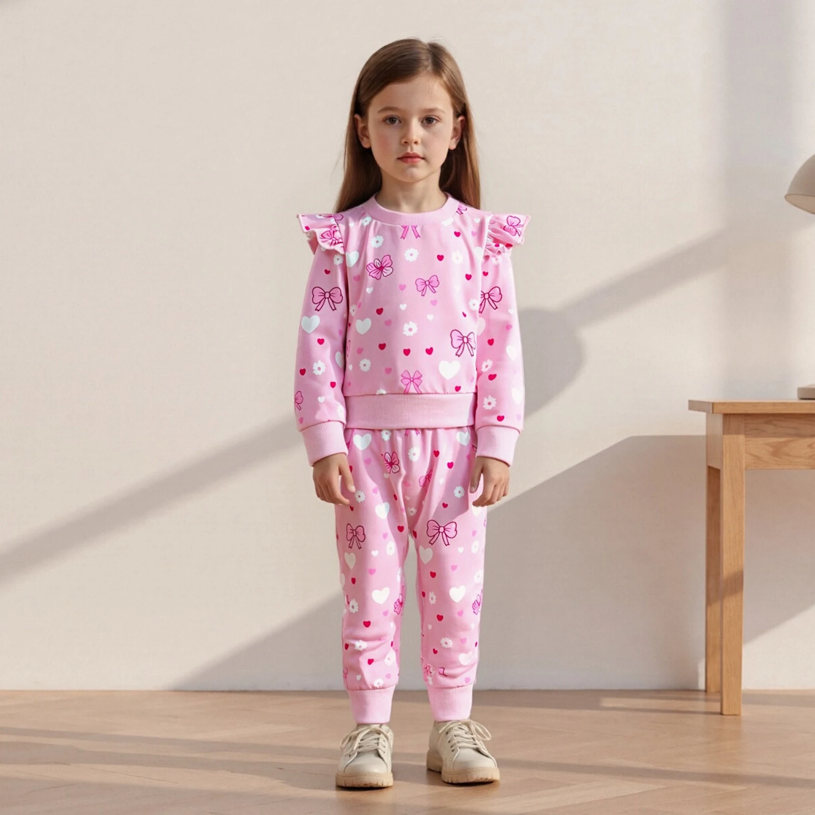 Toddler Baby Girls Clothing Set: Fashionable Bow Printed Long Sleeve Pullover with Pants
