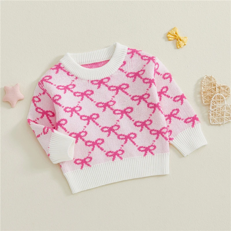 Toddler Baby Girl Bow Print Sweater