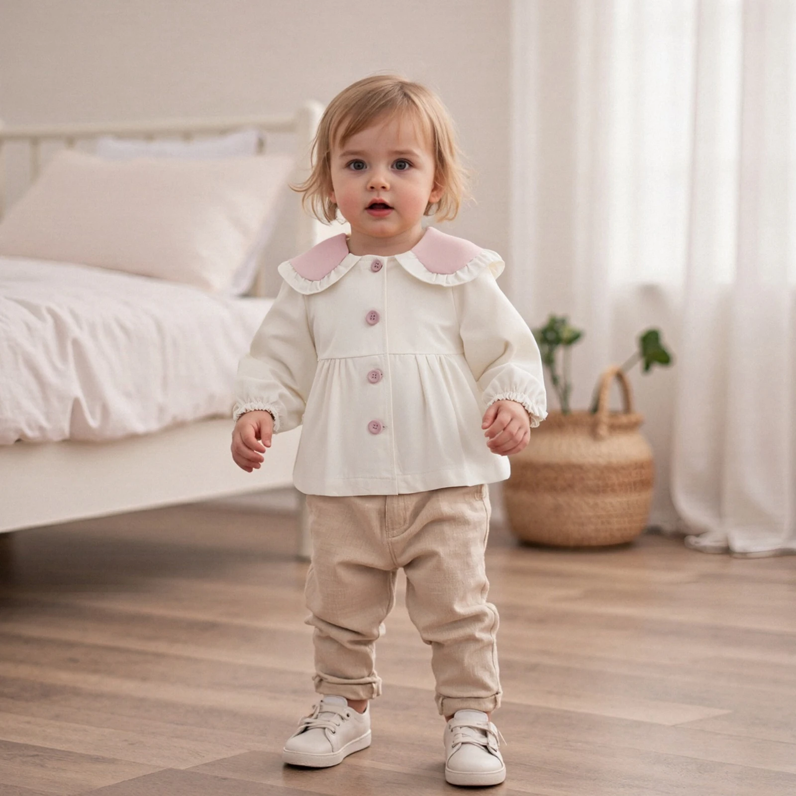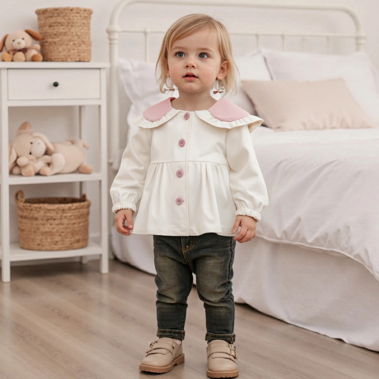 Introducing the perfect blend of style and comfort for your little one: the Toddler Girls Fall Jacket with Bunny Ears. This delightful long sleeve coat is designed to keep your child warm while adding a whimsical touch to their outfit. With its cute doll collar and button-down front, this loose-fitting jacket is an ideal choice for any occasion during Spring and Fall. Made from high-quality materials, it’s not just a fashion statement, but also a practical piece of outwear that parents can trust.