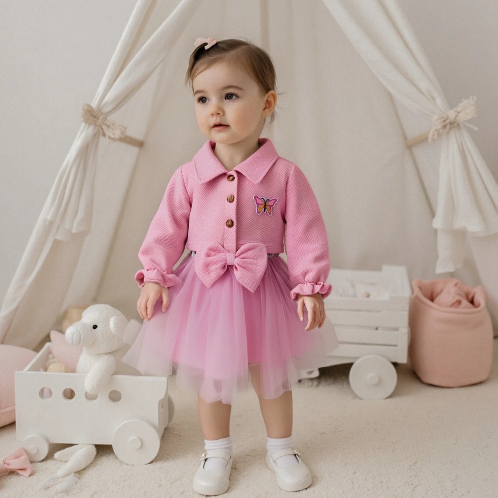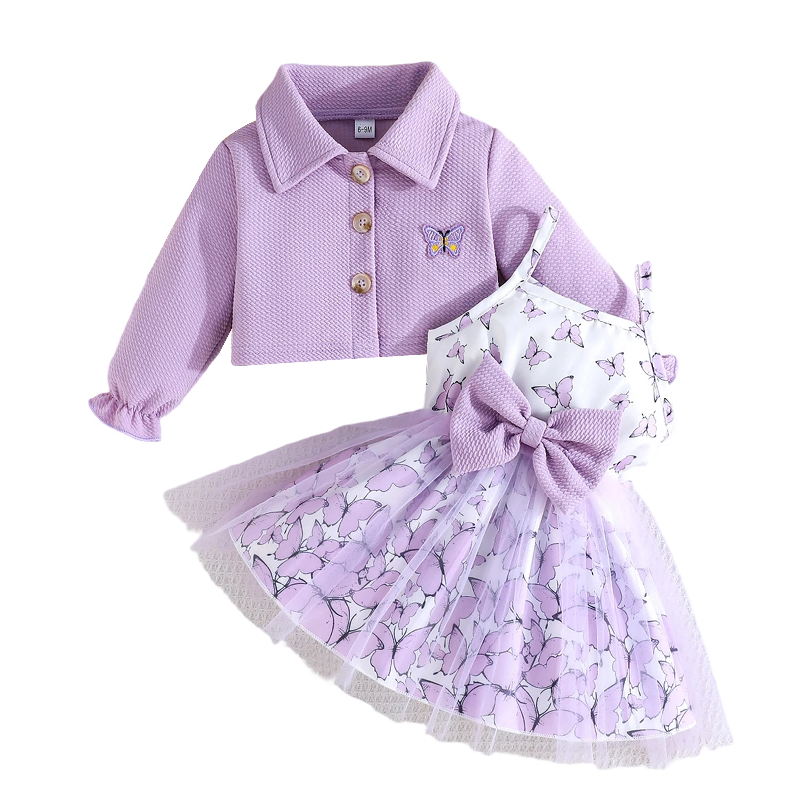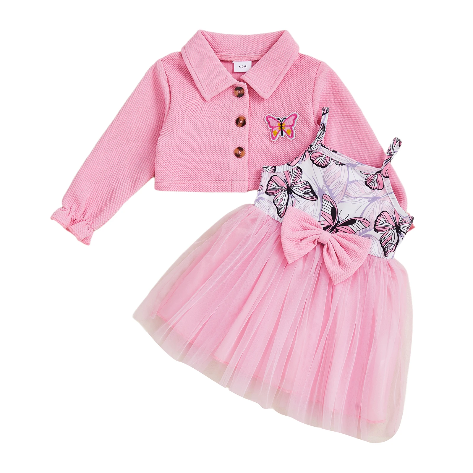 Introducing the charming Pudcoco Toddler Girl Fall Outfits, a delightful ensemble featuring a beautifully embroidered butterfly long sleeve jacket paired with a stunning sleeveless tulle patchwork dress. Perfect for little ones aged 6 months to 3 years, this outfit is designed with both style and comfort in mind. Your little girl will not only look adorable but will also feel free to express herself while playing and exploring.