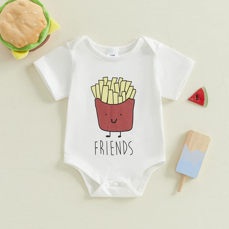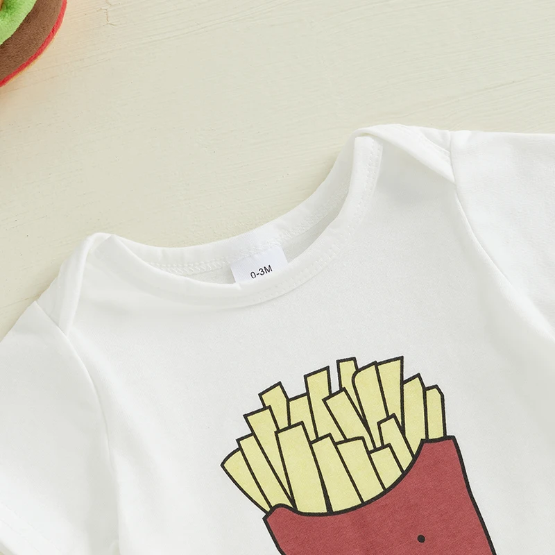 Introducing the Baby Cute Summer Romper, a delightful and playful outfit perfect for your little ones! This jumpsuit features an adorable cartoon print showcasing delicious French fries and burgers, making it a fun addition to any baby’s wardrobe. Suitable for both boys and girls, this stylish and comfortable outfit is designed to keep your baby looking cute and feeling great during the warm summer days.