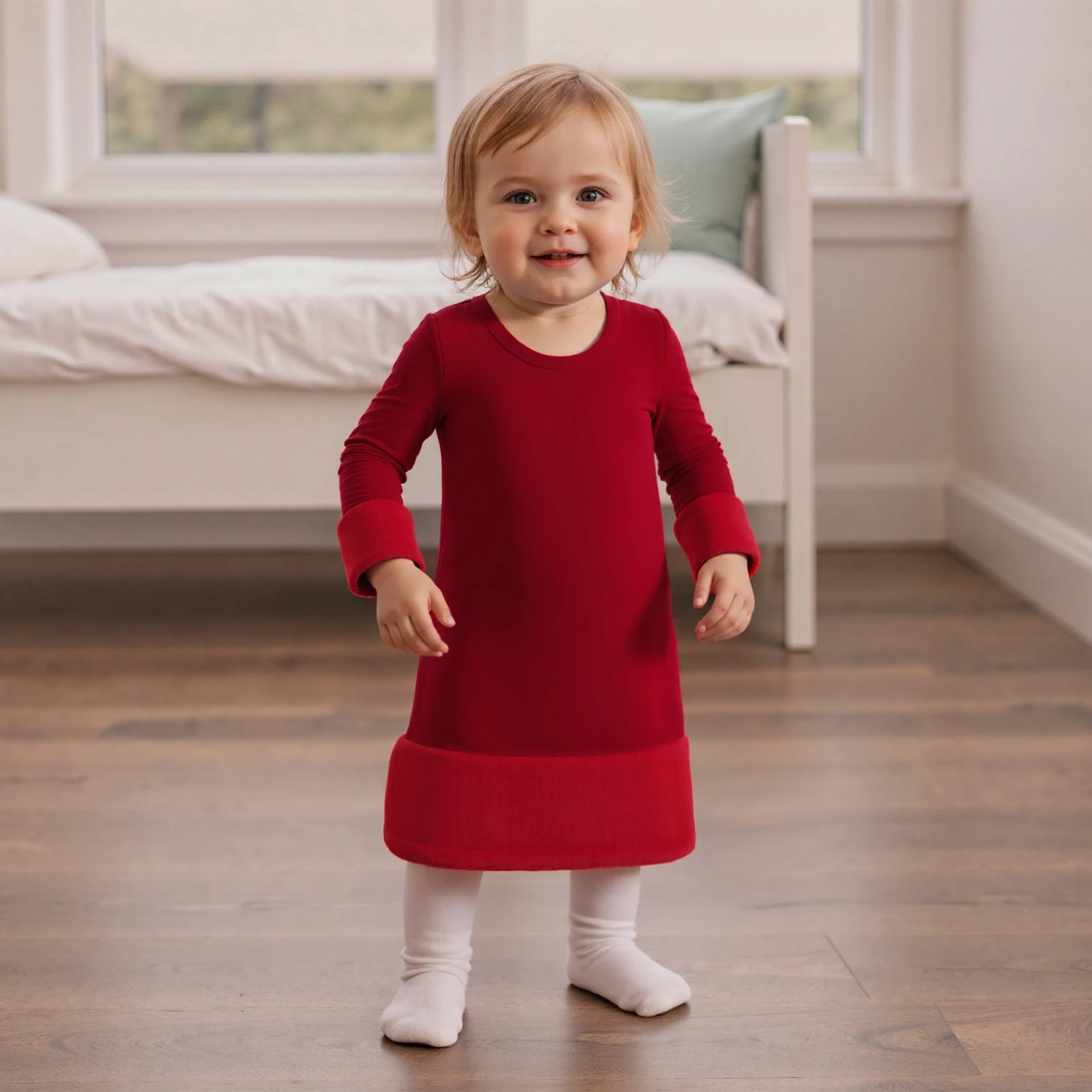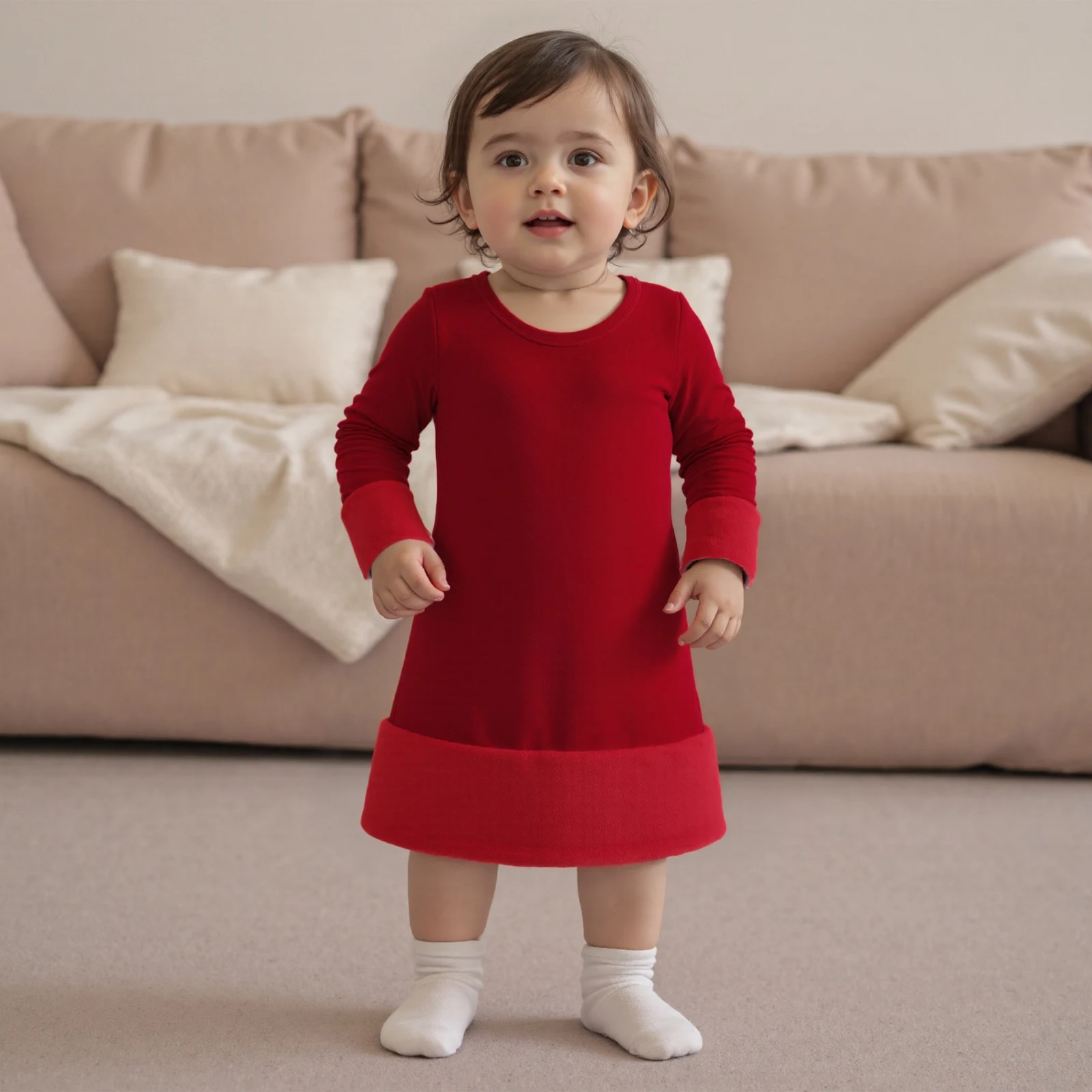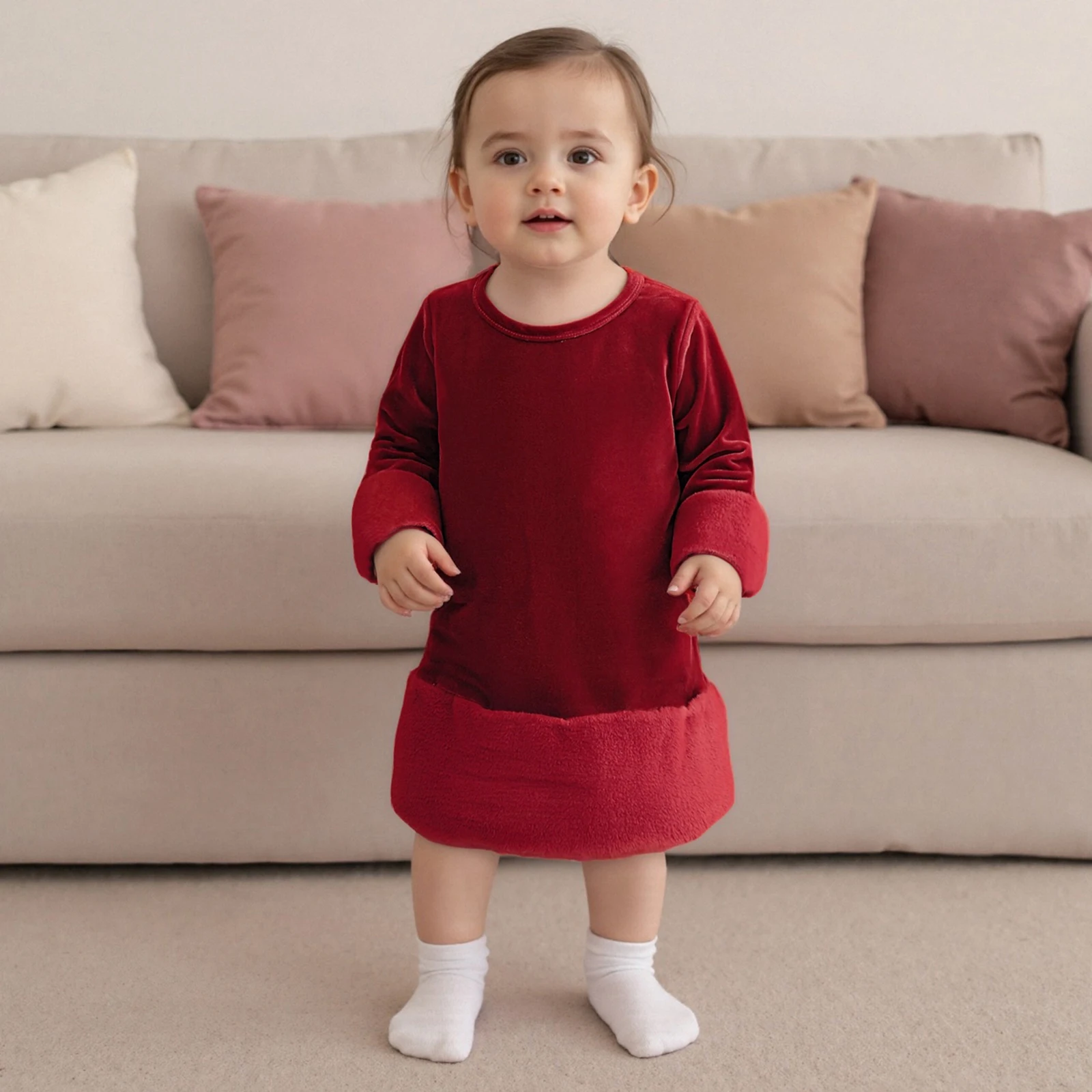 Make the holiday season extra special with our Baby Girls Christmas Dress. This charming outfit is designed for your little princess, featuring long sleeves and a cozy round neck, perfect for festive gatherings and family parties. The plush trim adds a touch of elegance, ensuring your toddler not only looks beautiful but feels comfortable all day long.