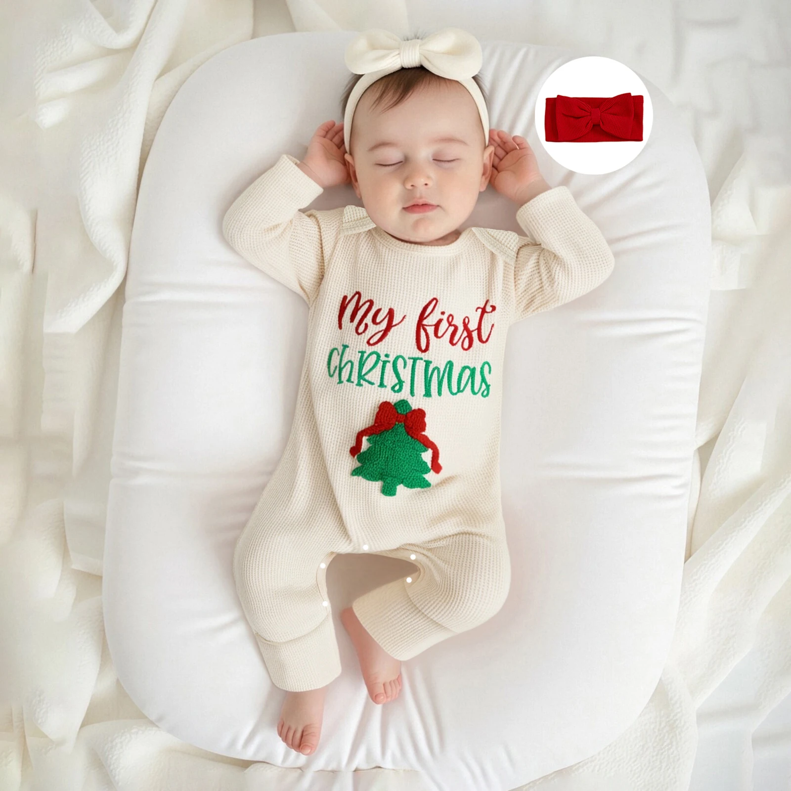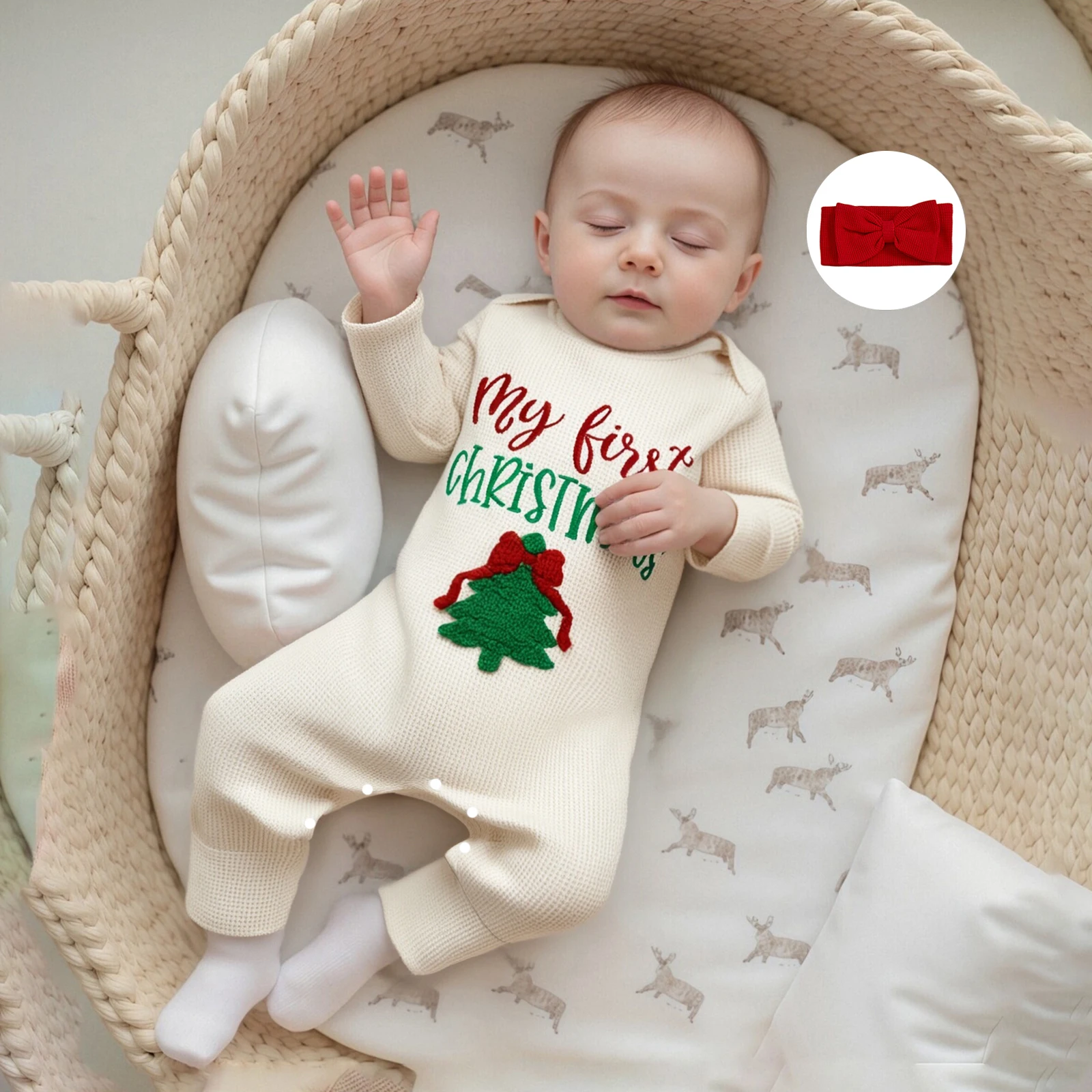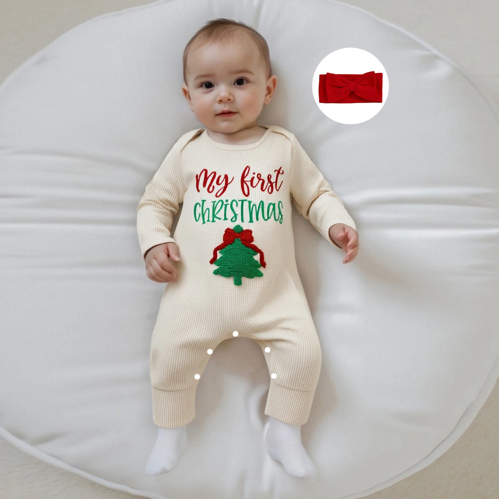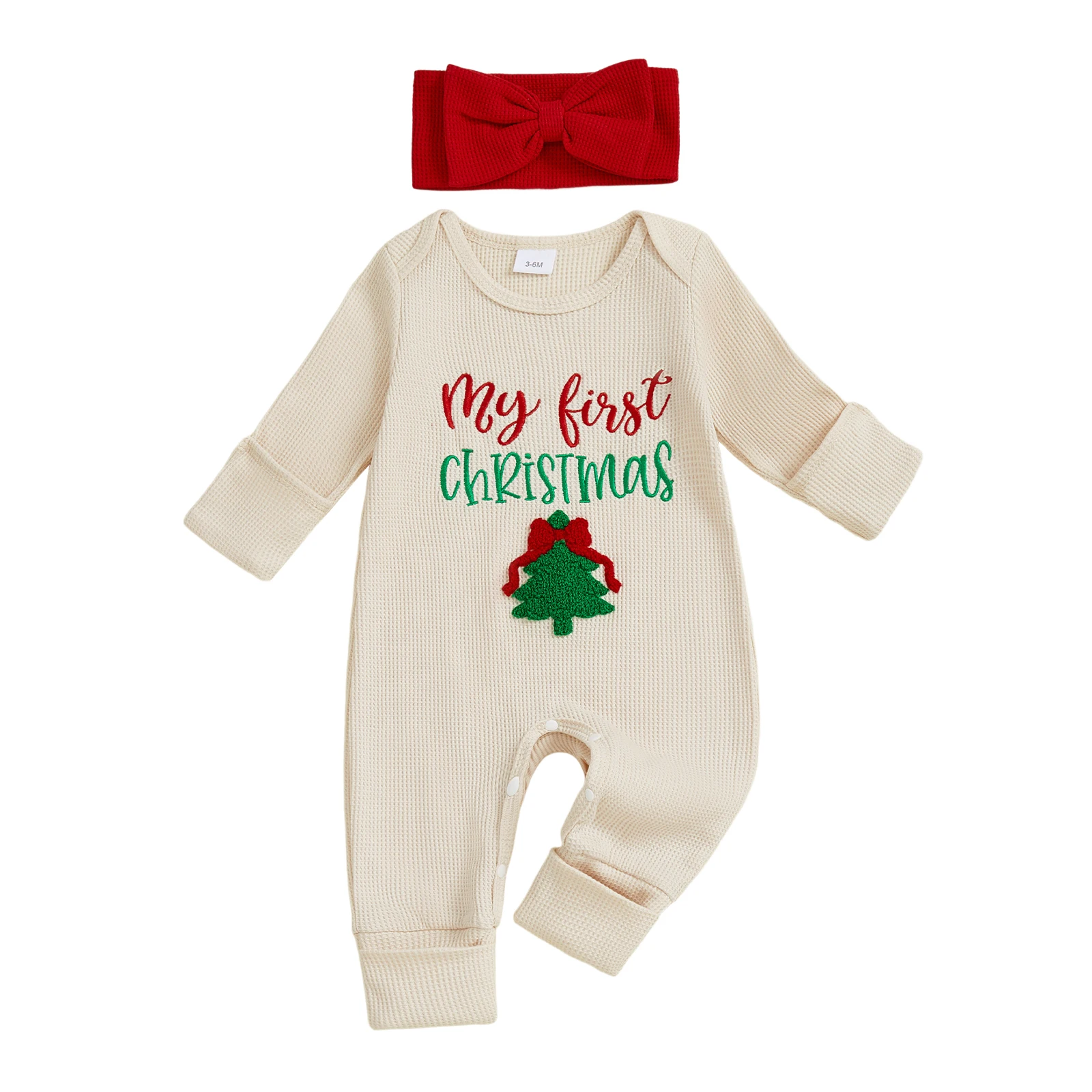 Dress your little one in festive style with our Baby Girl Christmas Casual Romper. This charming long-sleeve jumpsuit features a delightful O-neck design and is adorned with a beautiful Christmas tree embroidery. Perfect for holiday gatherings or cozy family celebrations, this romper ensures your baby girl will shine bright this season!