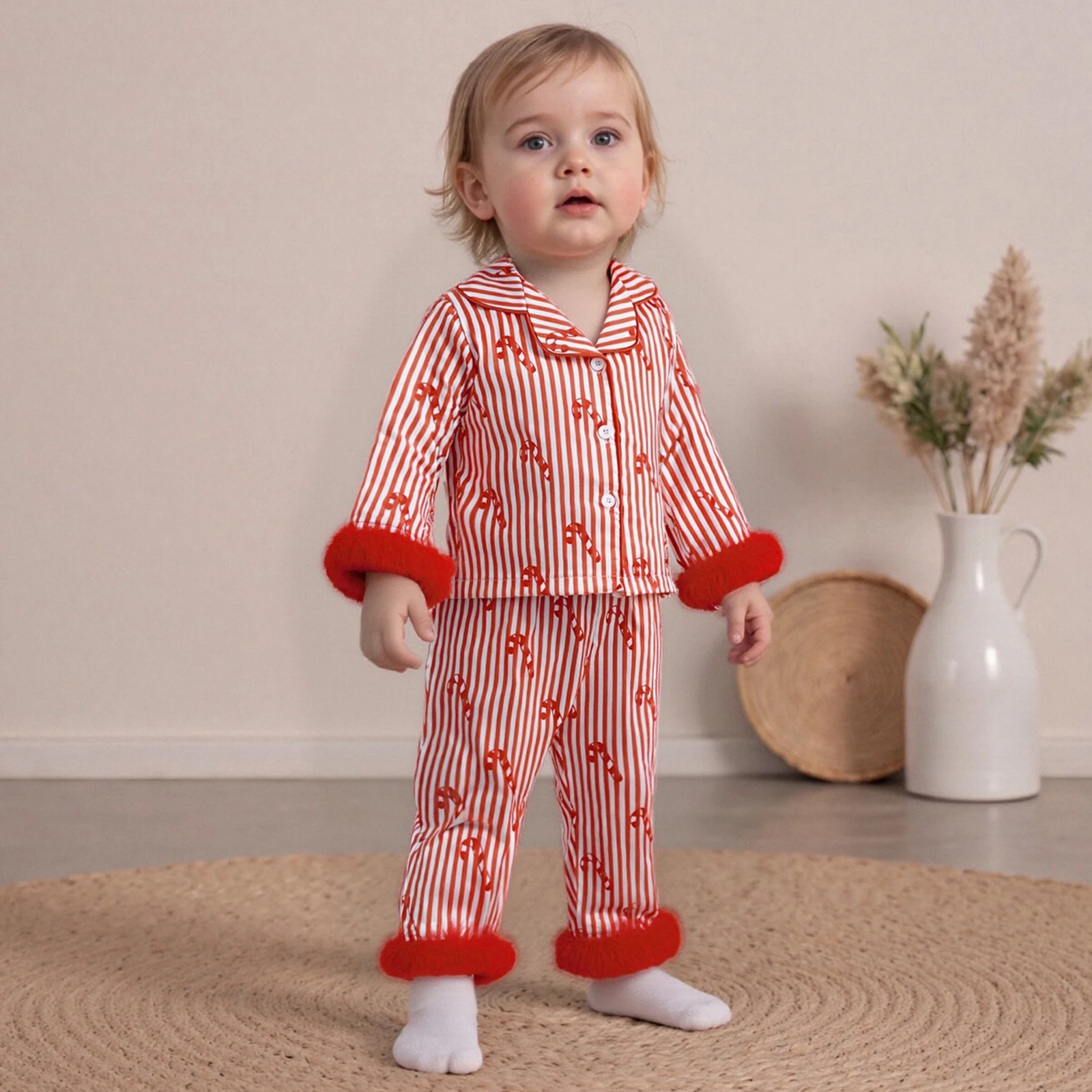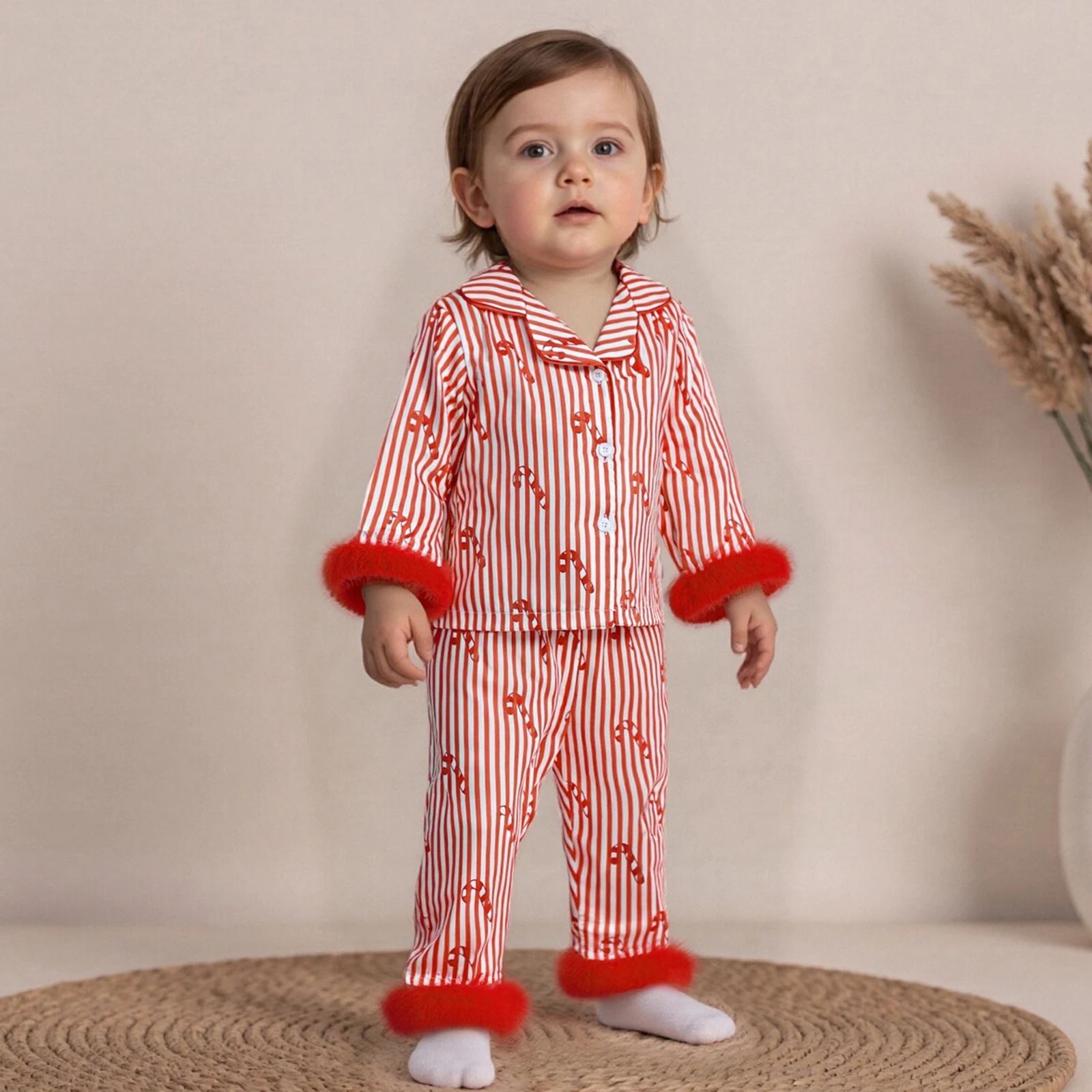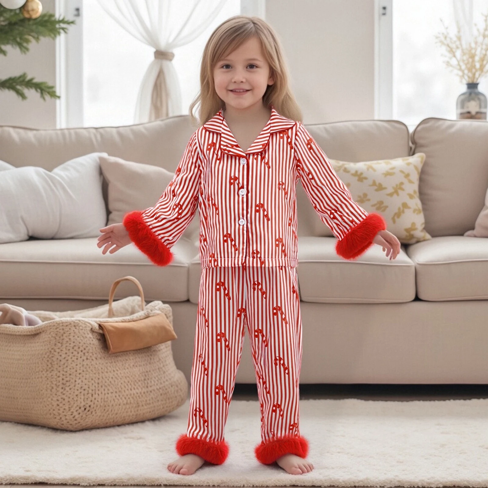 Transform your child’s bedtime into a cozy and festive experience with our Kids Girls Christmas Pajamas Set. Featuring an adorable design with feather cuffs and a charming stripe button-up shirt, this pajama set is perfect for the holiday season. Made for both comfort and style, it’s ideal for loungewear, sleepovers, or holiday celebrations at home.