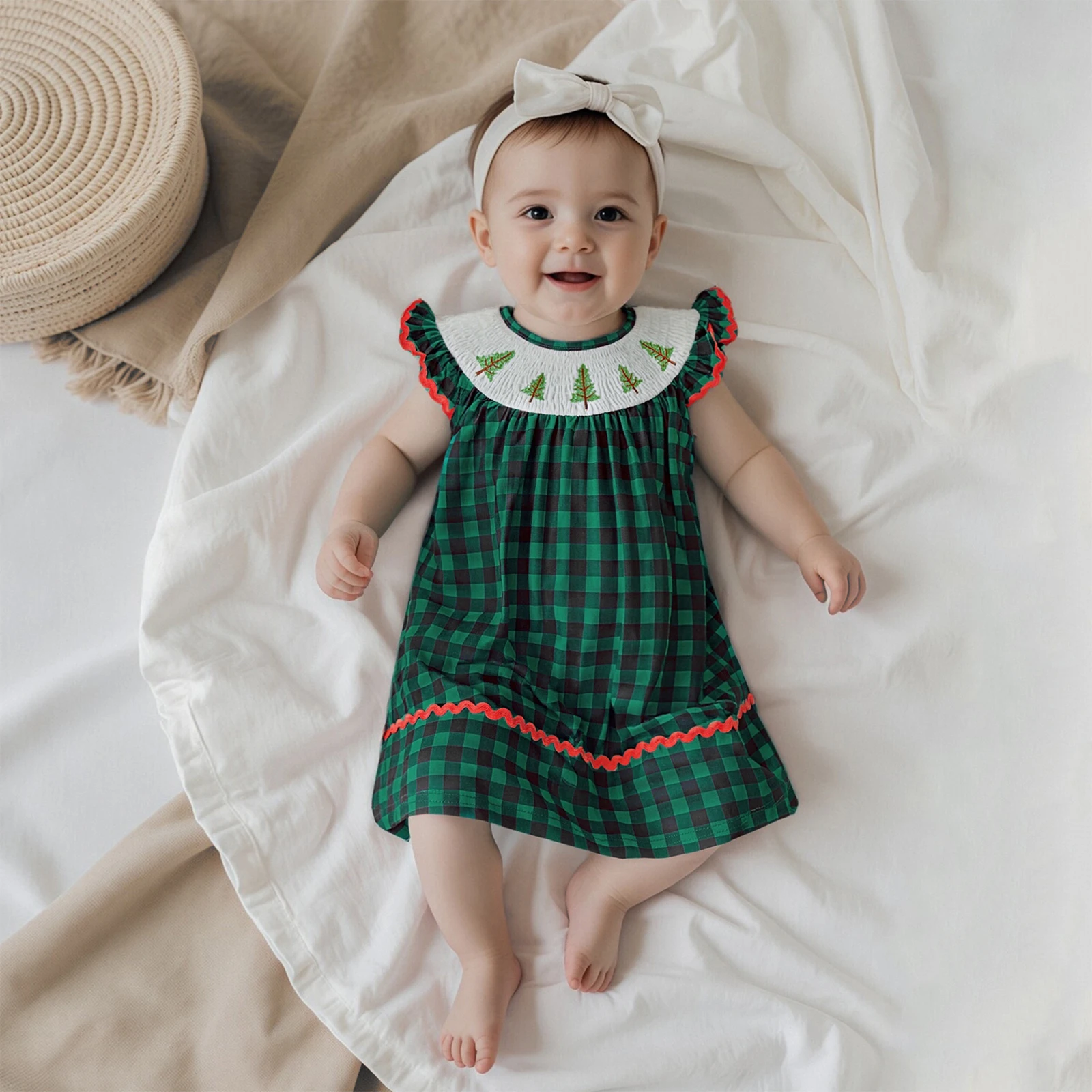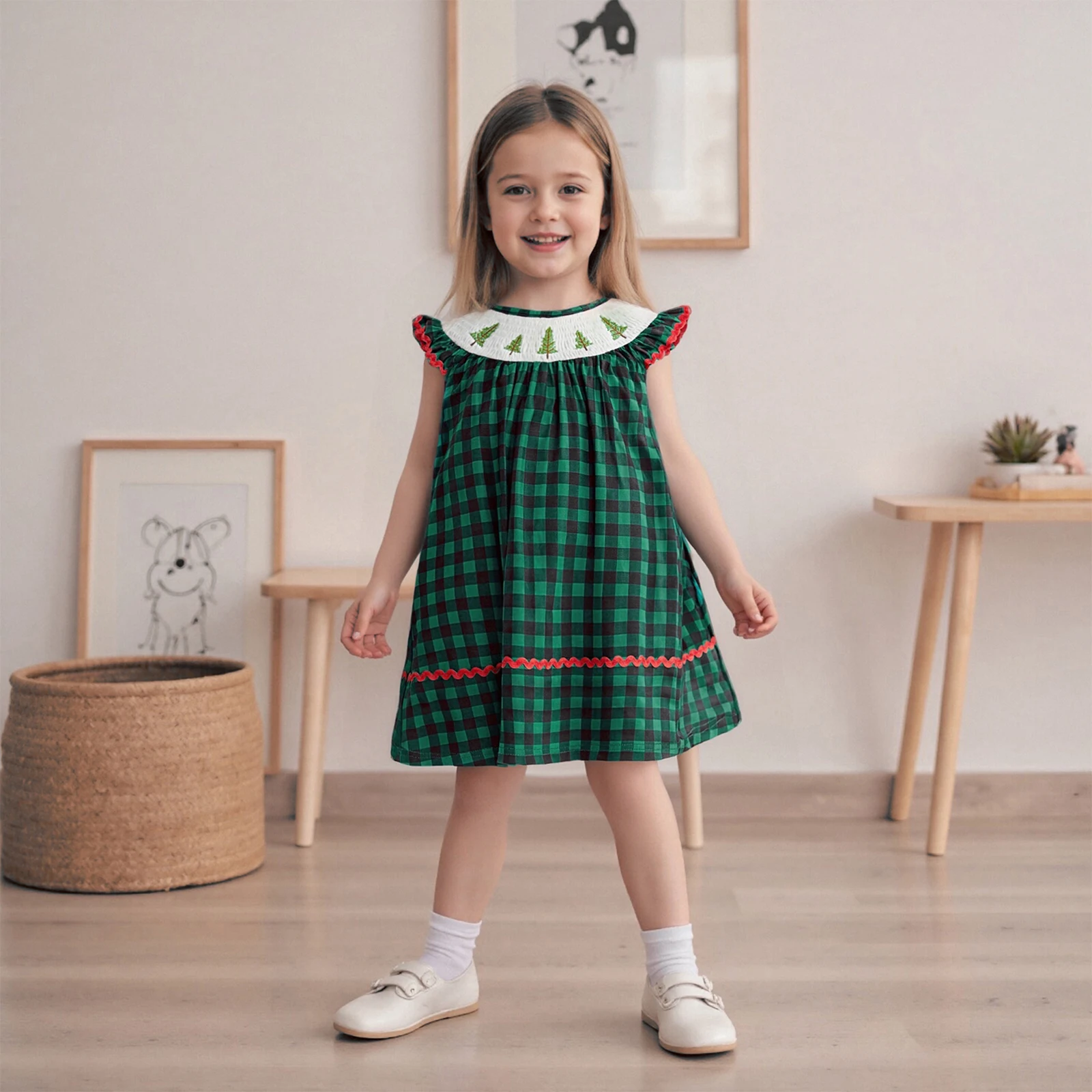 Get your little girl ready for the festive season with the adorable Kid Girl Christmas Plaid Dress. This enchanting dress features a delightful cartoon tree embroidery that captures the spirit of Christmas, making it the perfect outfit for holiday gatherings, family photos, or festive playdates. With its stylish flying sleeves and round neck design, this dress combines comfort with charm, ensuring your child looks and feels great all day long.