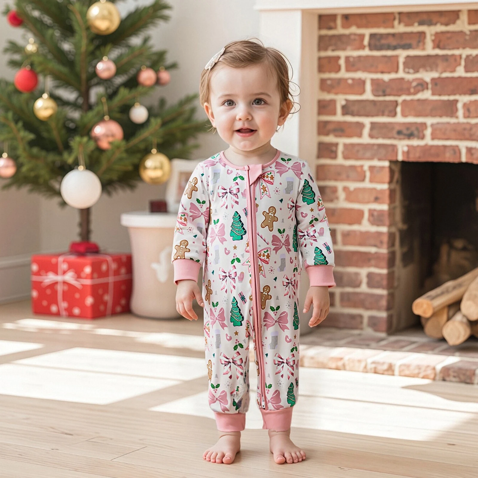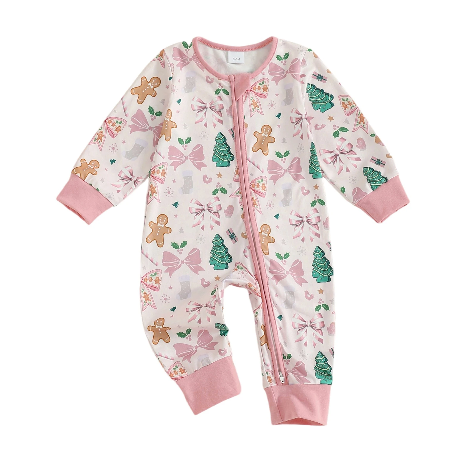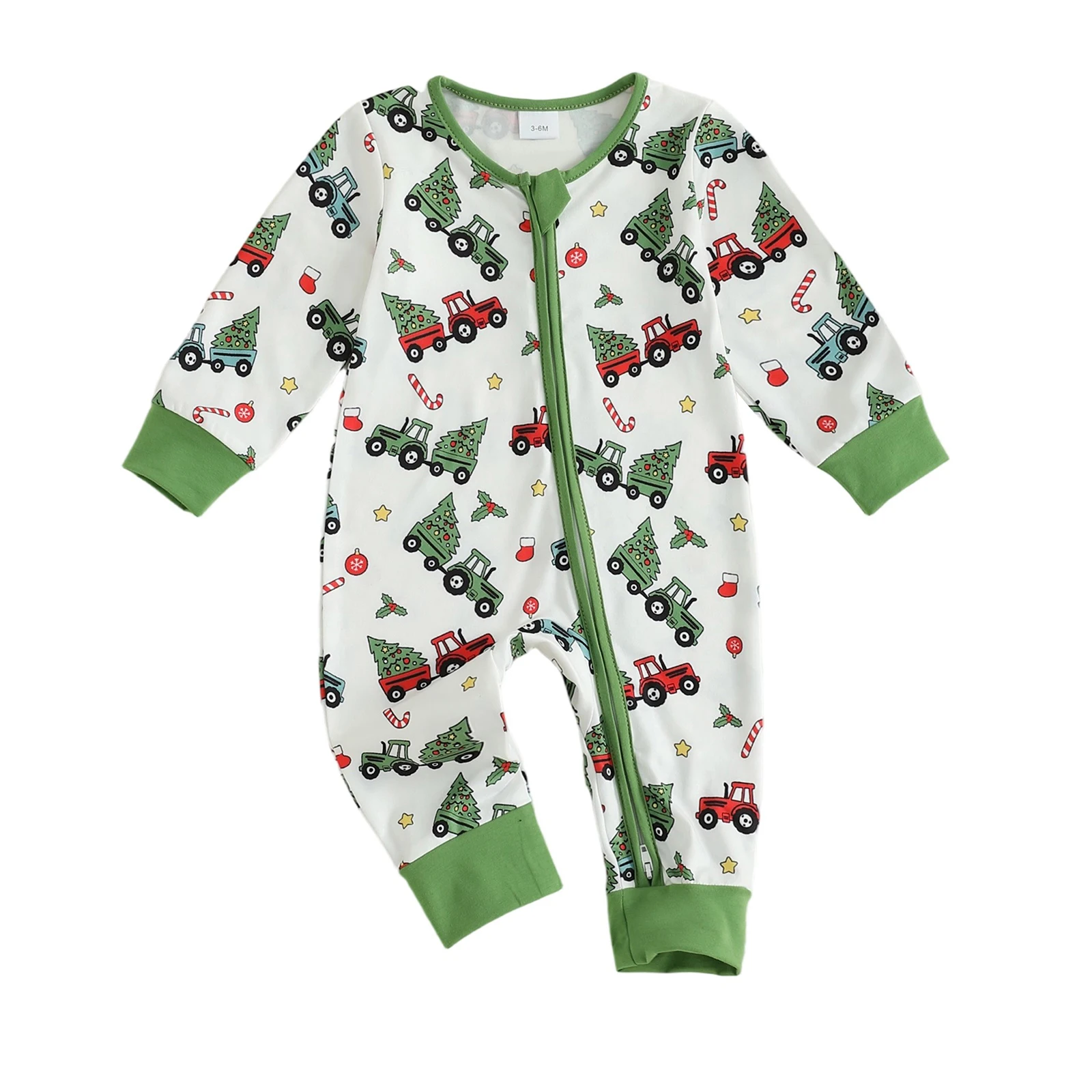 Dress your newborn in the adorable Newborn Baby Boy Girl Romper Christmas Themed Print Crew Neck Long Sleeve Fall Zipper Jumpsuit. This charming romper combines comfort and festive style, making it an ideal choice for the holiday season and beyond. Crafted with love, this romper ensures your baby looks cute while staying cozy and comfortable.