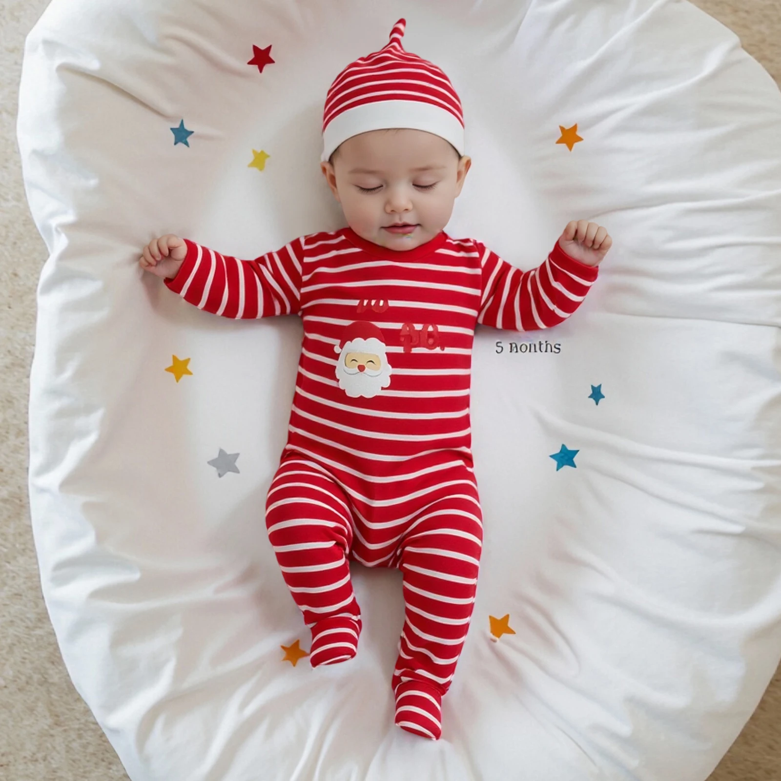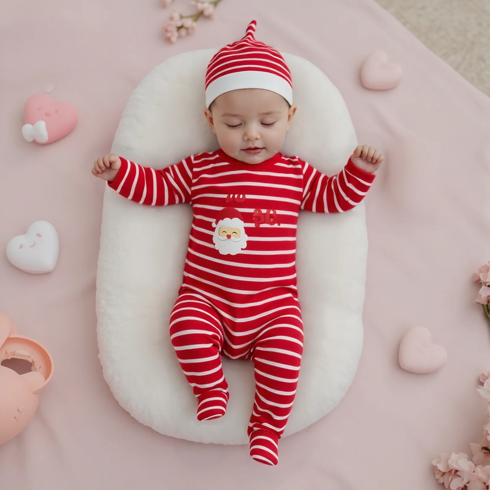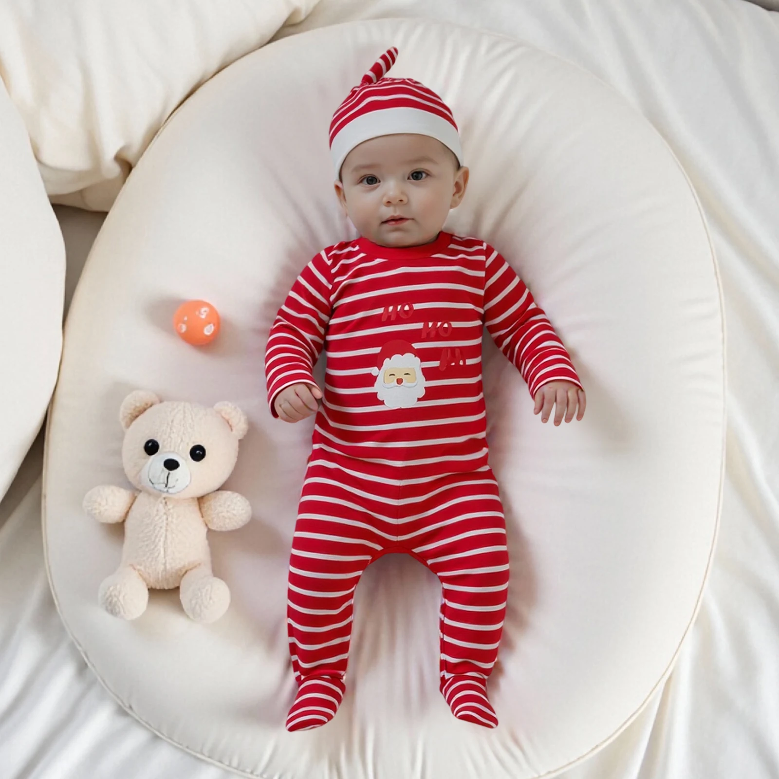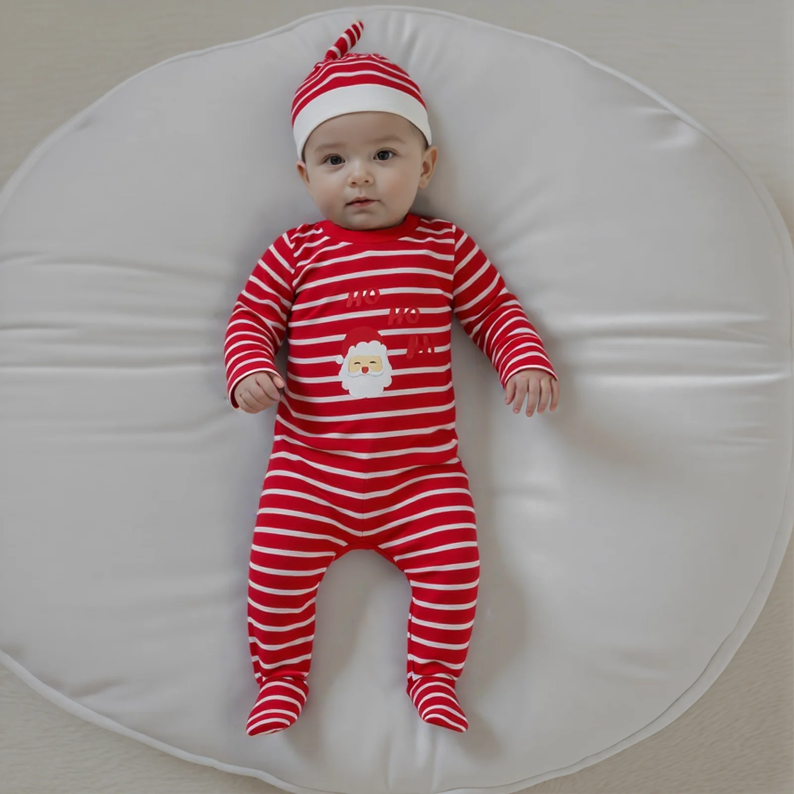 Get your little one ready for the festive season with our Infant Baby Christmas Striped Romper. This adorable jumpsuit features a stylish Santa print, perfect for holiday celebrations. Crafted from a blend of soft cotton and polyester, this romper ensures comfort and warmth for your baby. The included hat adds an extra touch of cuteness, making it an ideal outfit for holiday photos or family gatherings.