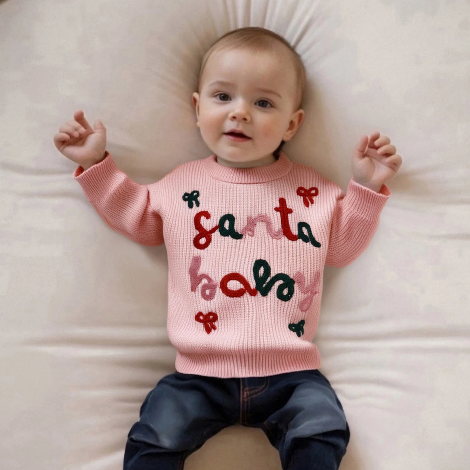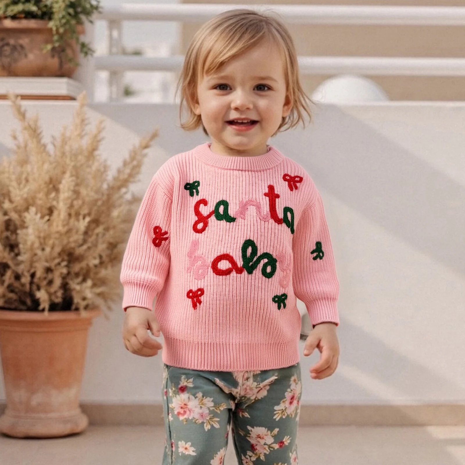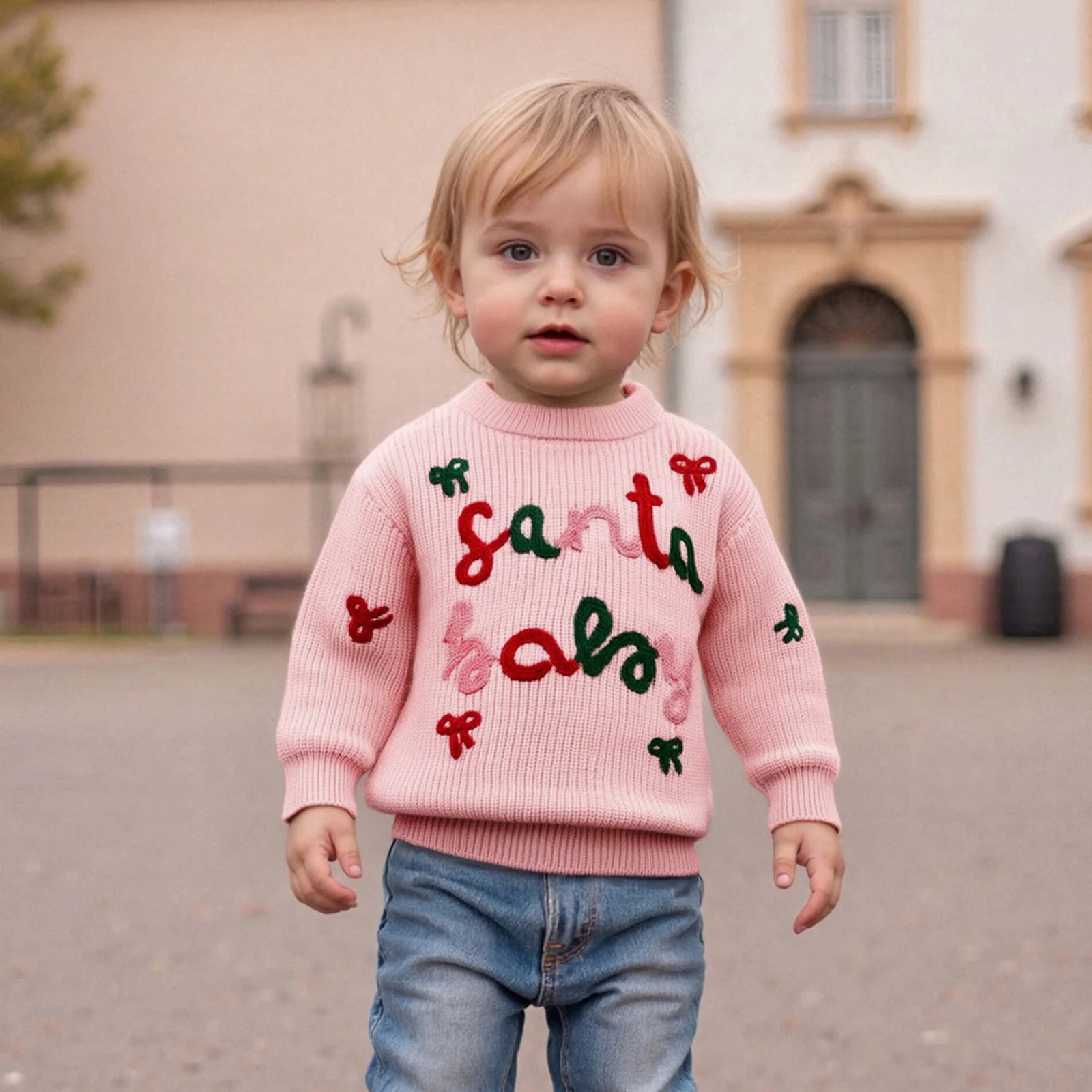 The Baby Girl Christmas Sweater is an essential addition to your toddler’s winter wardrobe. Designed with love and care, this stylish long sleeve sweatshirt features a charming round neck and delightful bow embroidery. Perfect for festive celebrations, this cozy sweater will keep your baby girl warm and stylish during the chilly holiday season.
