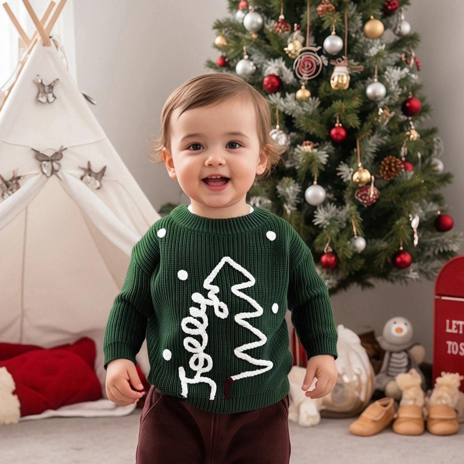 Get your little one ready for the festive season with our adorable Baby Christmas Sweater. Designed with a charming tree embroidery detail, this long-sleeve sweatshirt is perfect for keeping your toddler warm and stylish during holiday celebrations. Whether it’s for family gatherings, Christmas photos, or simply a cozy day at home, this sweater is a must-have addition to your child’s wardrobe.