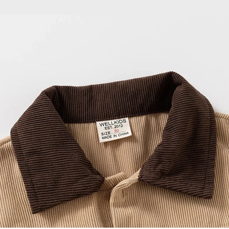 The Kids Corduroy Jacket is an essential outerwear piece designed for both boys and girls aged 3 to 6 years. This trendy and versatile jacket not only provides warmth during the chilly autumn days but also elevates your child’s style with its unique color-block collar design. Made from premium corduroy fabric, it ensures a soft, skin-friendly feel while standing the test of time against the adventures of childhood.