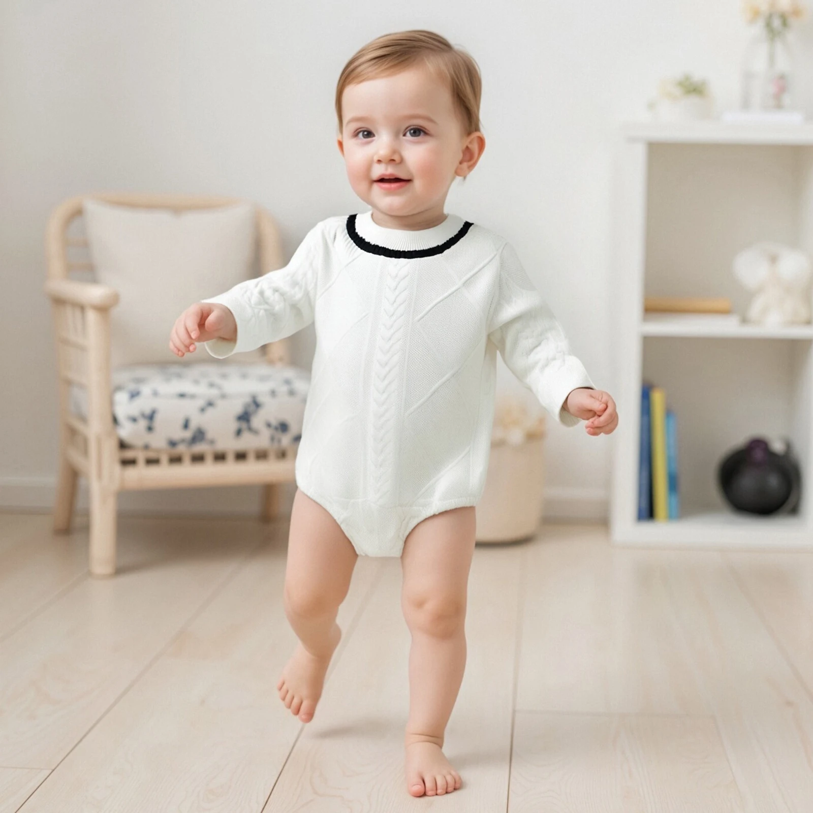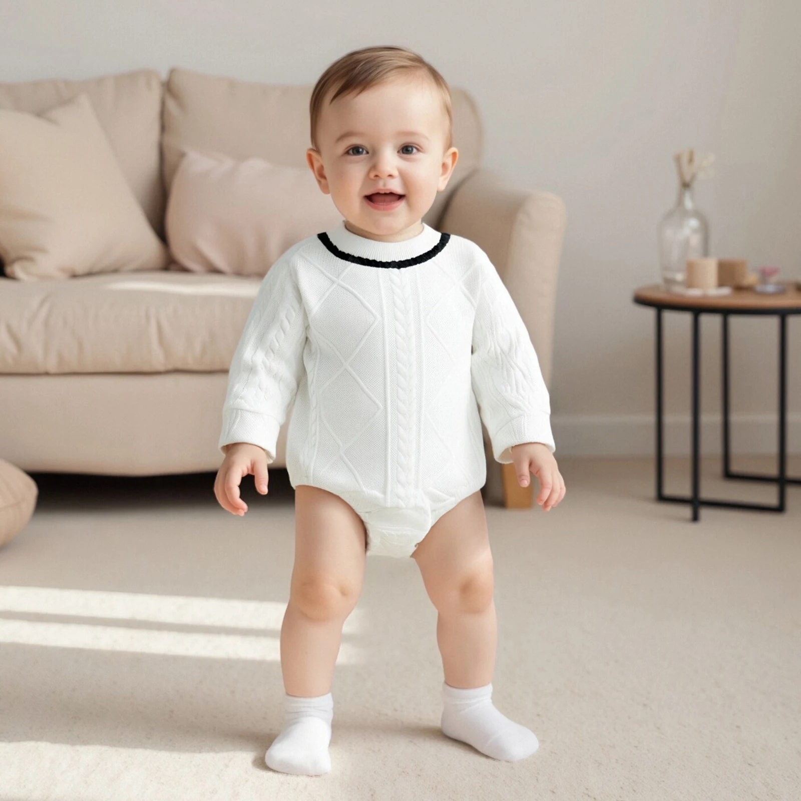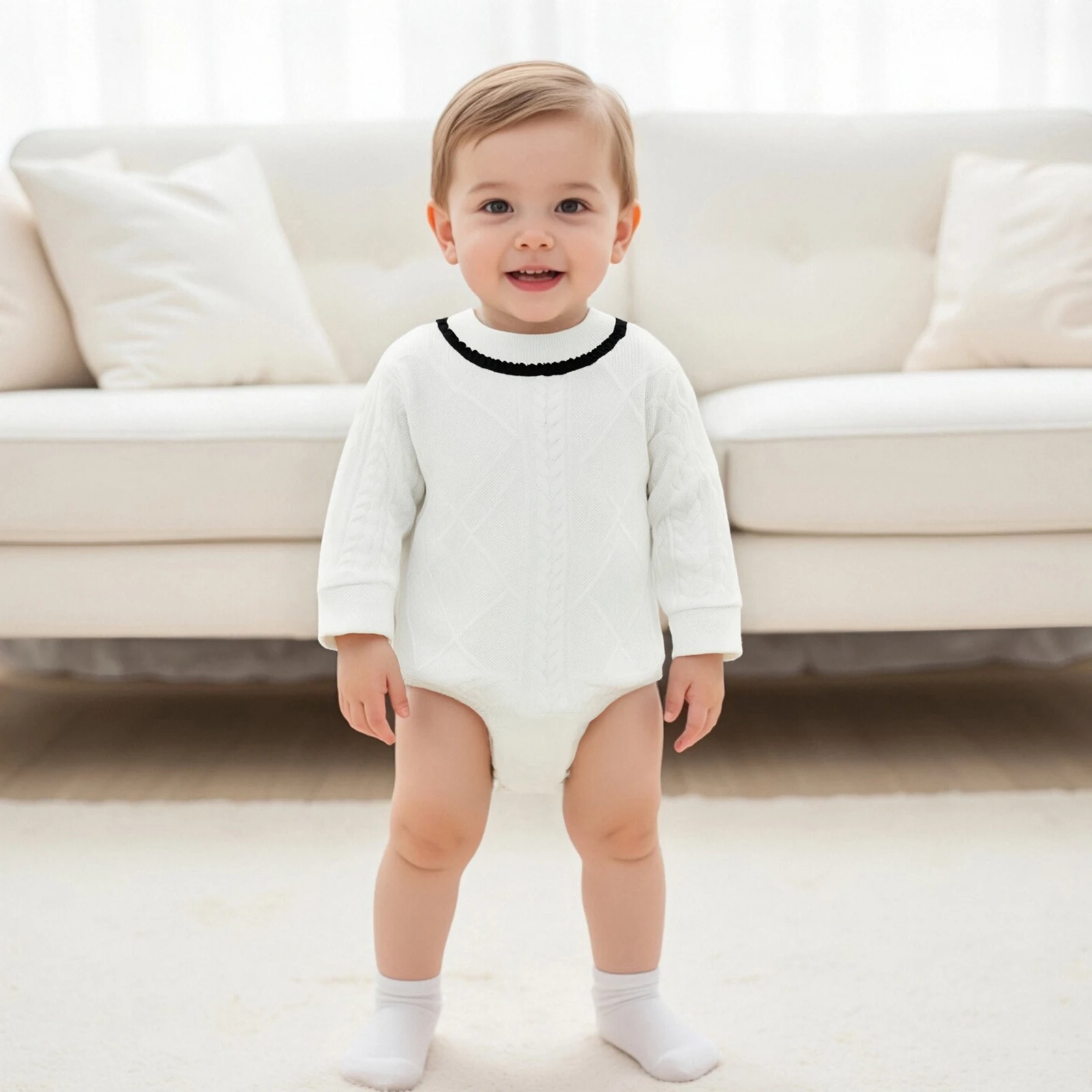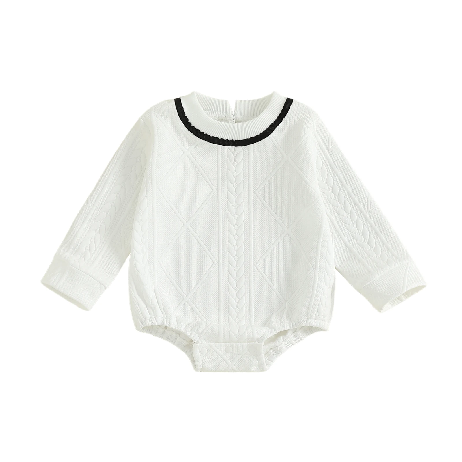 Dress your little one in style with our Baby Boys Knit Romper, designed for comfort and fashion. This contrast color romper features a classic round neck and long sleeves, making it an ideal choice for any occasion, whether at home or outdoors. Crafted with a soft and stretchy fabric, this romper ensures that your baby stays cozy while looking adorable.