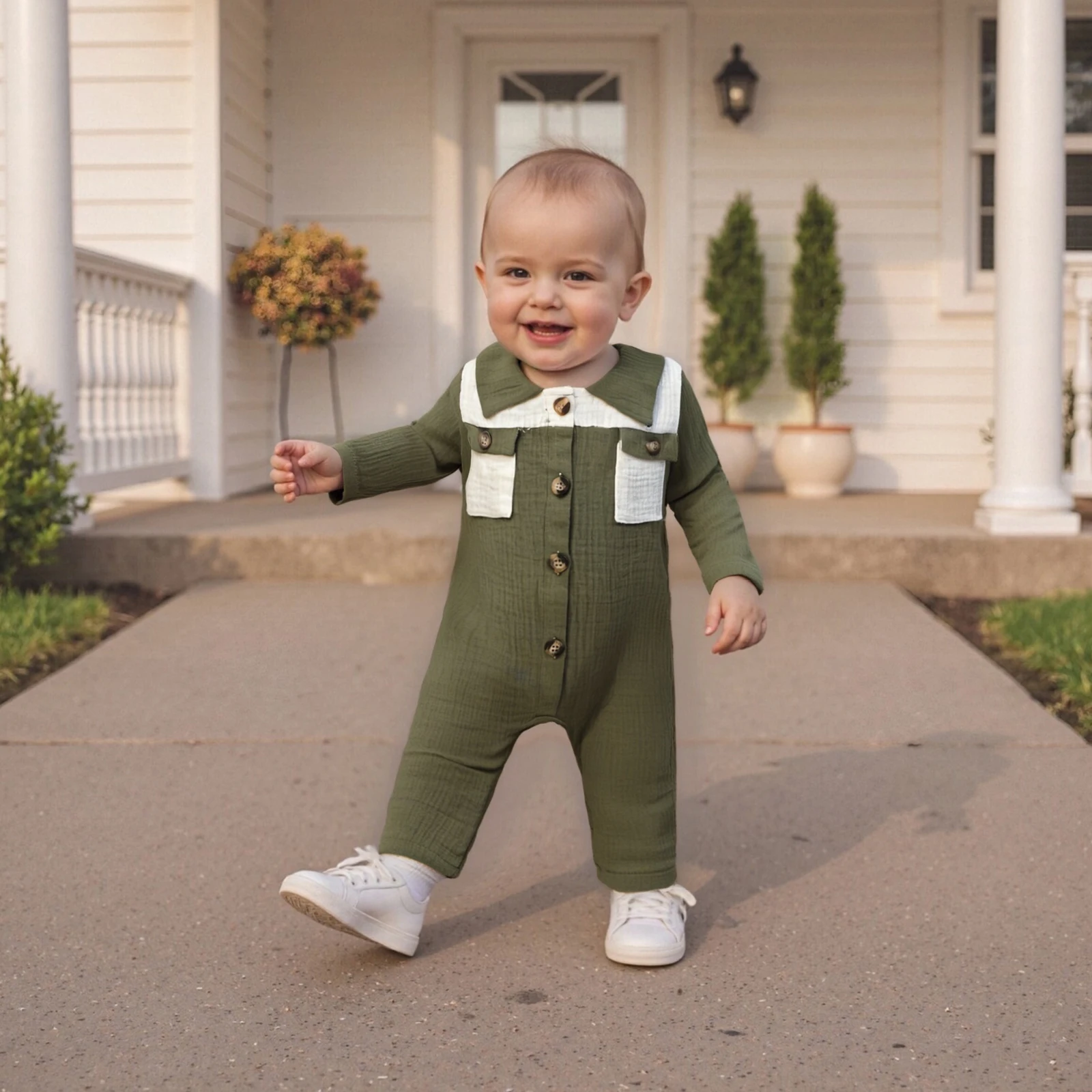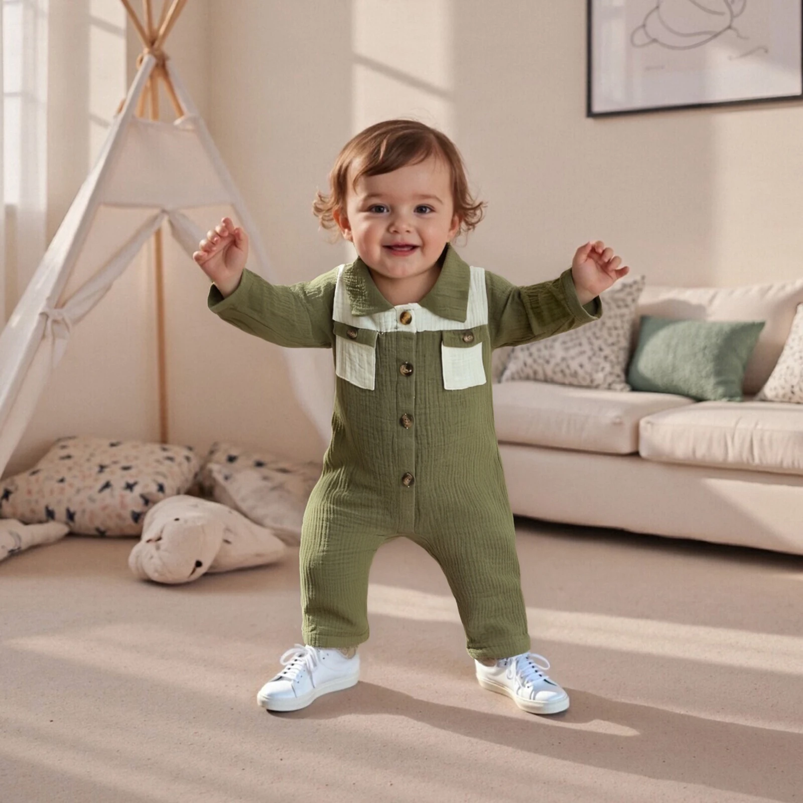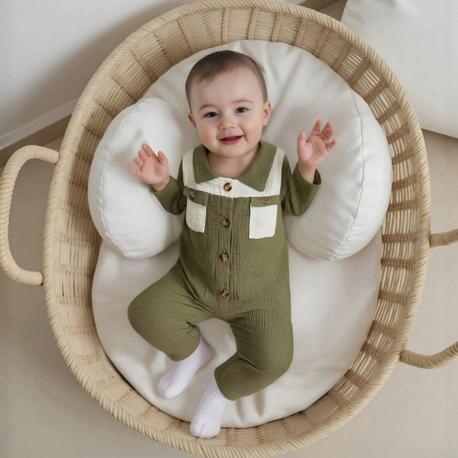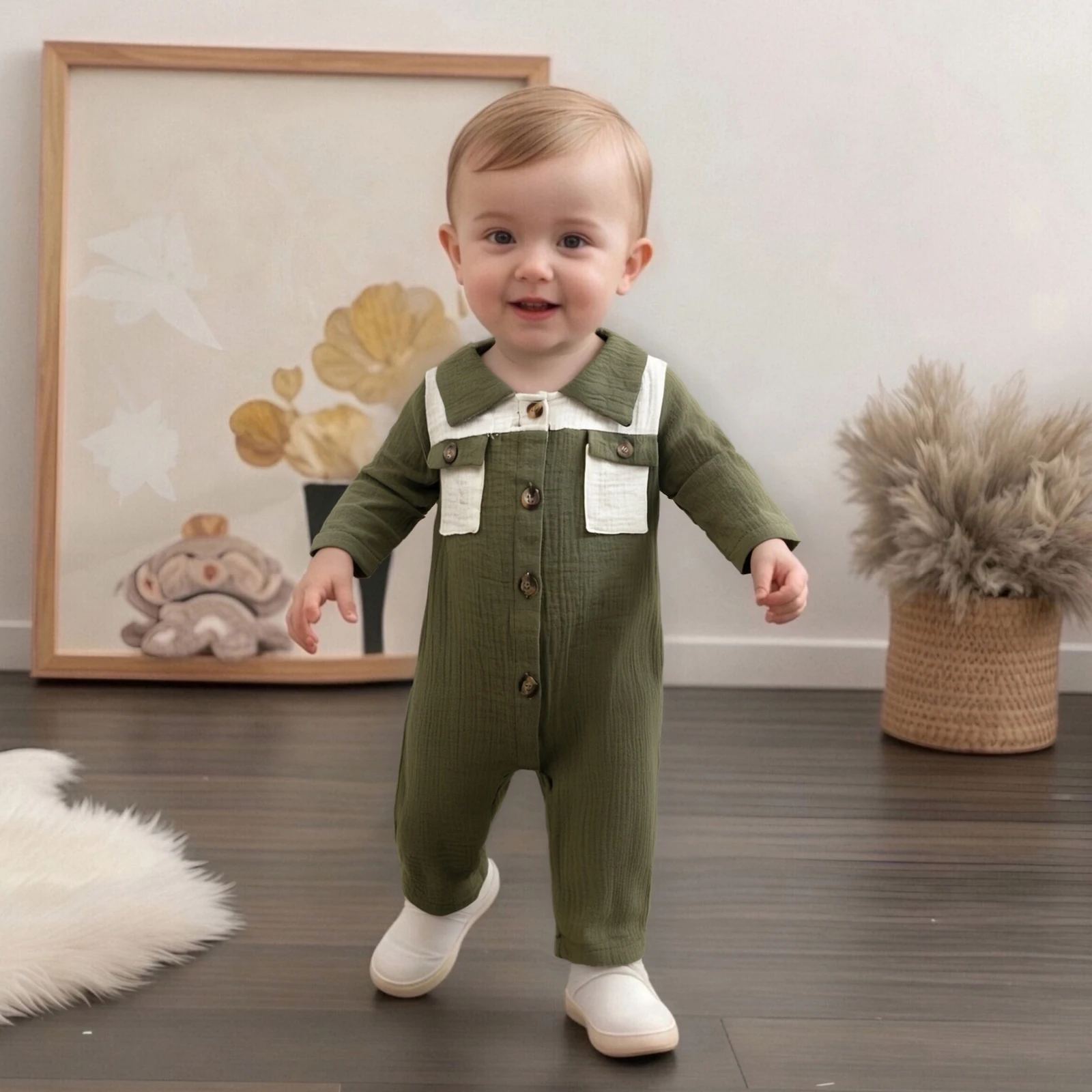 Introducing the stylish and versatile Pudcoco Infant Baby Lapel Romper, designed for your little one aged 0 to 18 months. This fashionable jumpsuit features a trendy contrast color scheme, long sleeves, and practical pockets, making it a must-have addition to your baby’s wardrobe. Whether it’s for playdates, family gatherings, or simply lounging at home, this romper ensures that your baby stays comfortable and stylish.