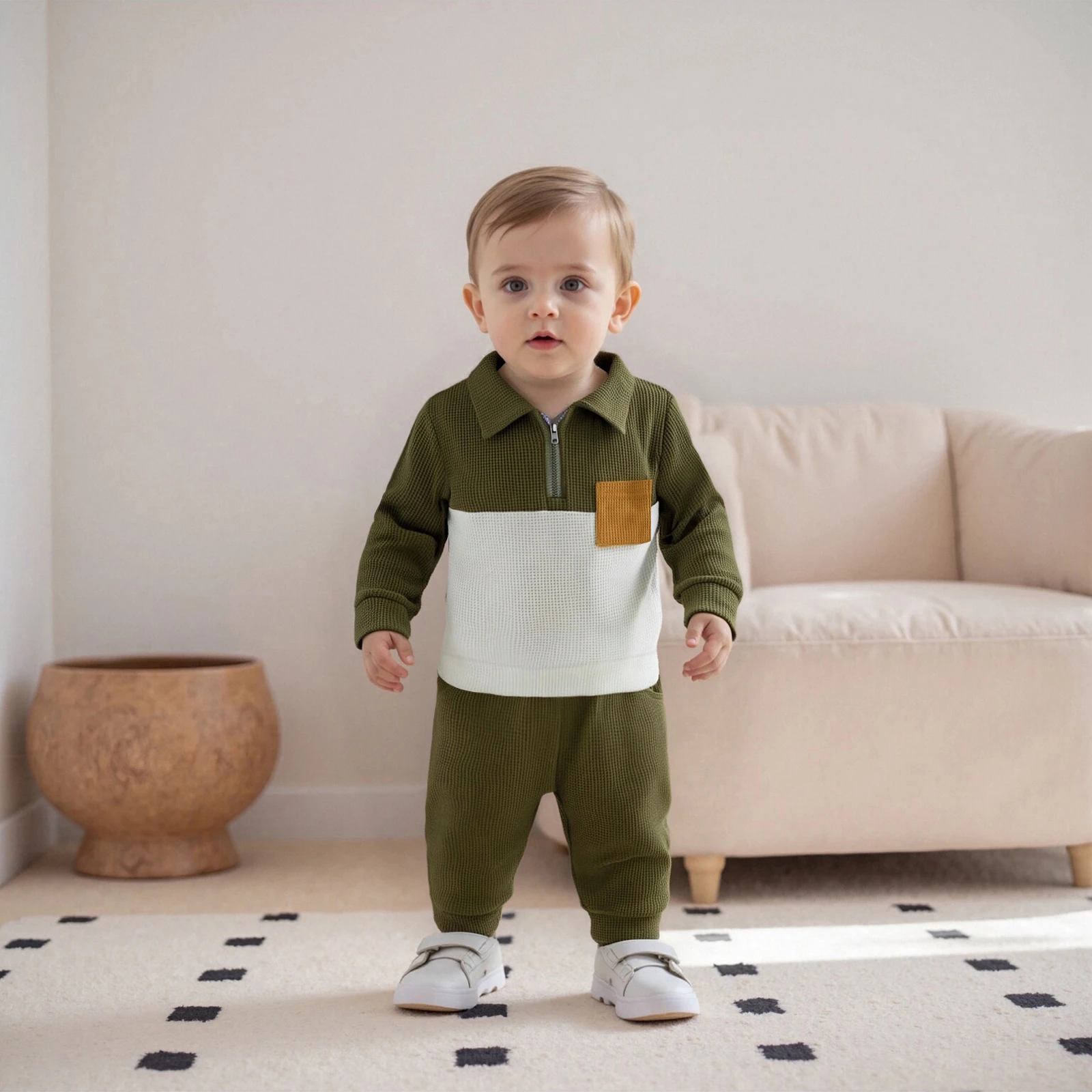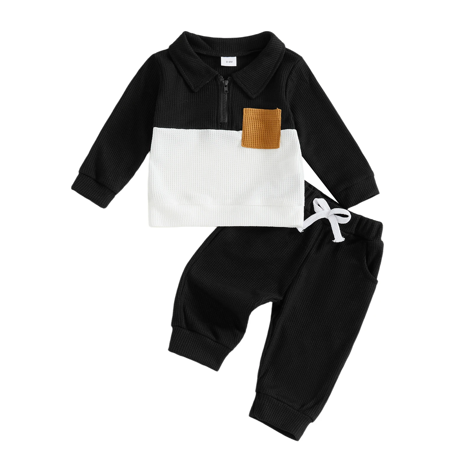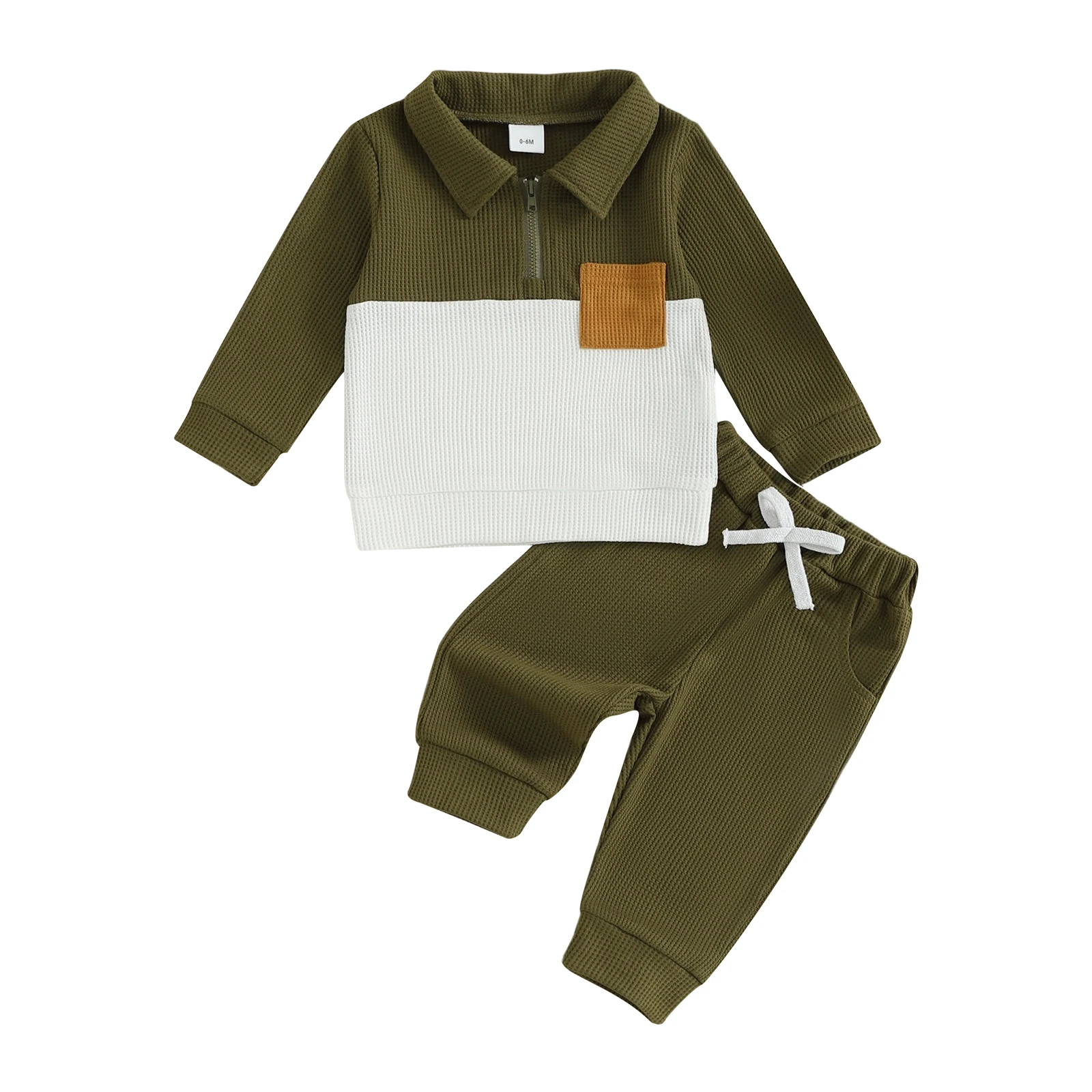 Introducing the perfect outfit for your little one this season: the Toddler Boy Fall Outfits Contrast Color Long Sleeve Lapel Half Zip Pullover paired with Elastic Waist Solid Pants. This 2-piece set combines style and comfort, making it an ideal choice for everyday wear. Crafted with a blend of cotton and polyester, this outfit ensures your toddler stays cozy while looking adorable.