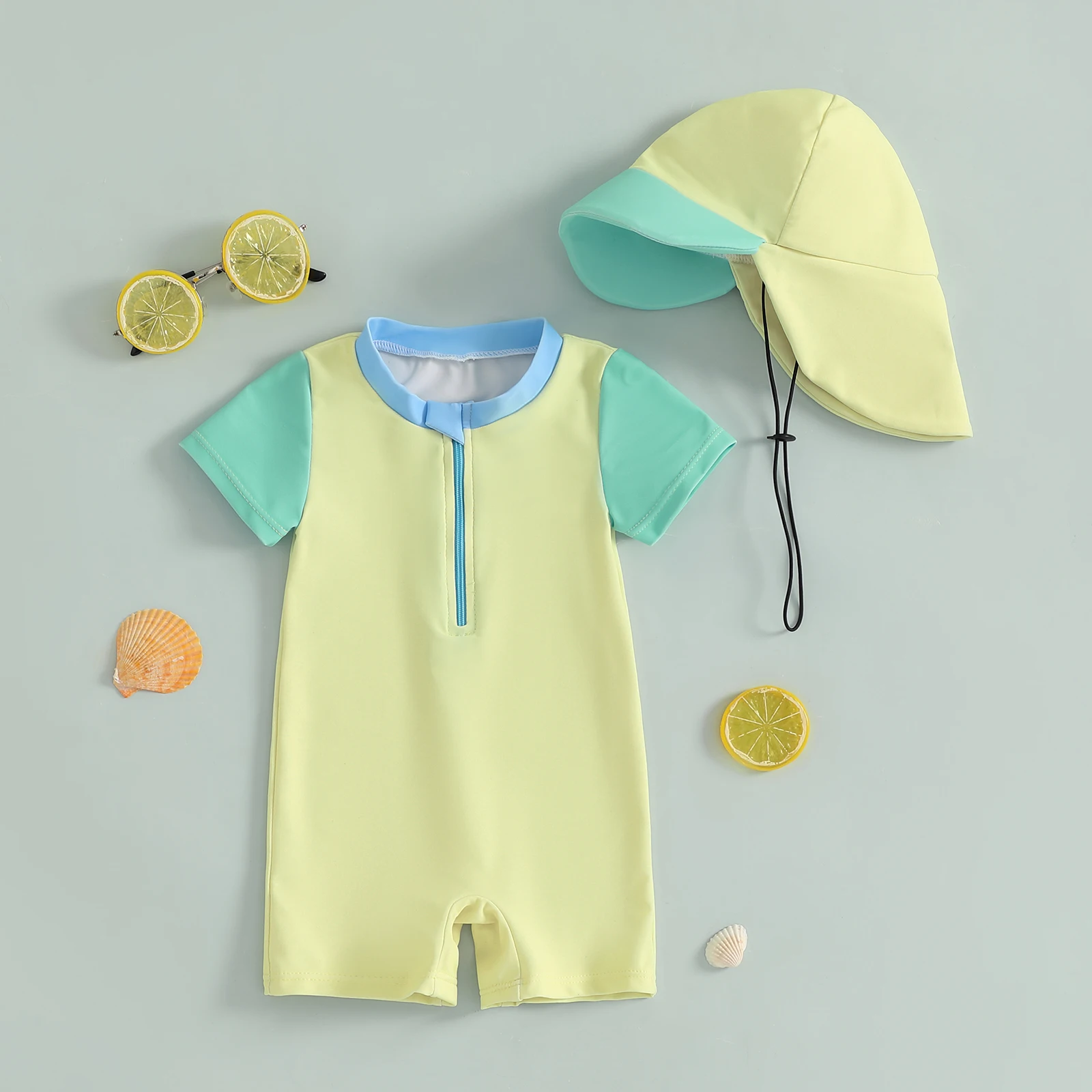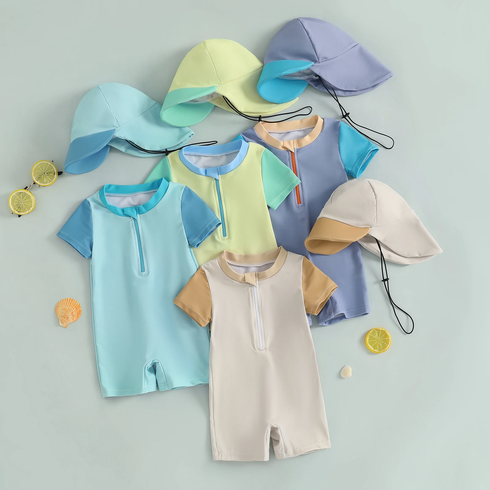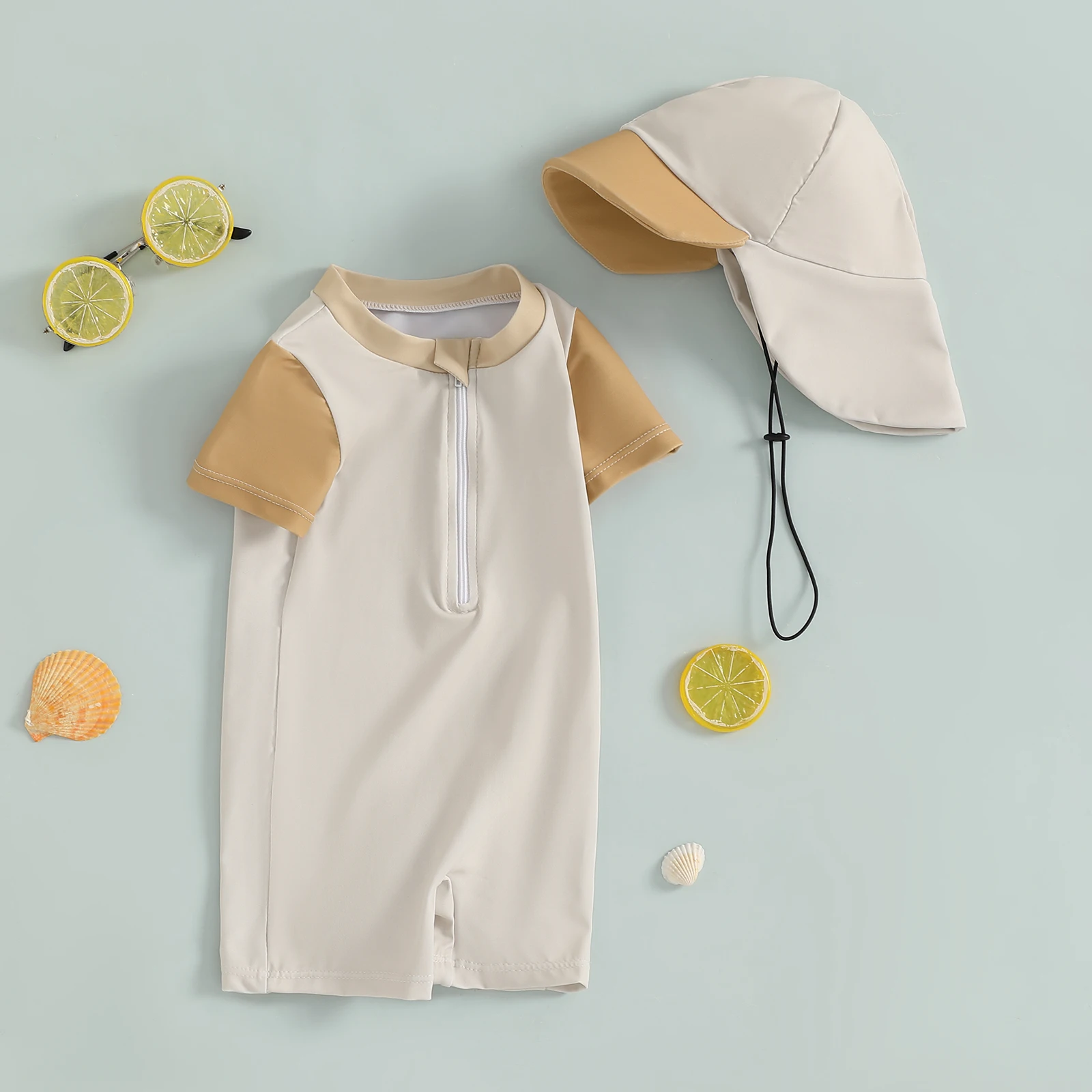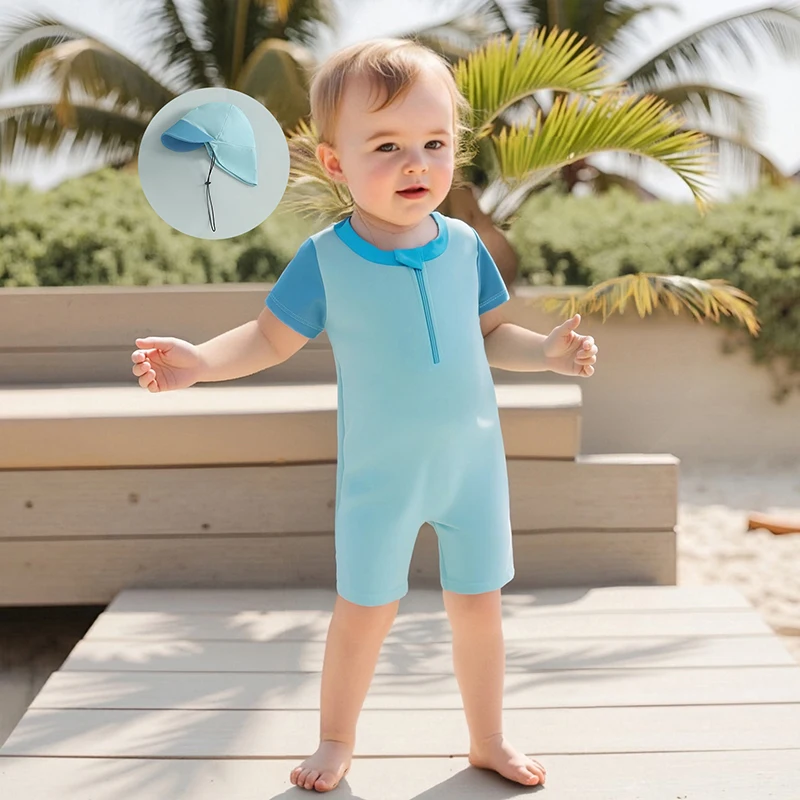 Introducing the Minimillo Baby Boy Rash Guard Swimsuits, a delightful blend of style and safety designed for your child’s aquatic adventures. This adorable long sleeve zip-up bathing suit comes with a matching hat, ensuring your baby stays protected from harmful UV rays while looking irresistibly cute. Made from high-quality materials, it’s perfect for use in any season, whether at the beach, pool, or backyard splash zone.
