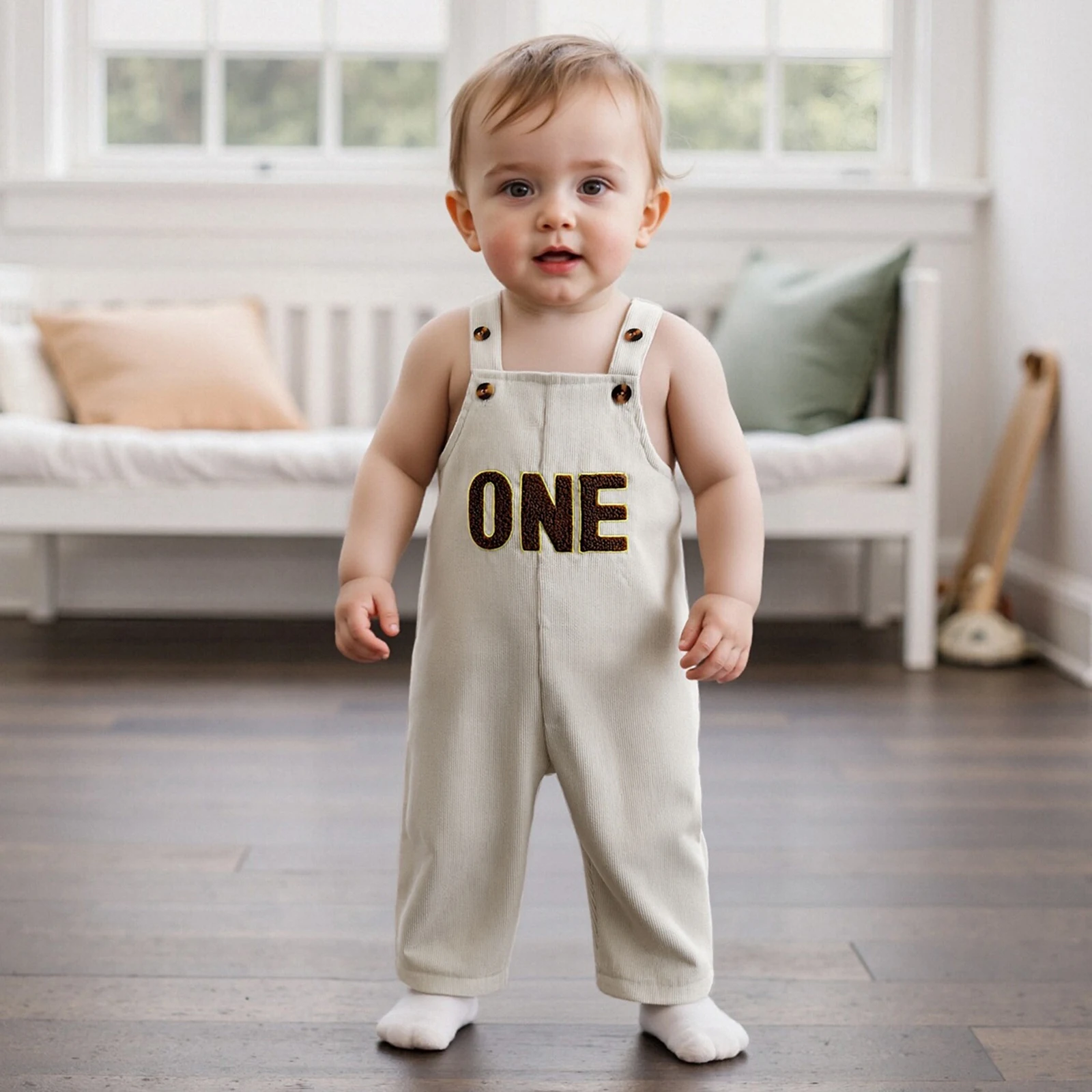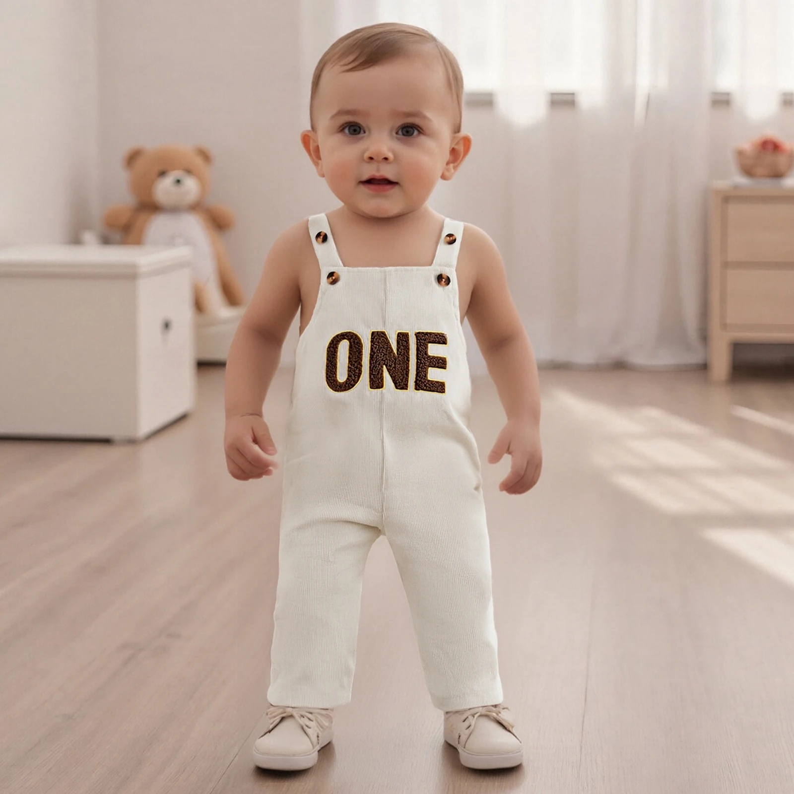 Introducing the adorable Baby First Birthday Corduroy Romper, a must-have for your little one’s special day! This charming letter embroidered sleeveless overall jumpsuit combines comfort, style, and cuteness, making it the perfect outfit for celebrations or everyday wear. Crafted from soft and durable polyester, this romper ensures your baby feels great while looking absolutely precious.