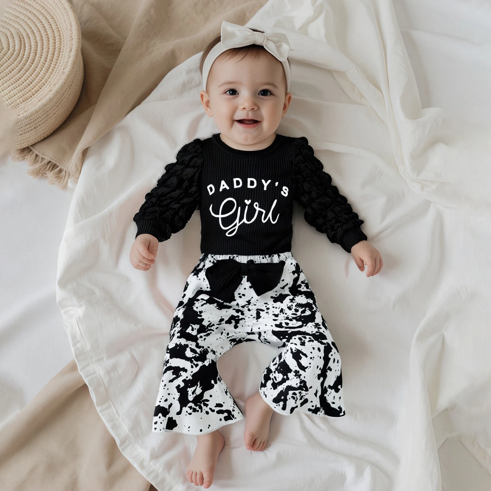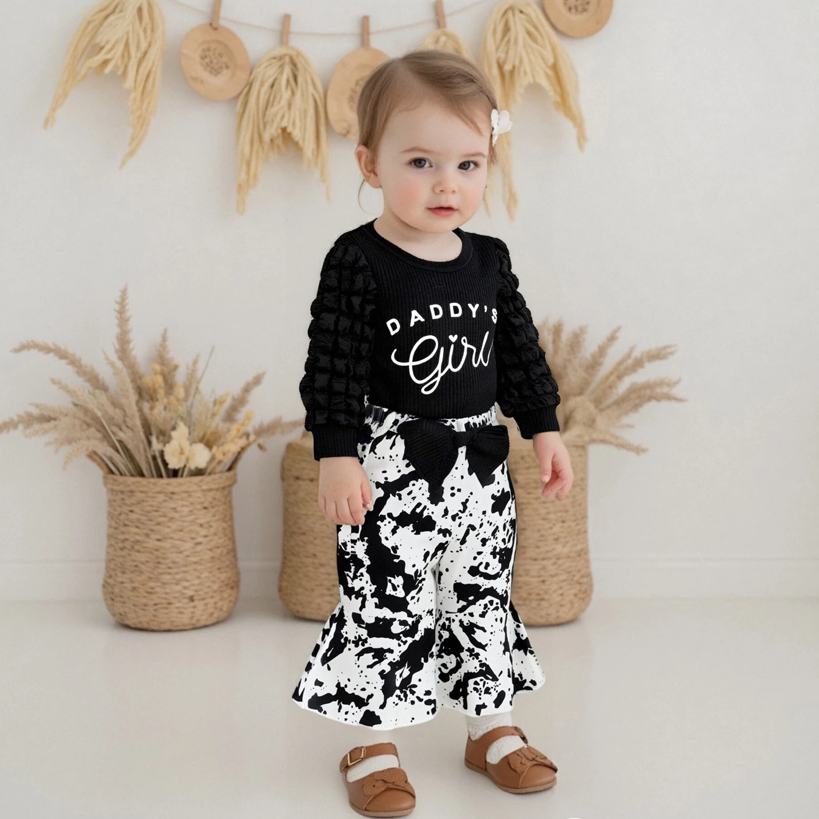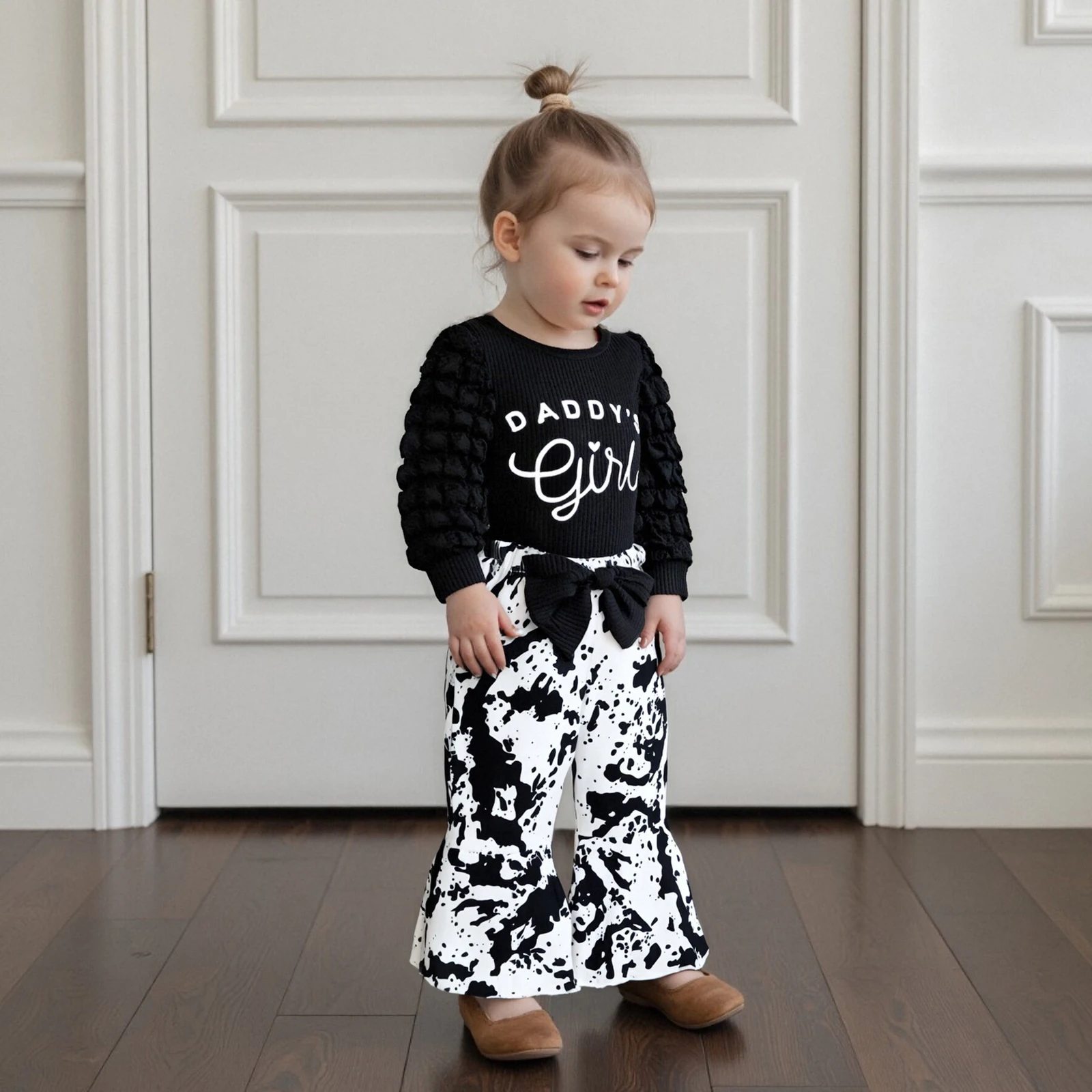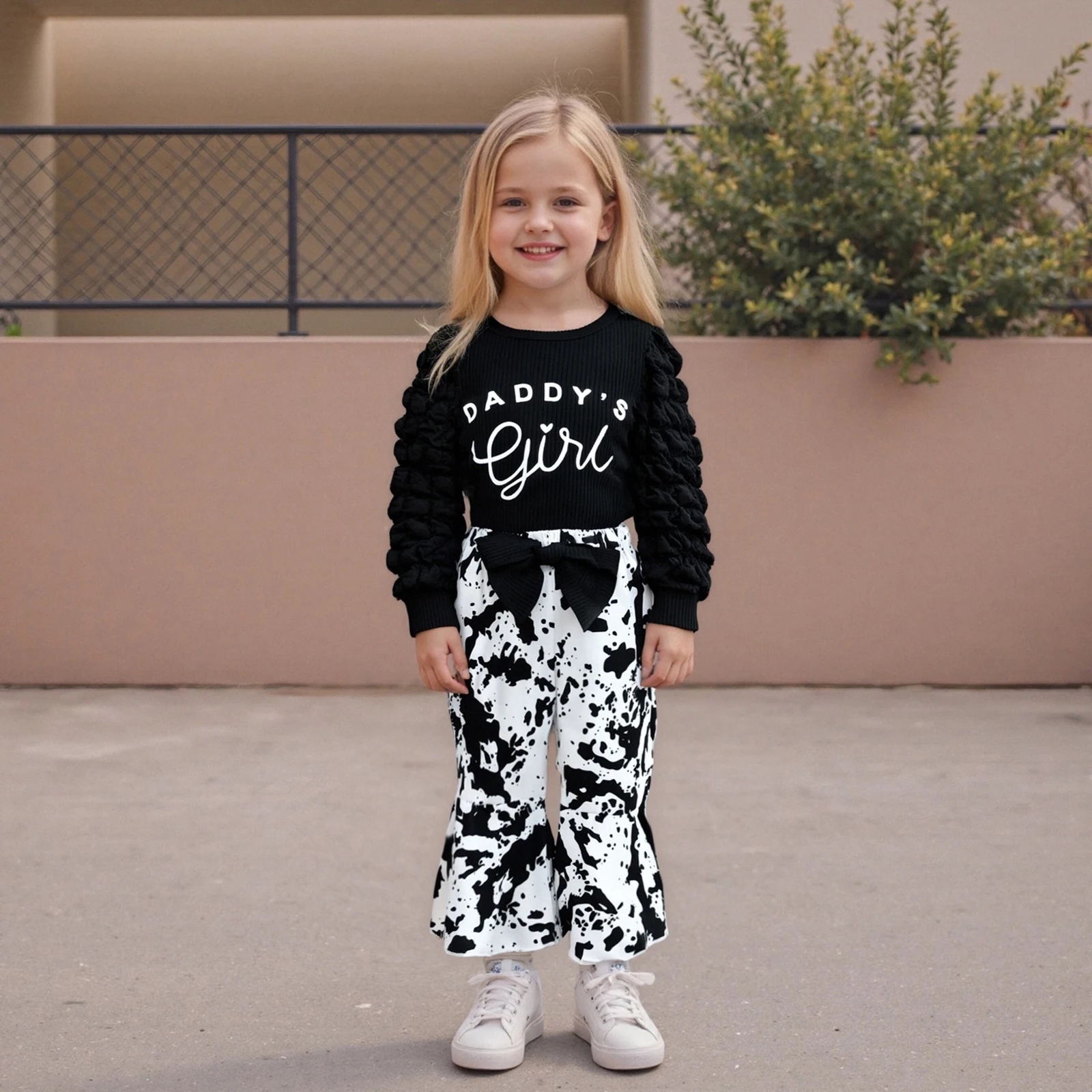 Discover the perfect blend of style and comfort with our Little Girls 2PCS Pants Sets. Designed specifically for young girls aged 4-6 years, this set features a chic long sleeve O-neck top adorned with playful letter prints and matching cow print flared pants. This outfit not only brings fun to your little one’s wardrobe but ensures all-day comfort for playtime, parties, or casual outings.