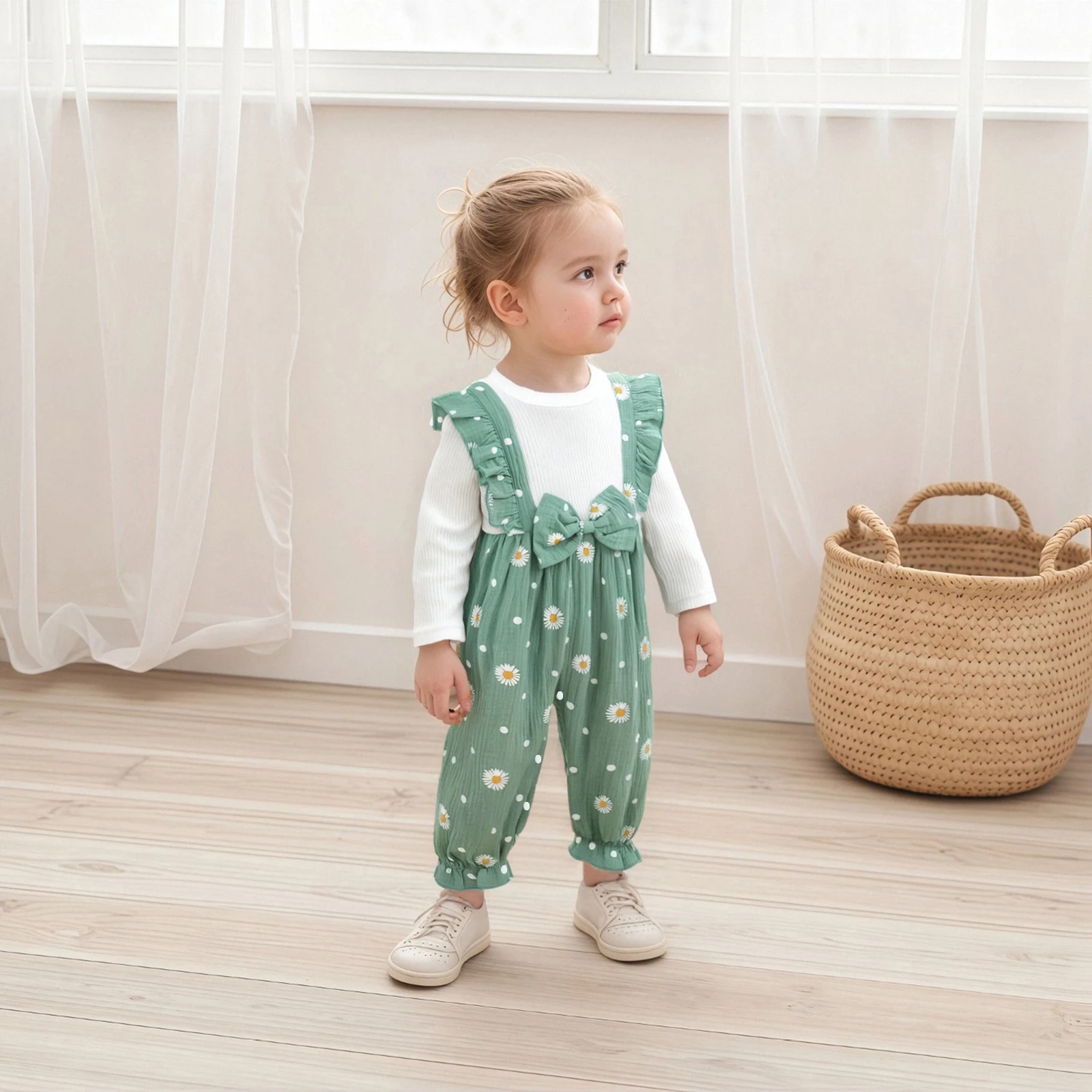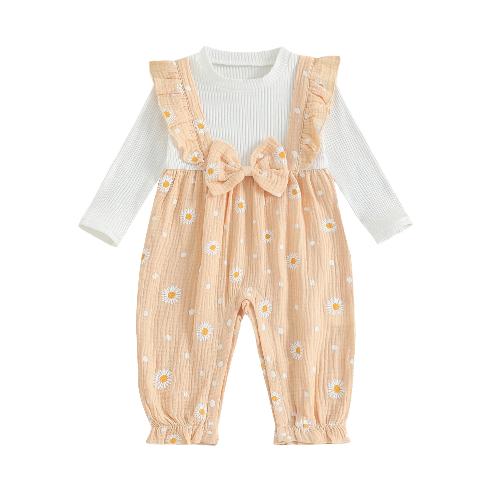 Dress your baby girl in style with our Baby Girl Autumn Casual Romper. This charming long sleeve jumpsuit features a delightful daisy print patchwork design that is perfect for the autumn season. Crafted from high-quality materials, this romper ensures both comfort and style, making it an ideal choice for daily wear or special occasions.