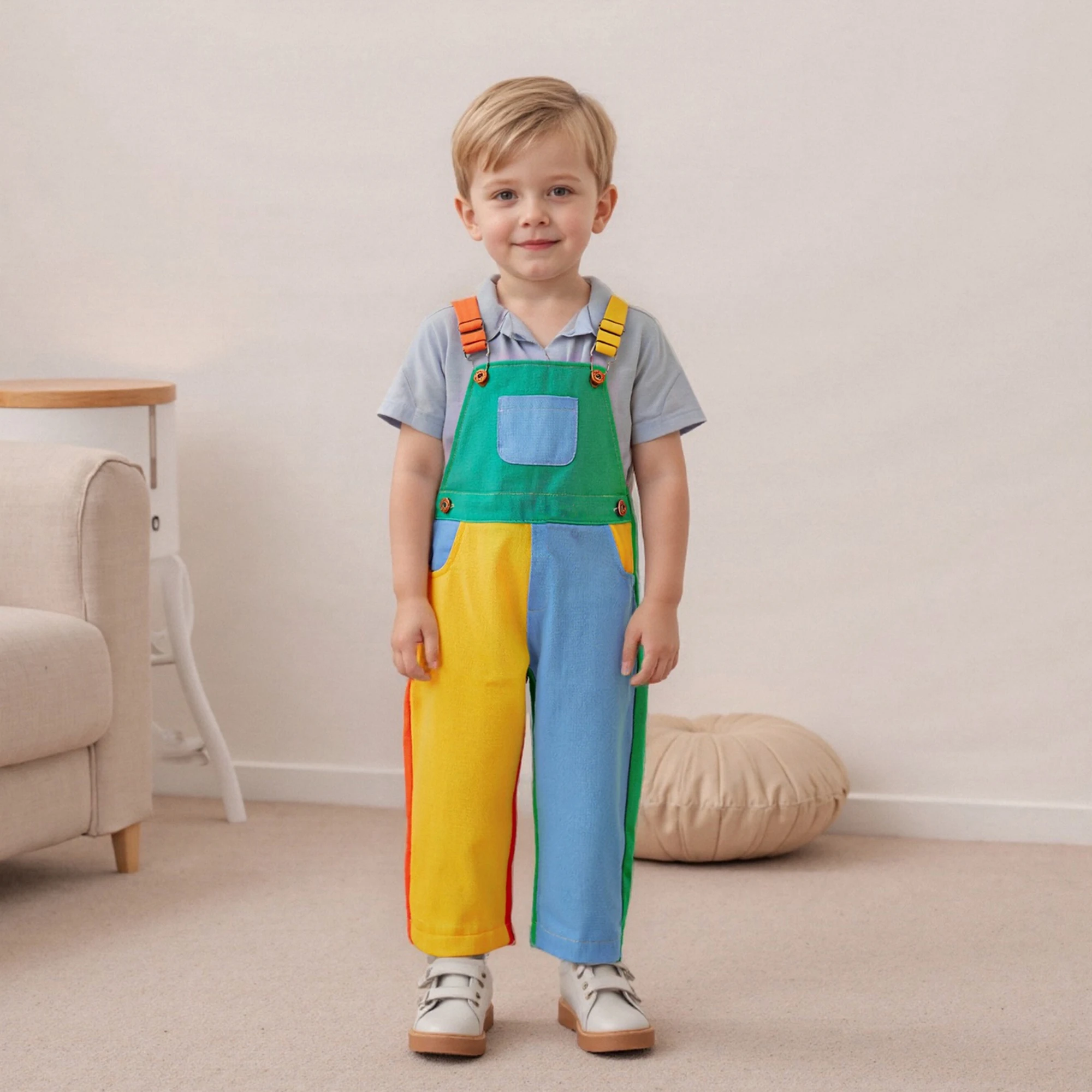Introducing the Kid Denim Overalls, a stylish and practical addition to your little one’s wardrobe. Designed for comfort and ease of movement, this full-length romper features a contemporary square neck and adjustable shoulder straps, ensuring a perfect fit for every child. Made from a blend of cotton and polyester, these overalls are not only durable but also soft against the skin, making them suitable for all-day wear in any season.