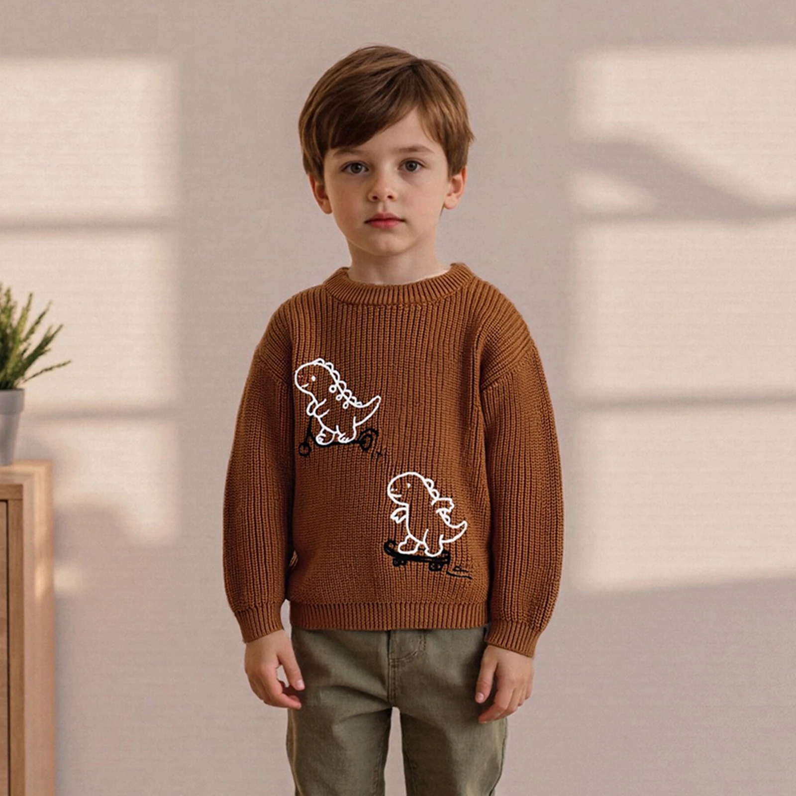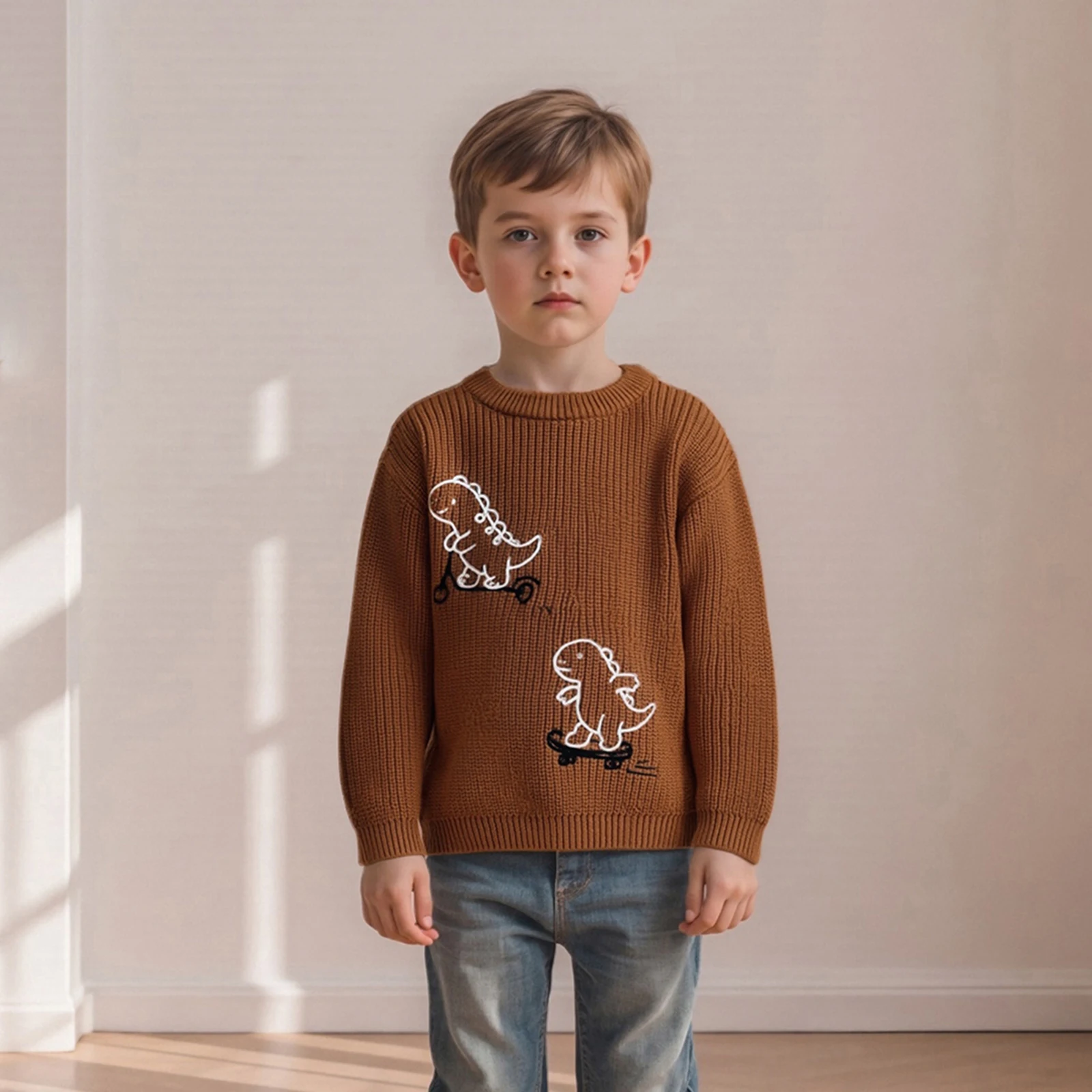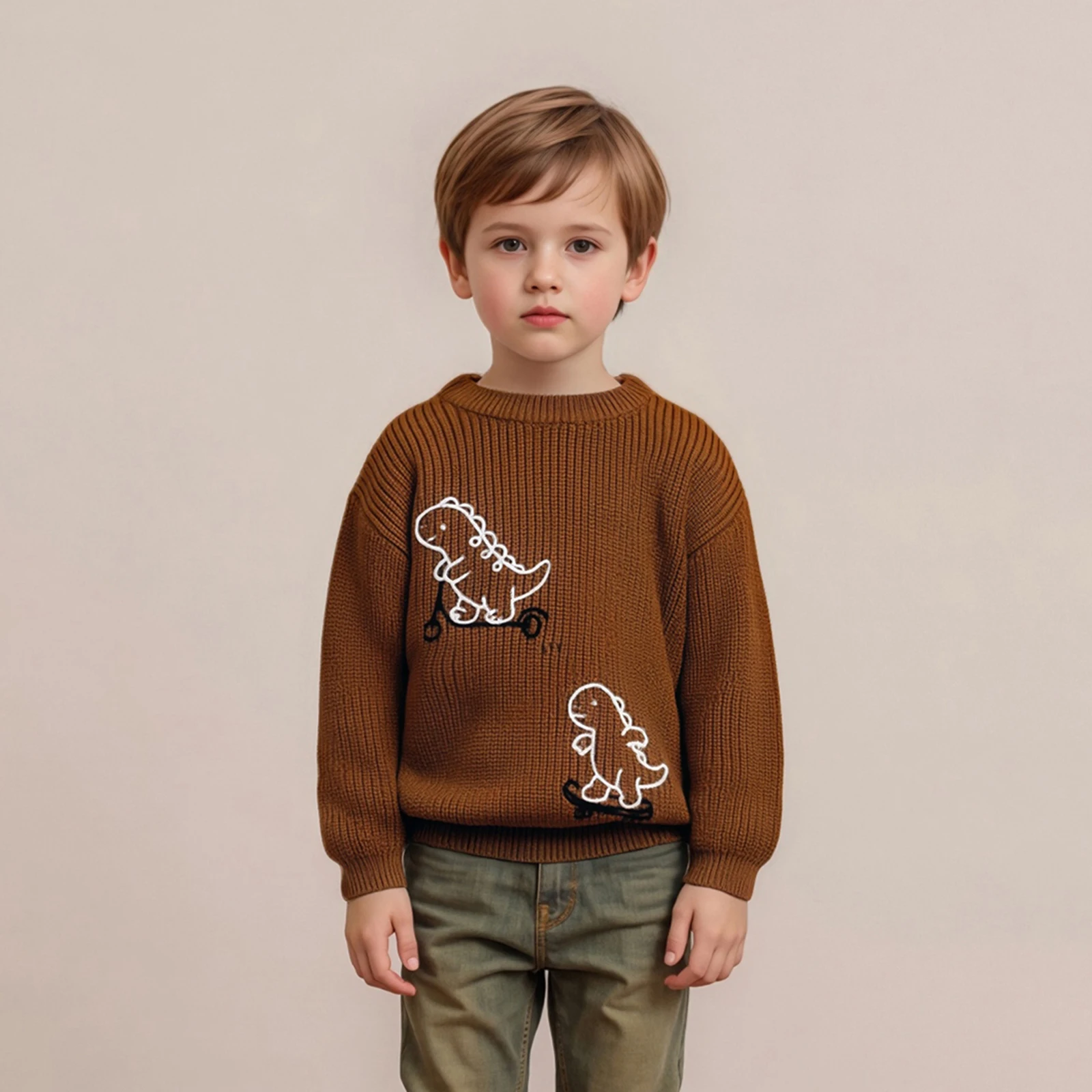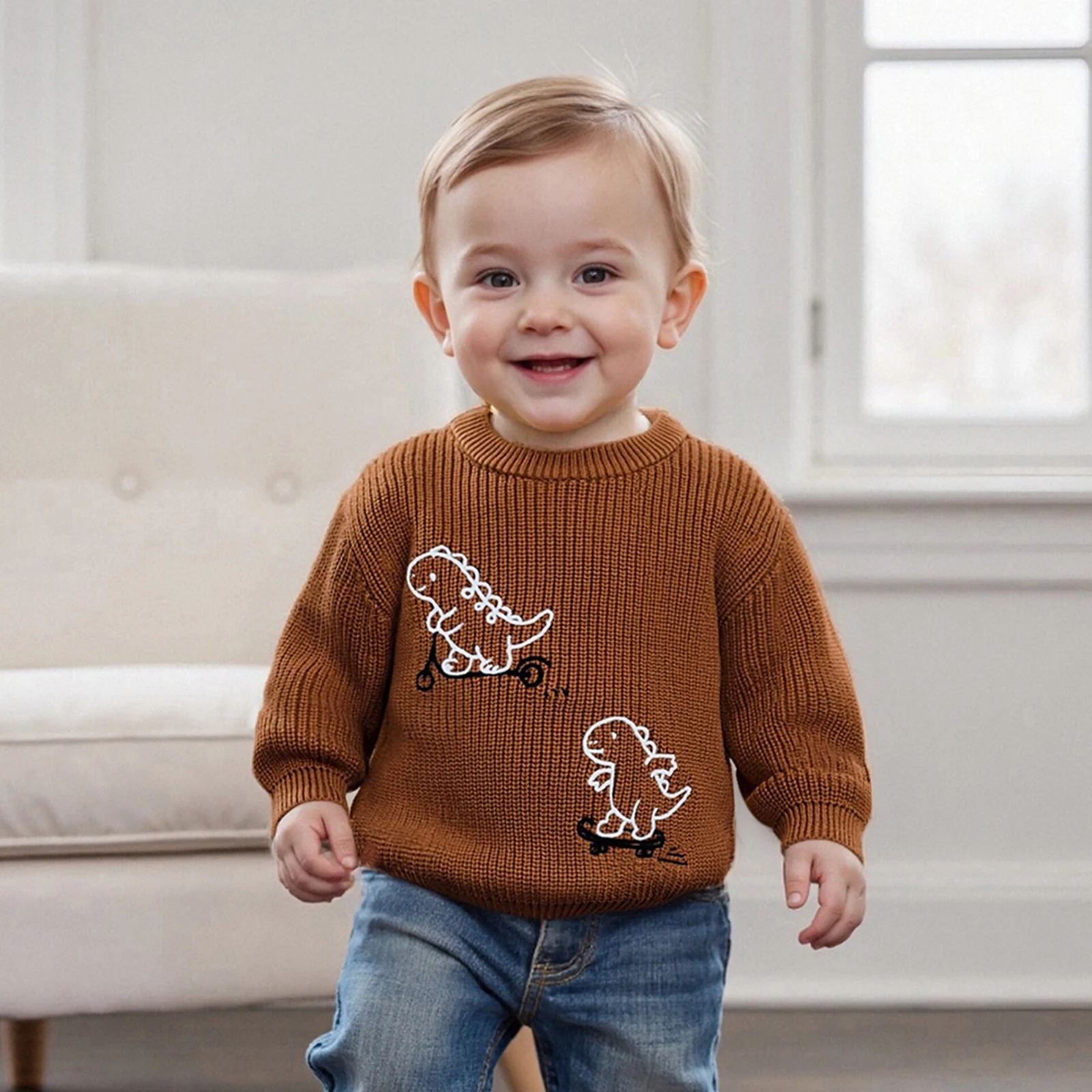 Introducing the perfect blend of comfort and style for your little one, our Toddler Baby Fall Sweater is designed with a loose fit that allows for easy movement and play. Featuring a charming dinosaur pattern, this ribbed crew neck long sleeve knitted top is a must-have addition to your toddler’s wardrobe. Ideal for all seasons, it keeps your child warm while making a fashion statement. Crafted from a soft mix of cotton and polyester, this sweater ensures your child stays cozy throughout the day.