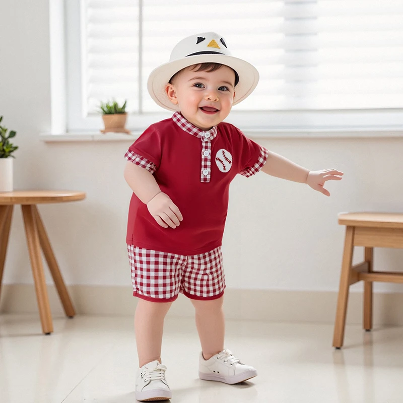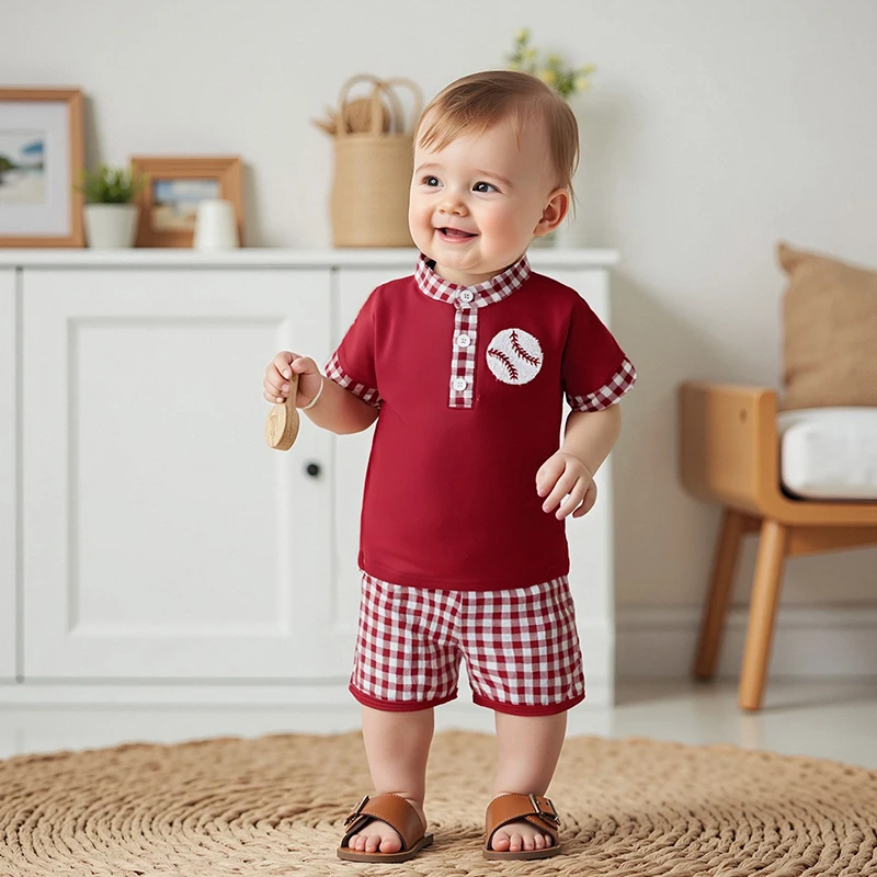 Discover the perfect summer outfit for your little one with our Minimillo Toddler Kids Boys Shorts Set. This delightful ensemble features a short-sleeve embroidered baseball t-shirt paired with stylish plaid shorts, making it a must-have for any toddler’s wardrobe. Whether your child is playing at the park, attending a family gathering, or enjoying a sunny day outdoors, this outfit ensures maximum comfort and a chic look that will make them feel confident and happy.