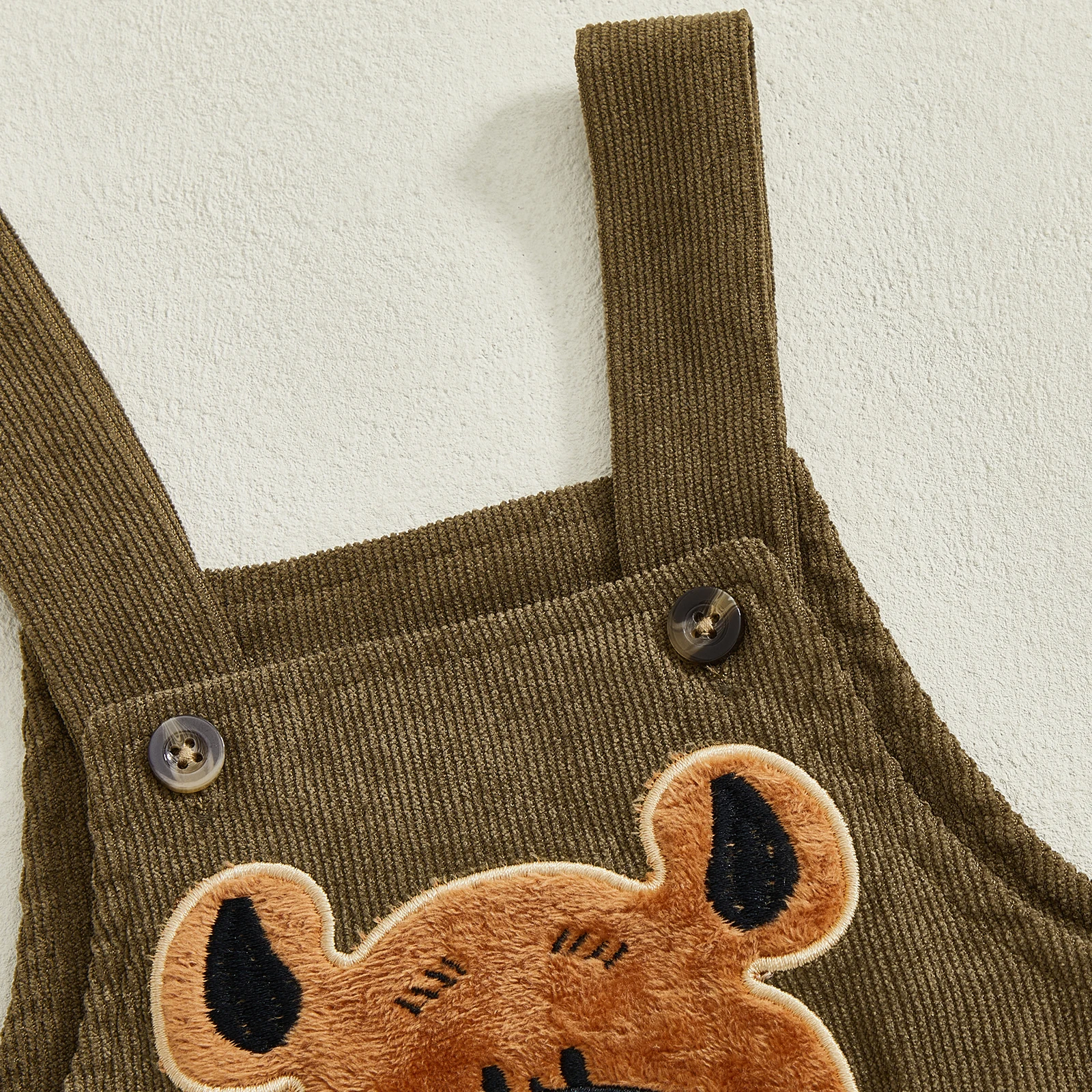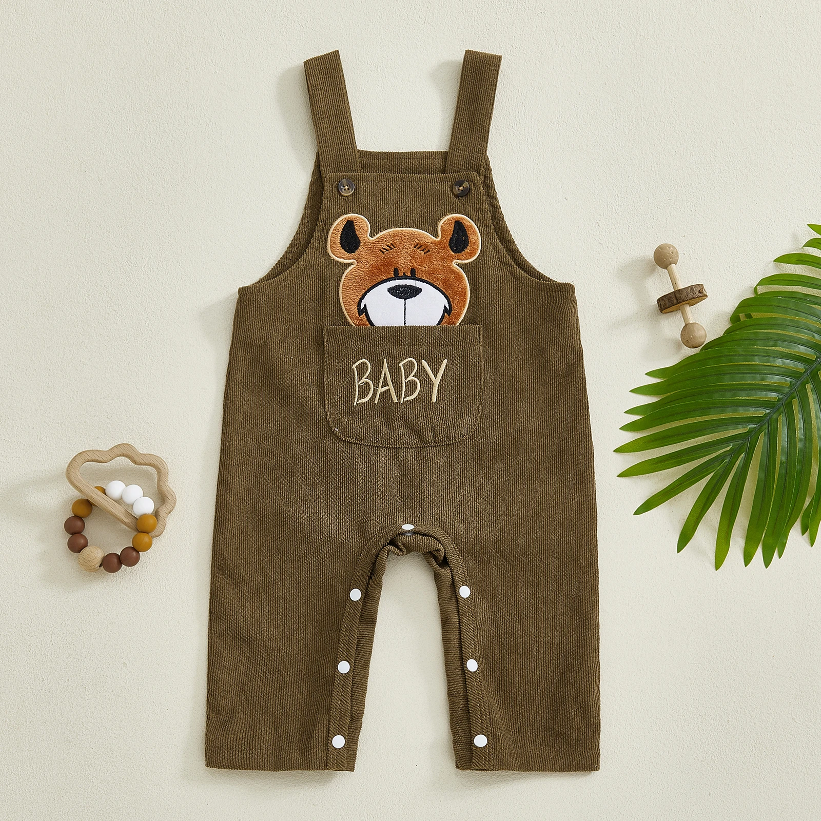 Introducing the Baby Boy Fall Romper, designed for ultimate comfort and style for your infant. This loose-fitting, sleeveless overall jumpsuit features delightful bear letter embroidery that adds a touch of charm to your baby’s wardrobe. Crafted with a blend of high-quality cotton and polyester, this romper is perfect for your baby’s autumn outings.