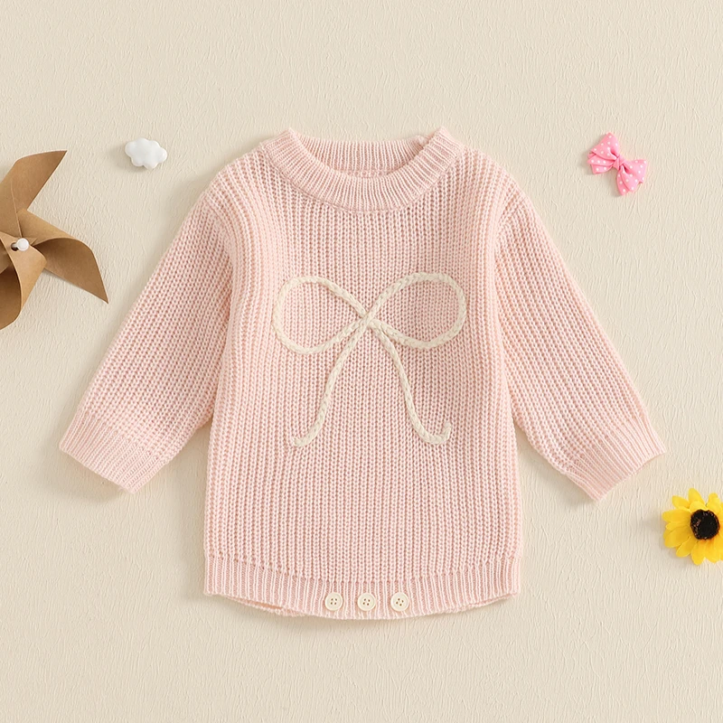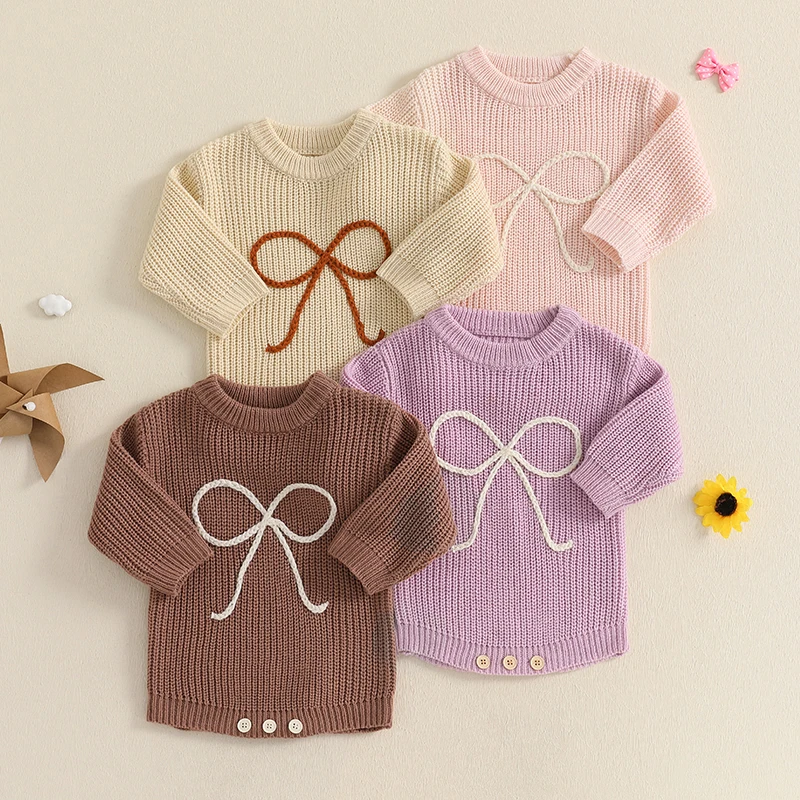 Introducing the adorable Baby Girls Sweater Rompers, designed to keep your little one cozy and stylish during the cooler months. These charming long sleeve bodysuits feature a delightful bow embroidered design and a comfortable round neck. Perfect for autumn, these jumpsuits are not only fashionable but also practical for everyday wear. Crafted from 100% Acrylic, they ensure softness against your baby’s delicate skin.