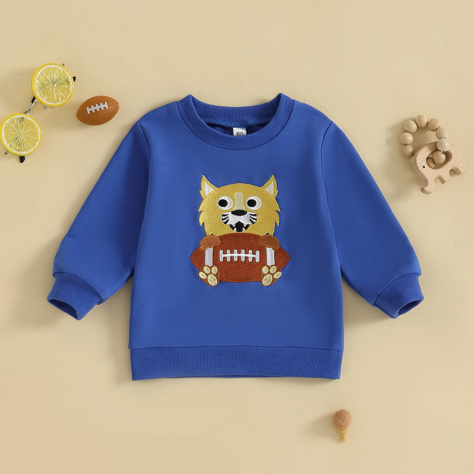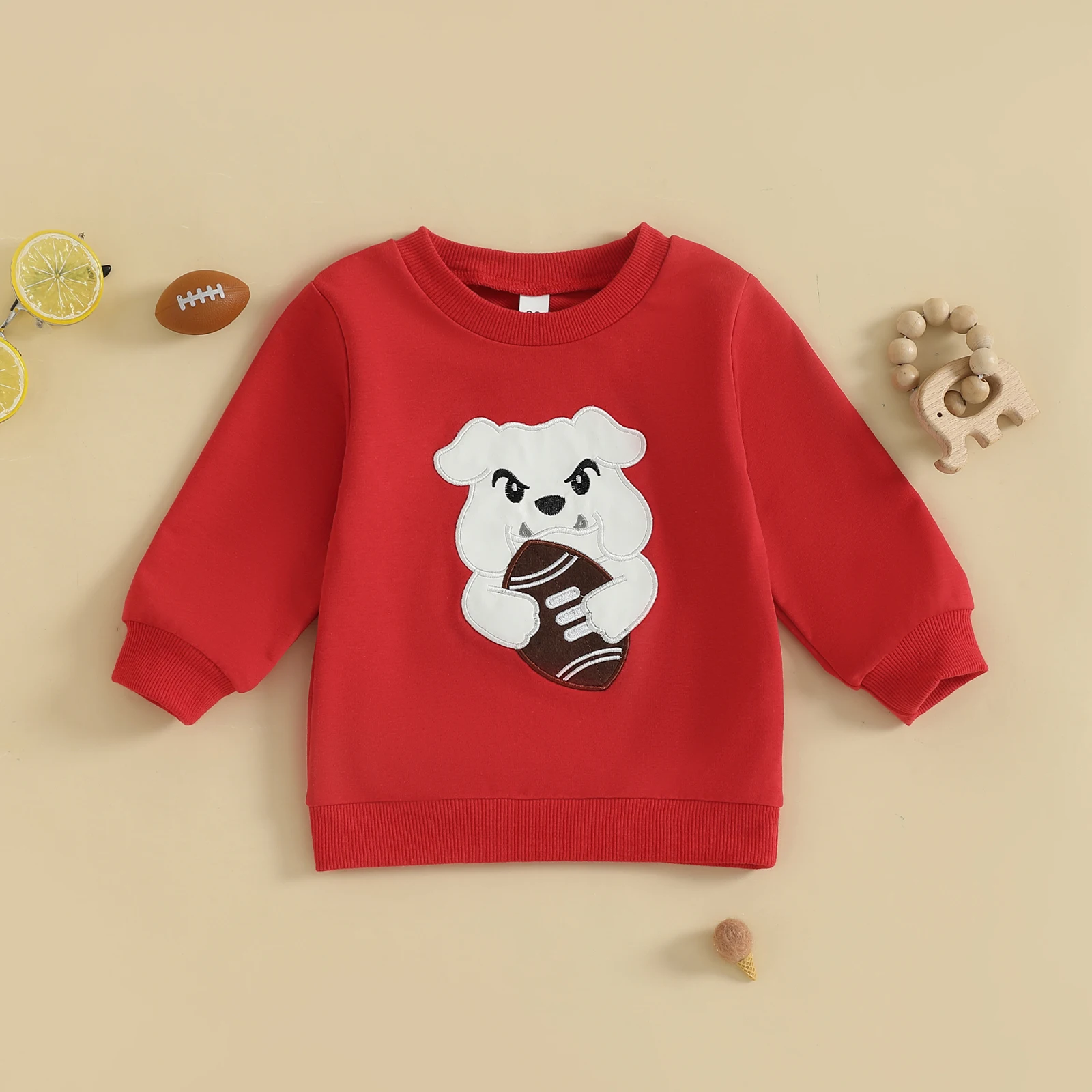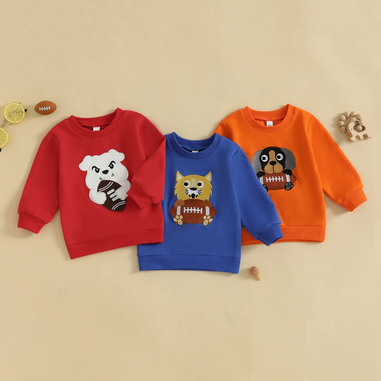 Dress your little one in style and comfort with the Minimillo Toddler Baby Football Sweatshirt. This charming crew neck pullover features an adorable embroidered rugby dog design, perfect for casual outings or cozy days at home. Crafted from a blend of materials, this sweatshirt is designed to keep your toddler warm and comfortable throughout all seasons. With its unisex design, it’s an ideal choice for both boys and girls, making it a versatile addition to any child’s wardrobe.