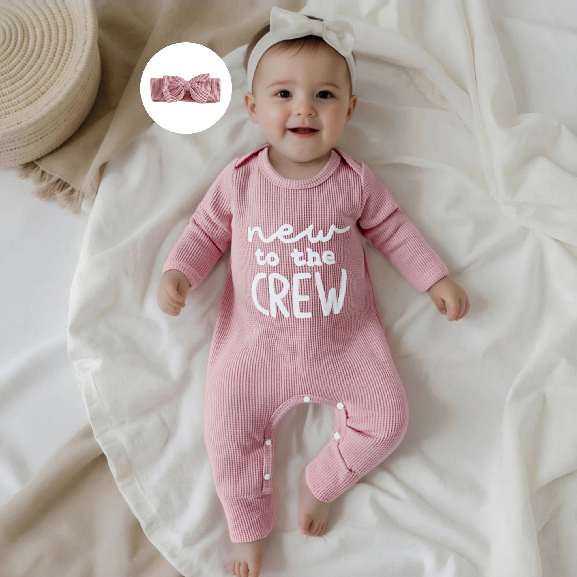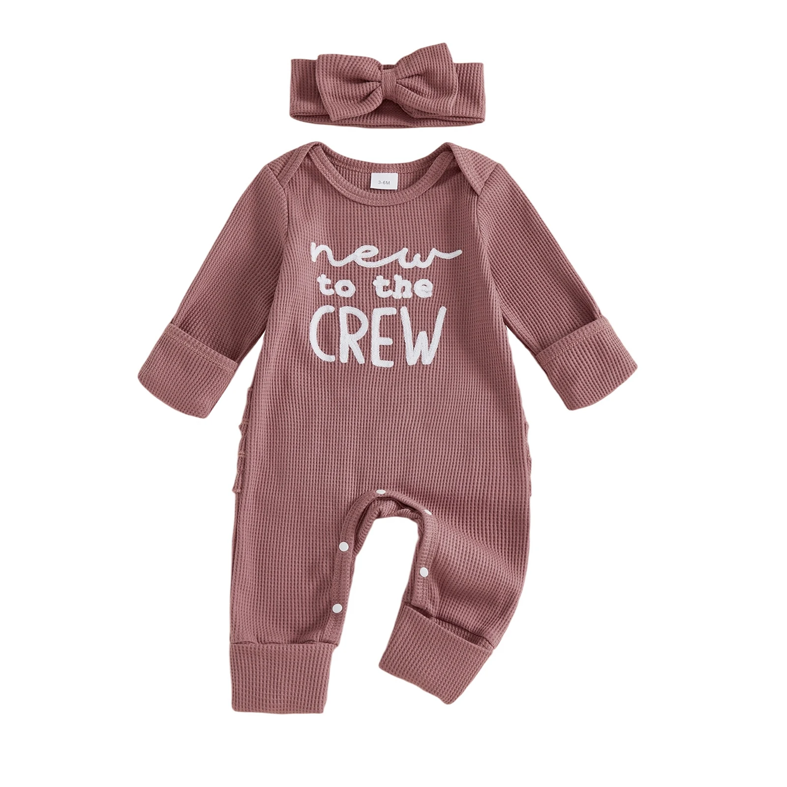 Baby Girls Romper: Fashionable Letters Embroidery Long Sleeve Round Neck Jumpsuit with Headband