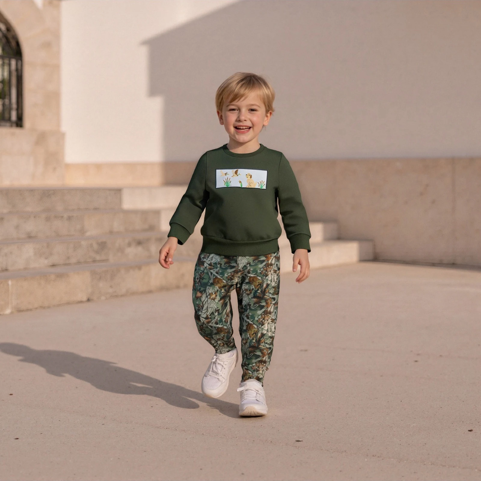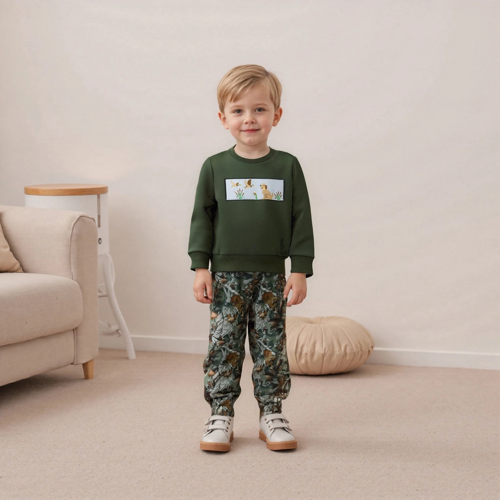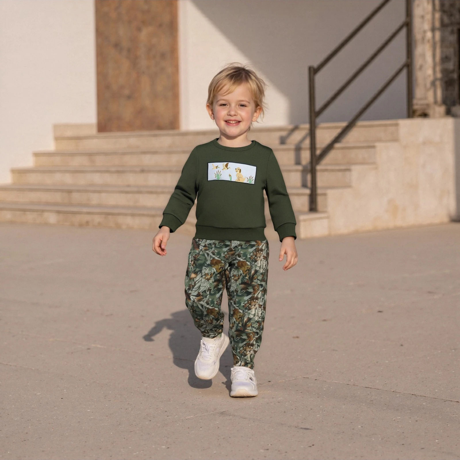 Introducing the perfect blend of style and comfort for your little one with our Toddler Baby Boy Fall Outfit. This exquisite 2-piece set features an embroidered long sleeve sweatshirt paired with trendy camouflage pants. Designed for active toddlers, this outfit ensures your child looks adorable while being comfortable enough for their playful adventures. Ideal for various occasions, this outfit is a must-have for your toddler’s wardrobe this season.