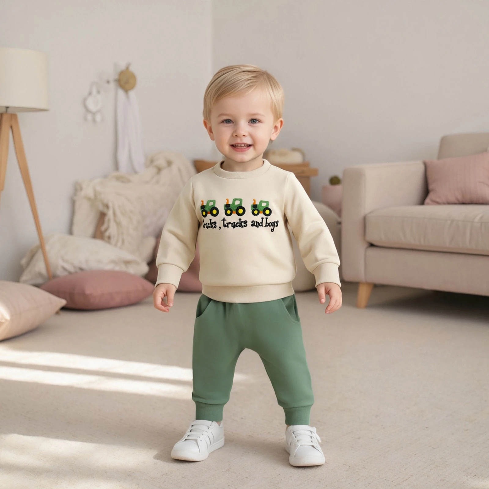 Discover the perfect blend of style and comfort with our Toddler Baby Boy Winter Fall Outfit. This adorable 2-piece set features a charming truck letter embroidered sweatshirt paired with stylish solid jogger pants, making it an ideal choice for your little one during the cooler seasons. Crafted from high-quality materials, this outfit not only looks great but also ensures your child stays warm and comfortable all day long.