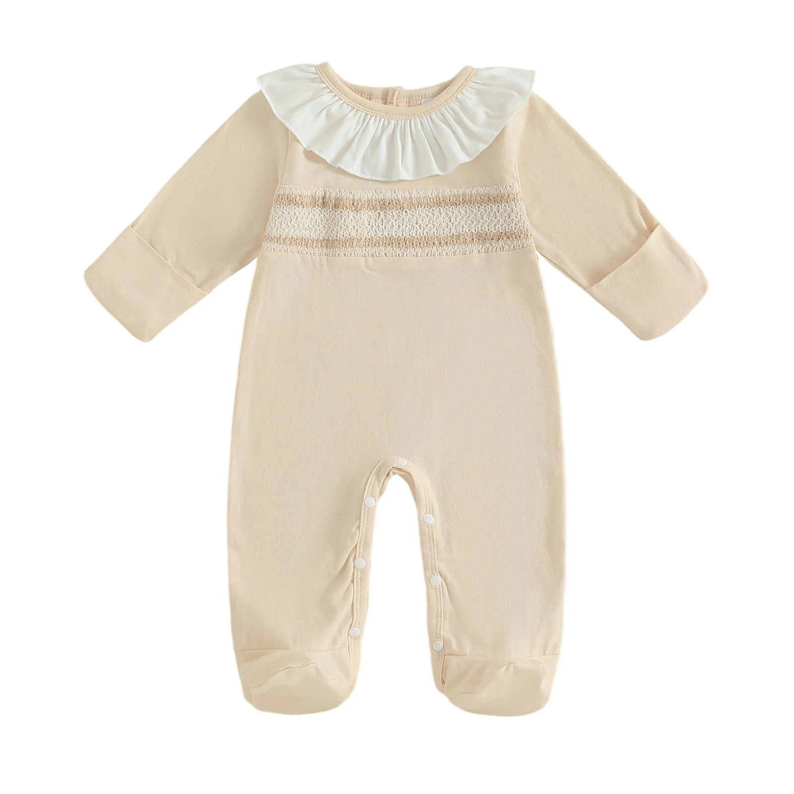 The Newborn Baby Girl Fall Romper is designed to provide both style and comfort for your baby girl during the cooler months. With its charming contrast colors and adorable ruffles, this long sleeve jumpsuit is perfect for daily wear, family gatherings, or special occasions. The soft fabric ensures your baby stays cozy while looking absolutely delightful!
