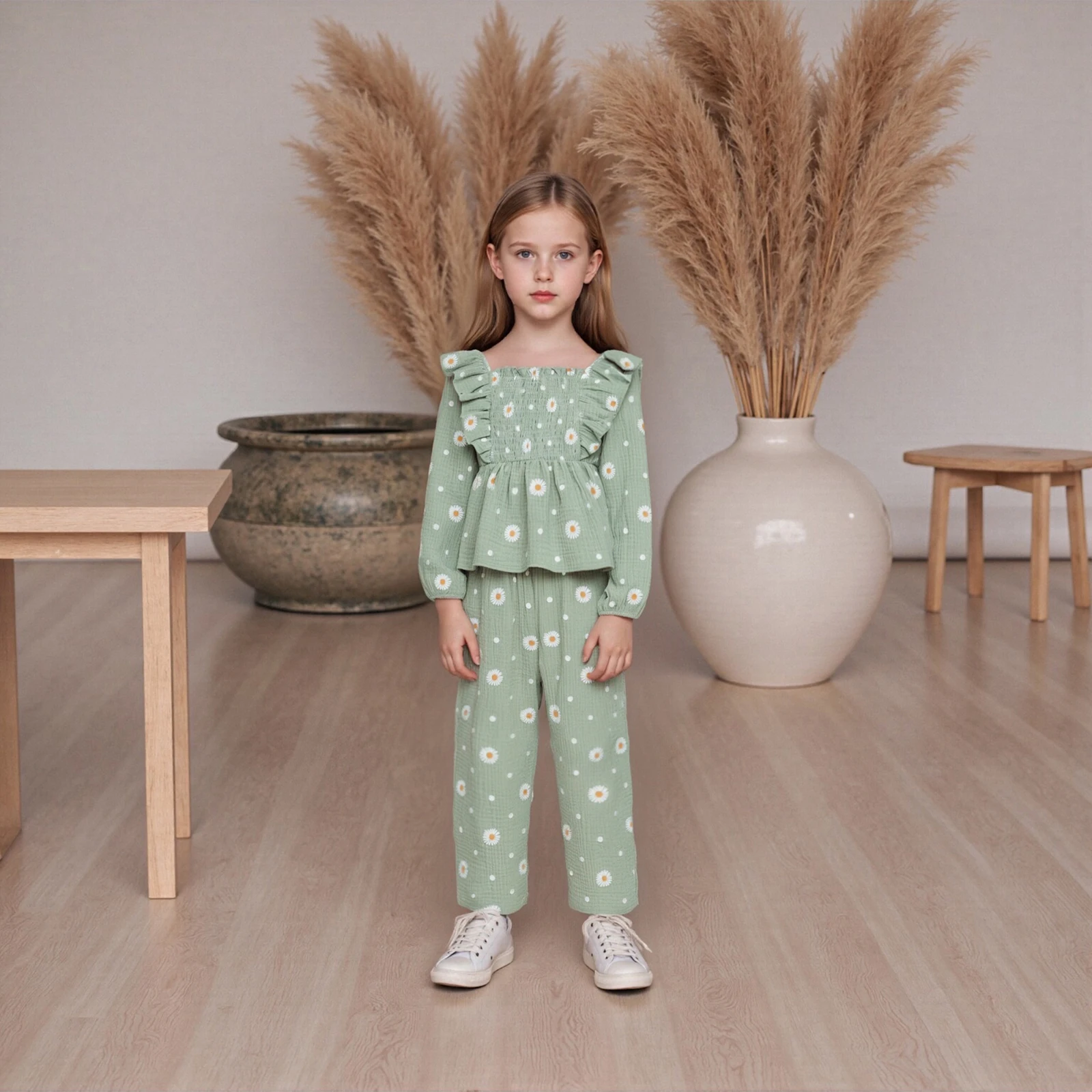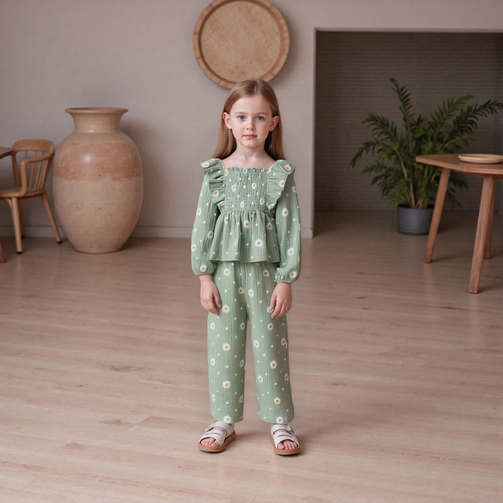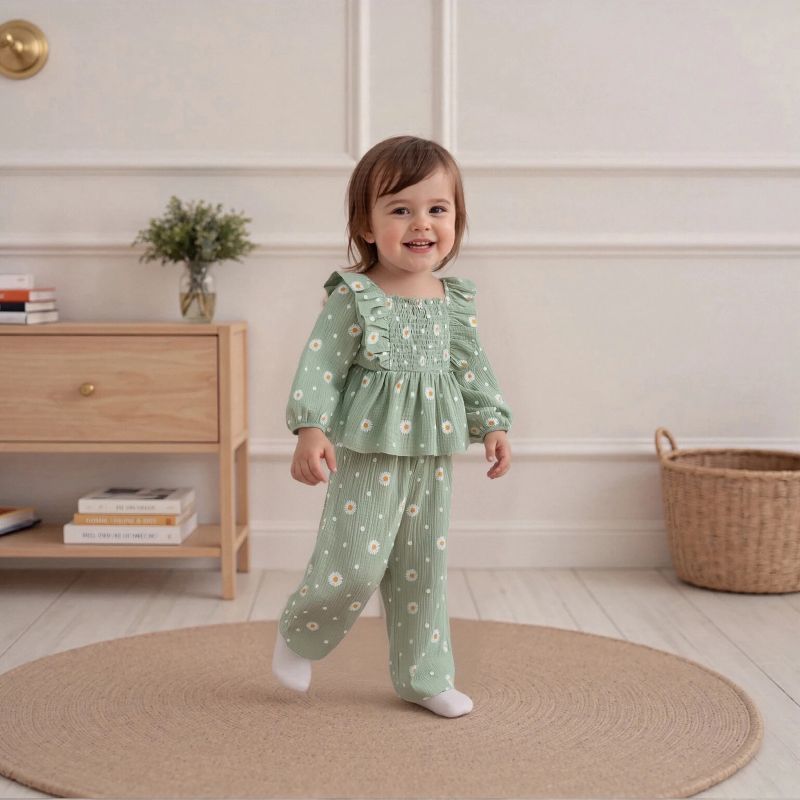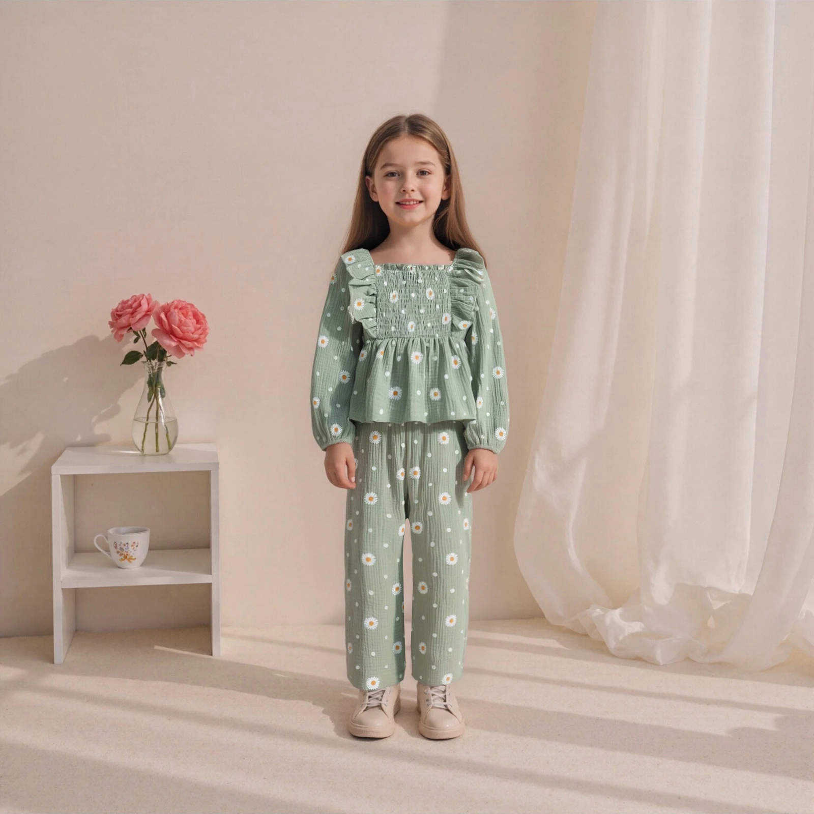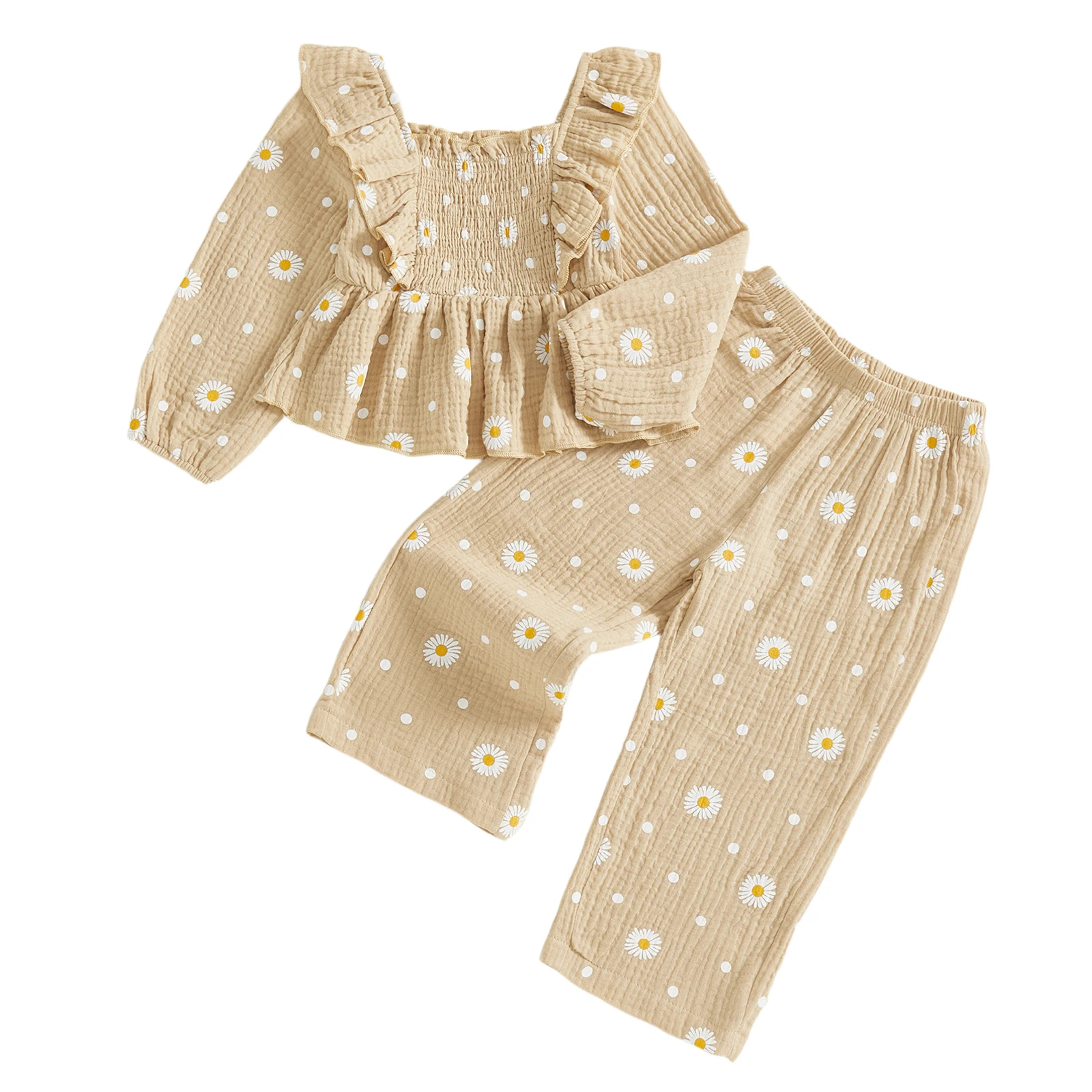 Dress your little princess in this delightful 2Pcs Fall Outfit, featuring a stylish long sleeve square neck shirt adorned with beautiful flower embroidery paired with trendy wide leg pants. This outfit is perfect for all seasons, providing comfort and style for your toddler as they explore and play.