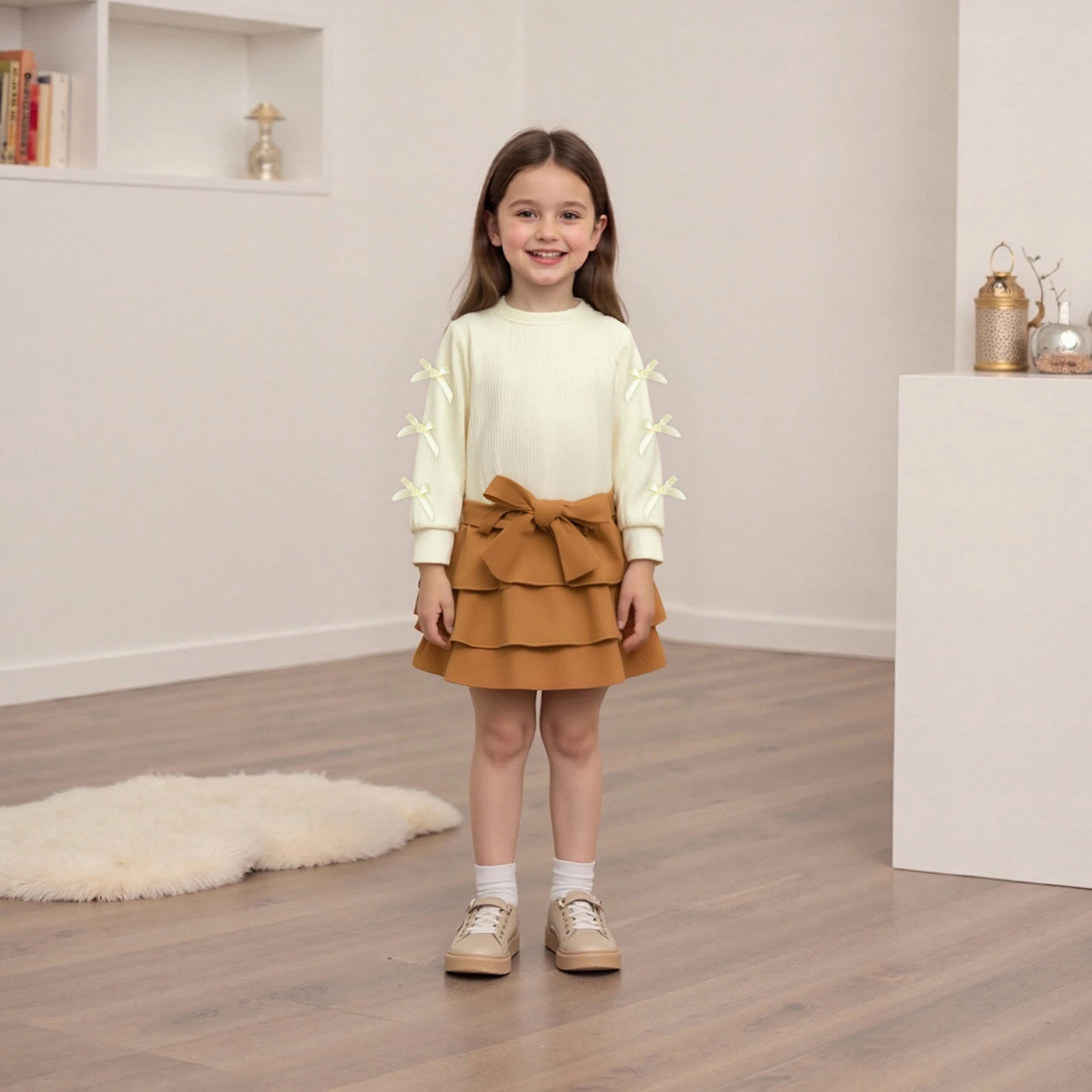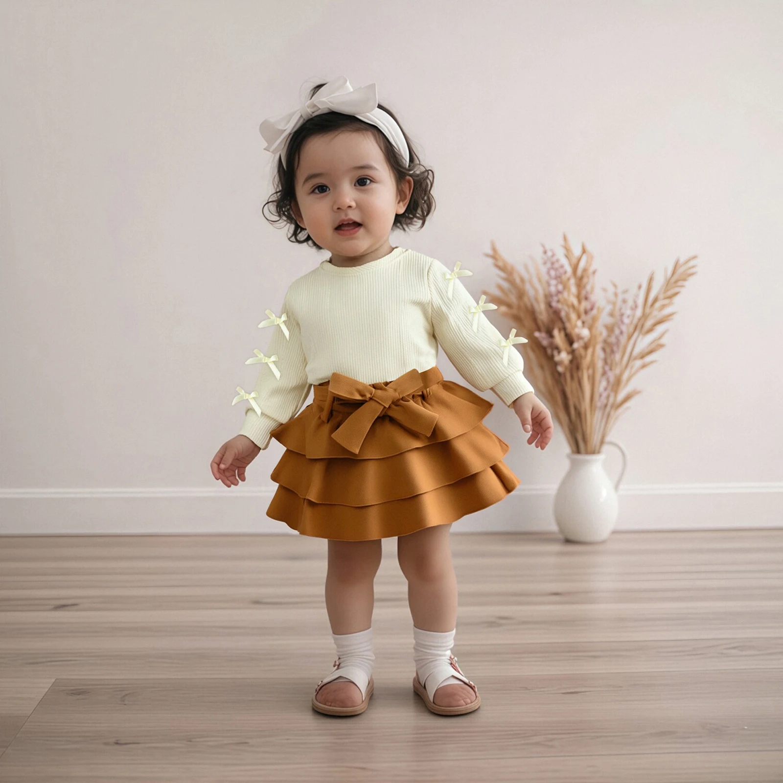 Introducing the Toddler Little Girl Fall Outfit – a charming combination of style and comfort designed for your little princess. This delightful 3-piece set features a cute bow long sleeve sweatshirt, a lovely layered ruffle skirt, and a fashionable belt, ensuring your toddler stands out in any autumn gathering. Crafted from high-quality materials, this outfit is perfect for playtime, family outings, or cozy days at home.