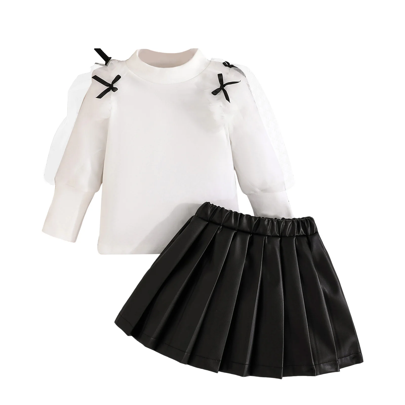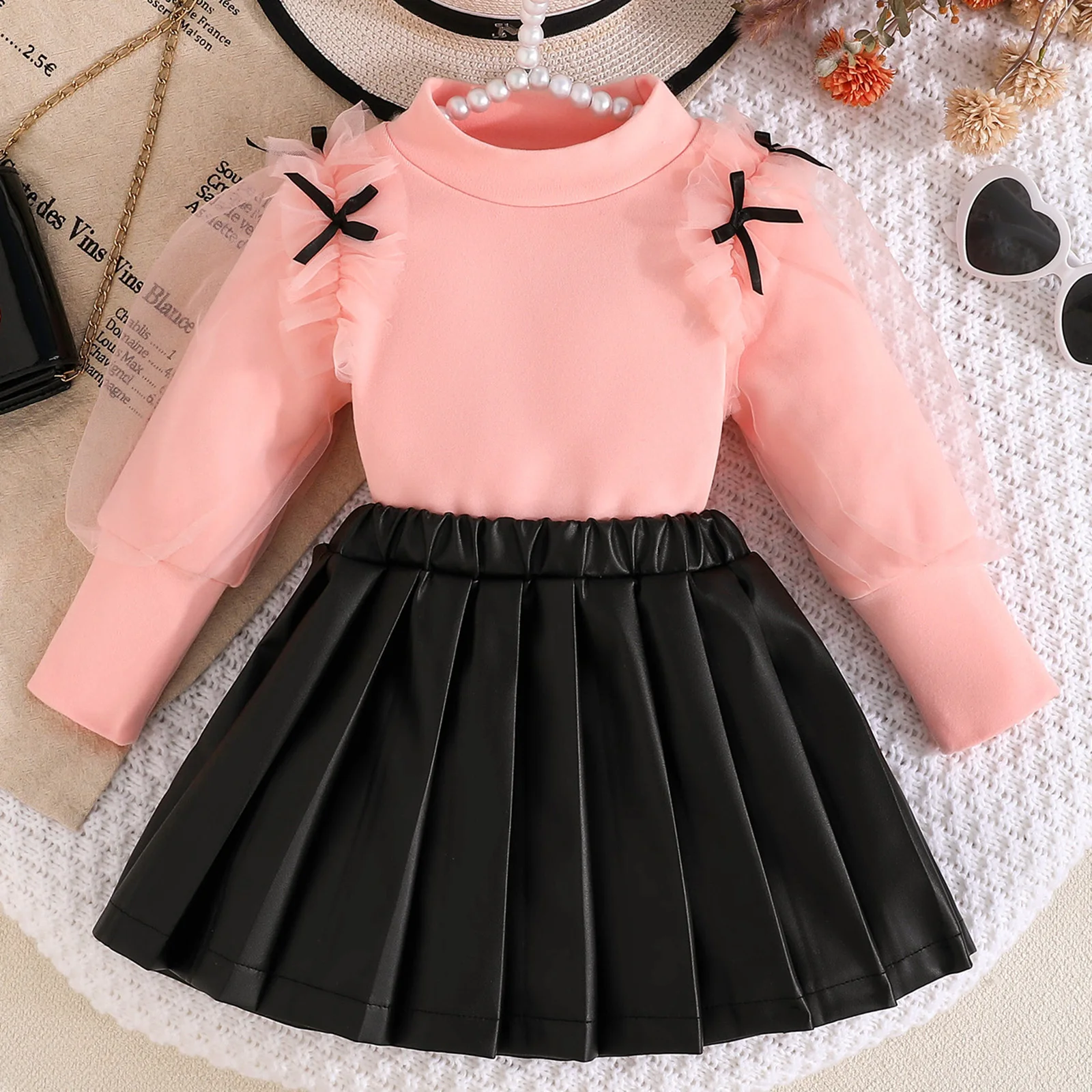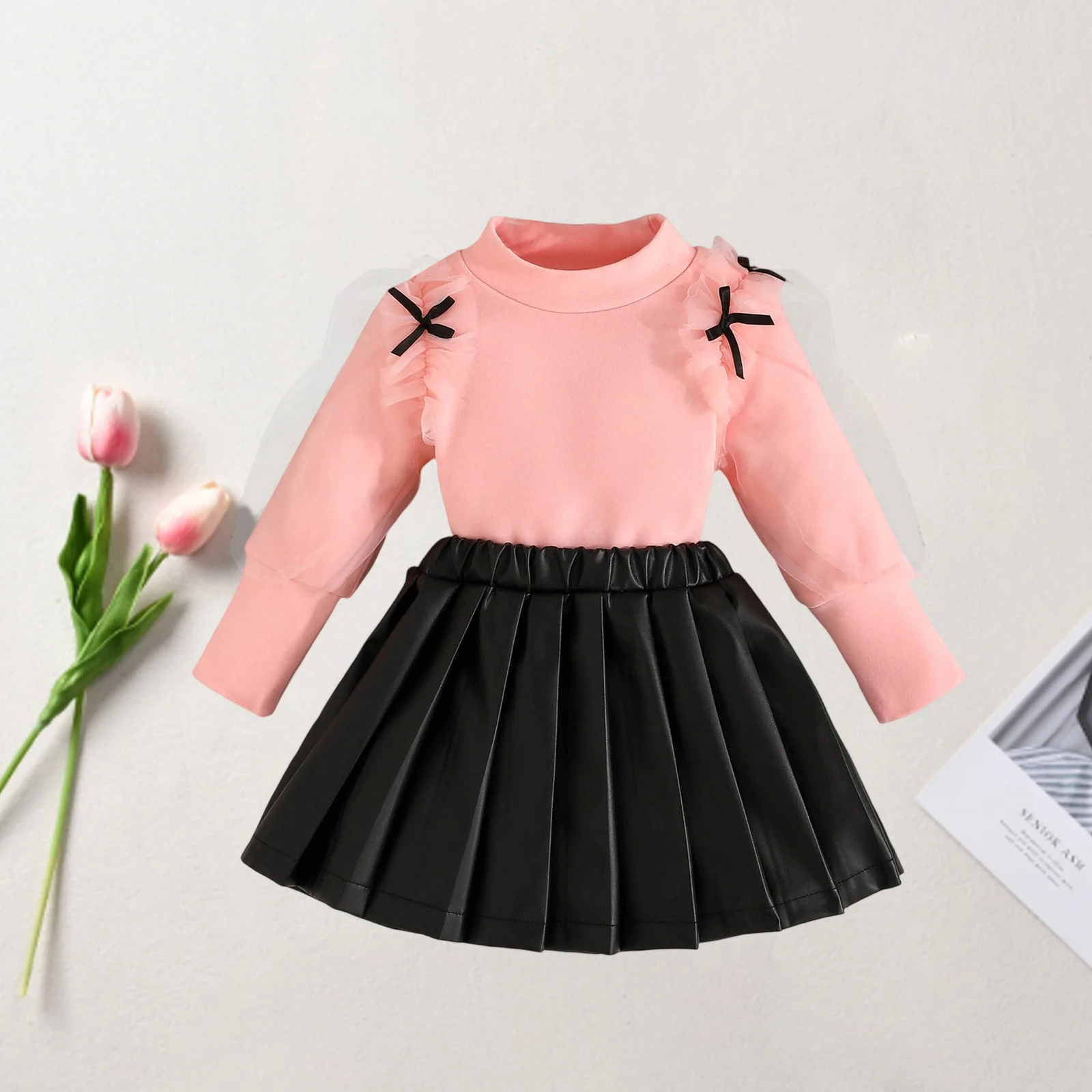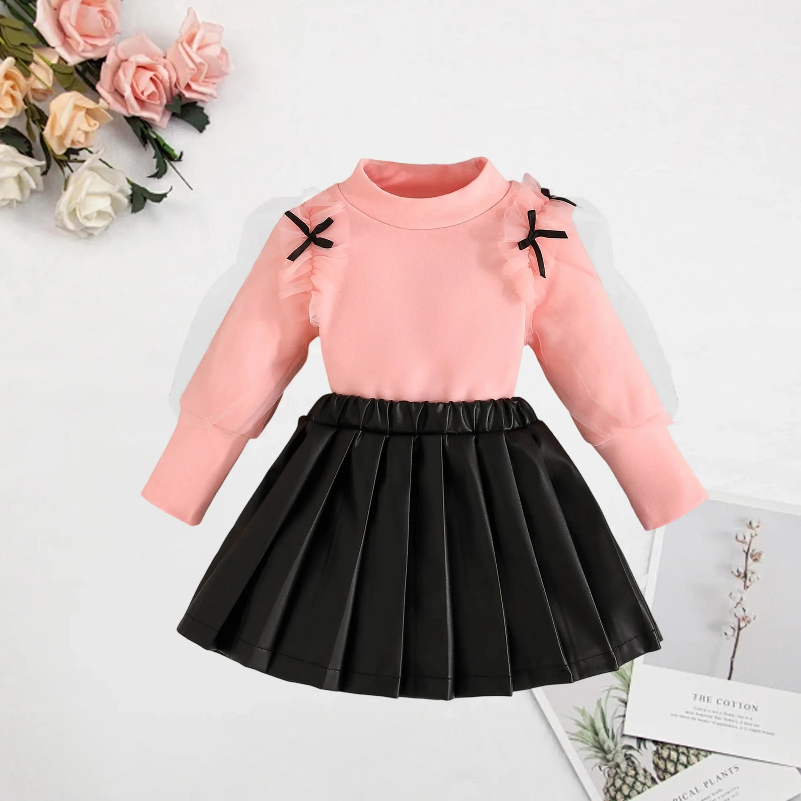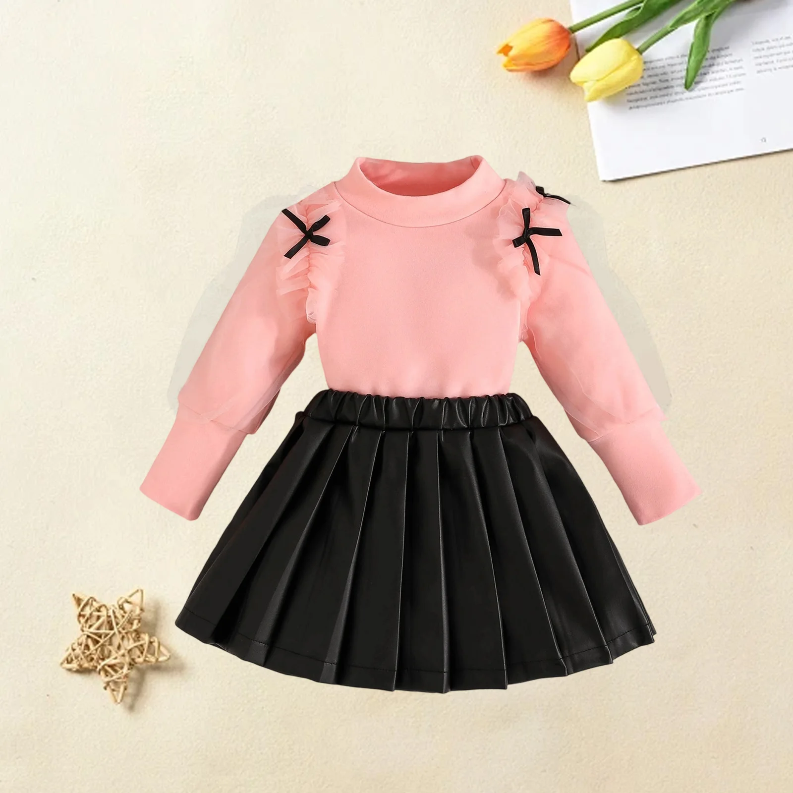 Elevate your little girl’s wardrobe this season with our charming Toddler Baby Girl Fall Outfits. This delightful 2-piece set features a beautifully designed top with a decorative mesh bow and a pleated skirt, ensuring your child looks stylish while feeling comfortable. Perfect for any occasion, this outfit combines playful elegance with practical wearability, making it an ideal choice for everyday adventures or special family gatherings.
