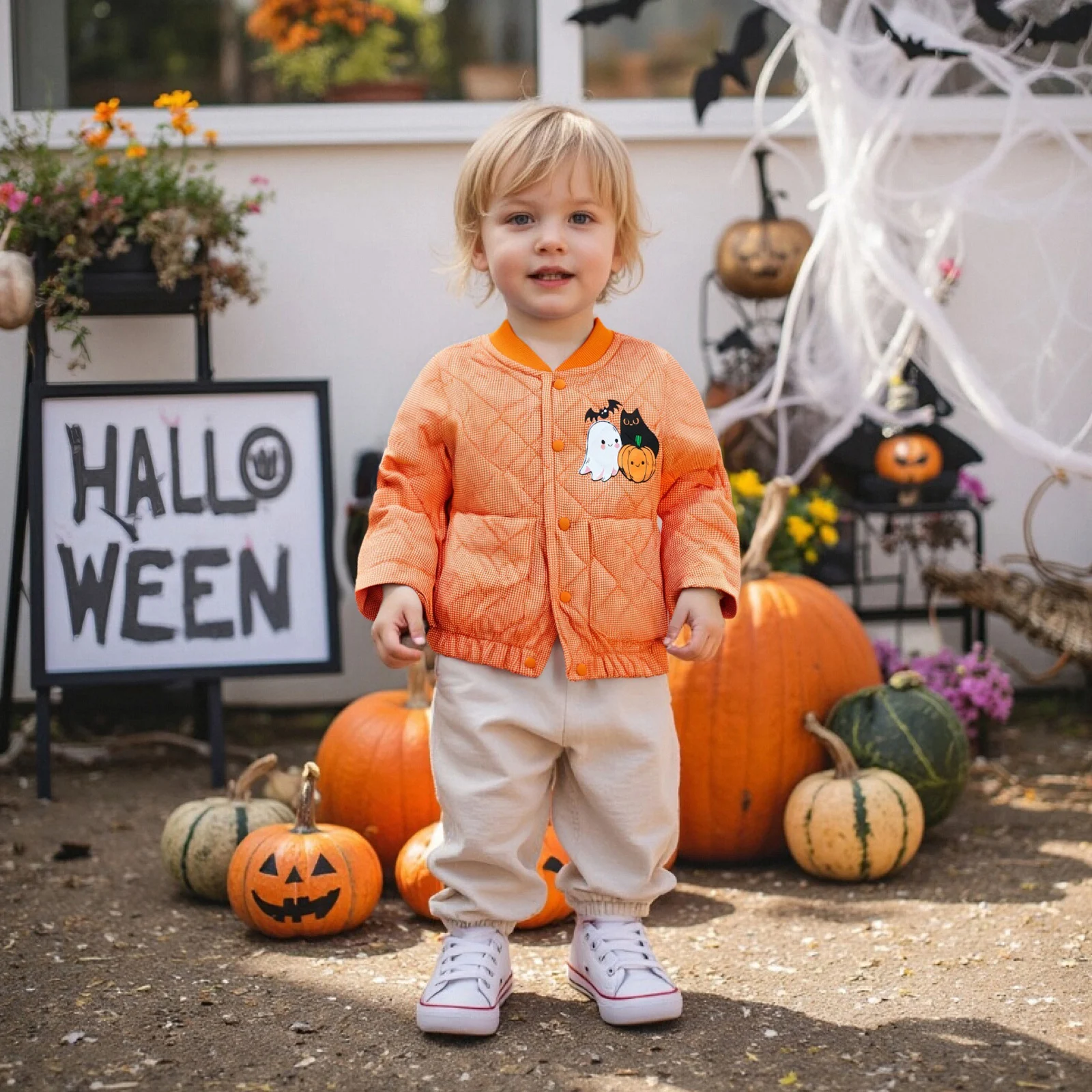 Get your little one ready for Halloween with the adorable Pudcoco Toddler Baby Halloween Coat. This charming jacket features a whimsical Ghost Pumpkin Print that will make your toddler the star of any Halloween celebration. Designed with comfort and style in mind, this quilted jacket is perfect for keeping your baby warm during autumn outings, while the cute design adds a festive touch to their wardrobe.