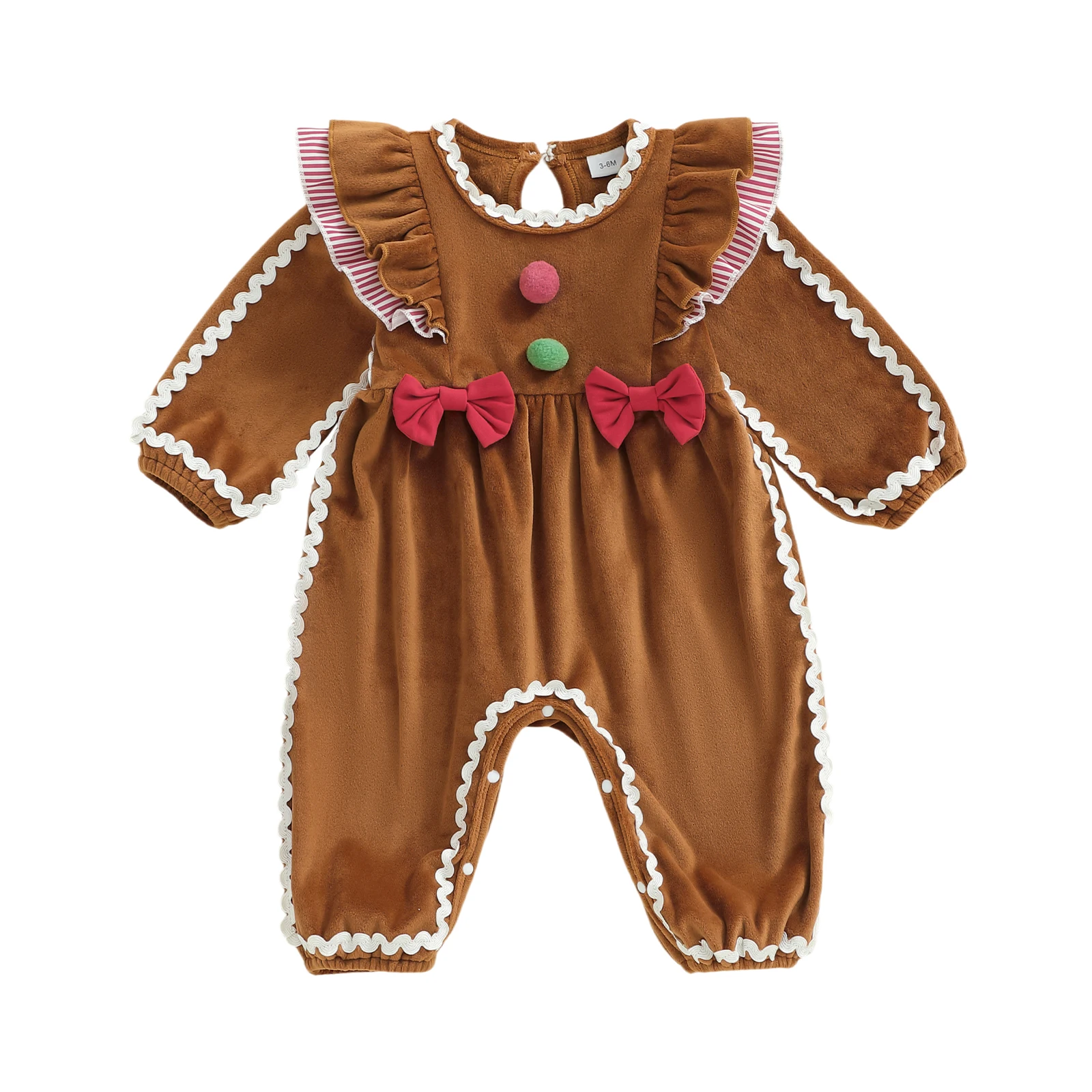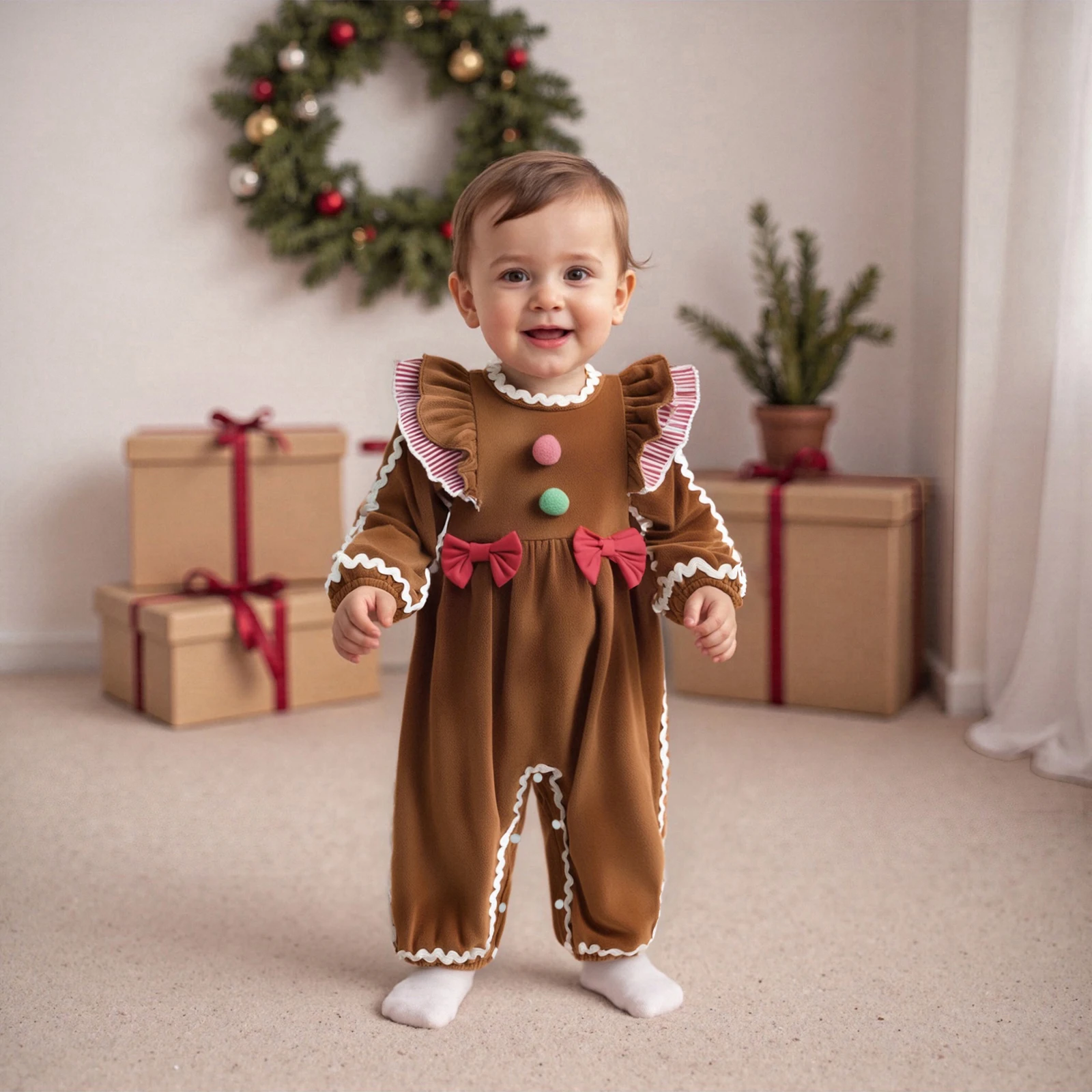Prepare your little one for the festive season with the adorable Christmas Infant Baby Girl Romper. This charming jumpsuit is designed to keep your baby snug and stylish during the holidays. Featuring a delightful Gingerbread Man motif, this romper combines comfort and festive flair, making it the perfect outfit for holiday gatherings or family photos. With its soft fabric and thoughtful design, your baby will be both comfortable and fashionable.