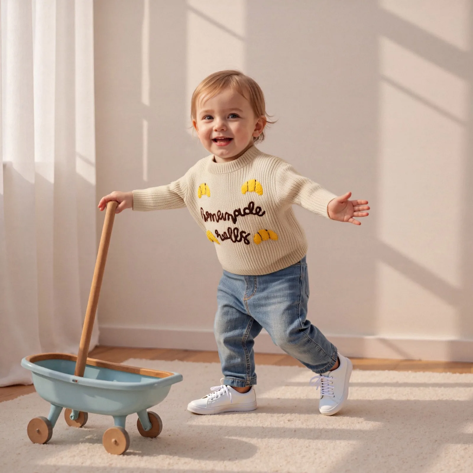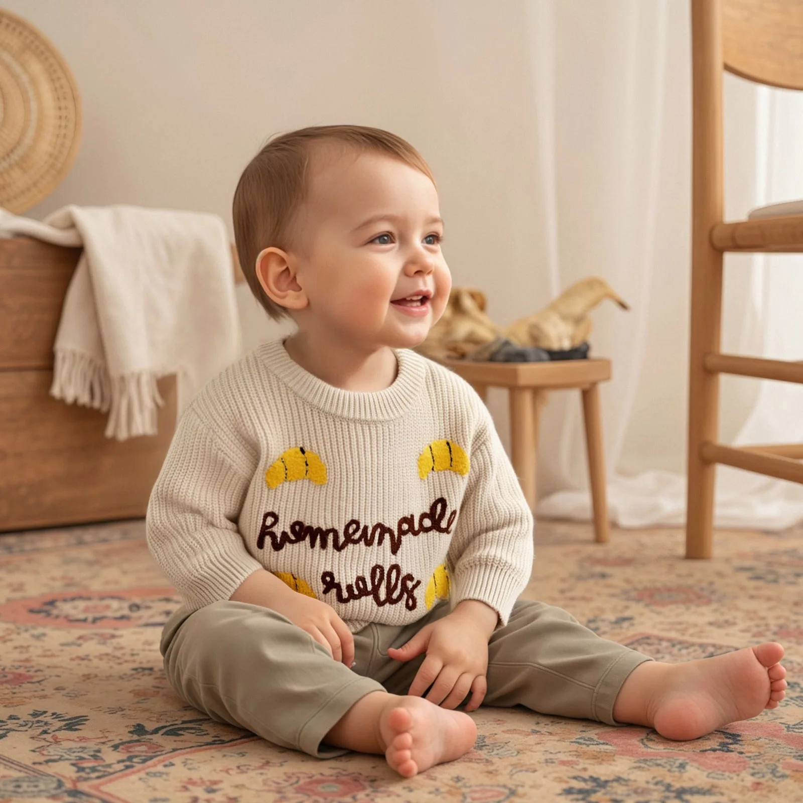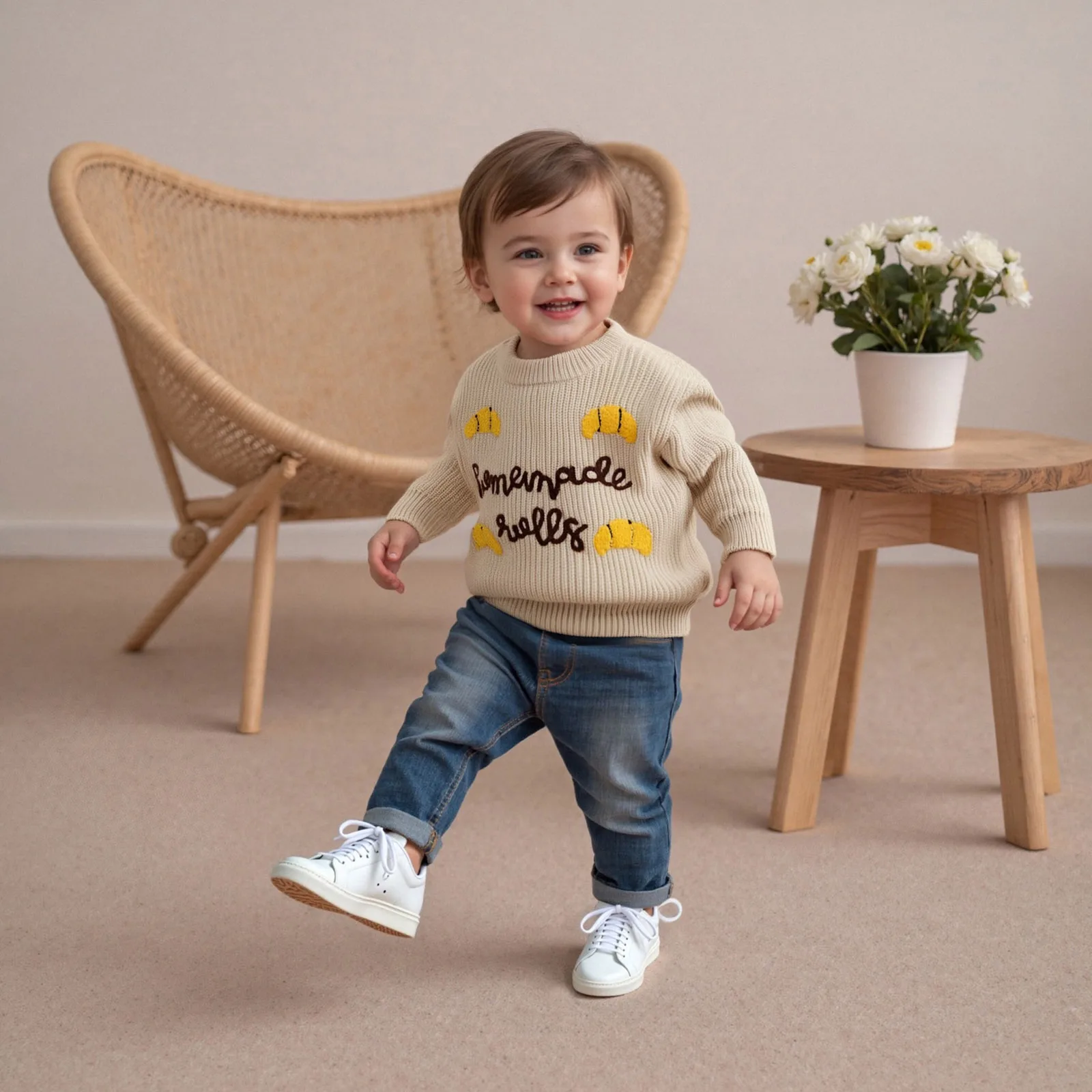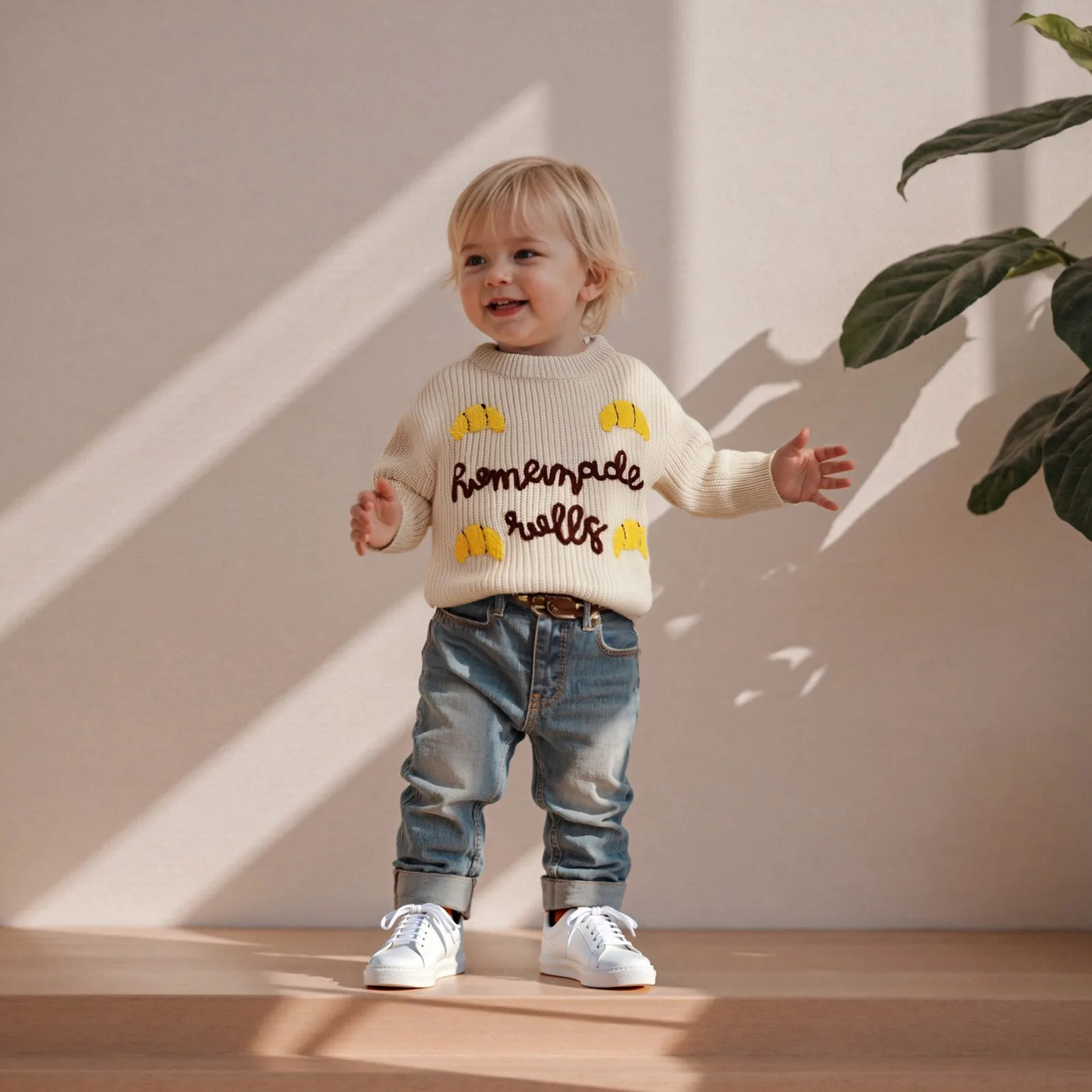 Dress your little one in style with our Toddler Baby Knit Sweater, designed with both comfort and fashion in mind. This adorable crew neck top features charming letter embroidery, making it a perfect choice for any occasion. Crafted from a soft blend of materials, this sweater is not only stylish but also warm and cozy for your toddler. Ideal for all seasons, it’s the perfect addition to your child’s wardrobe.