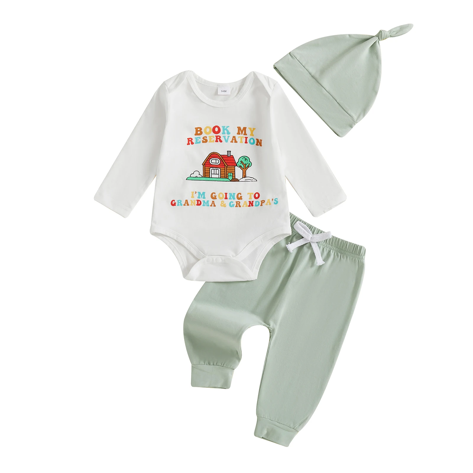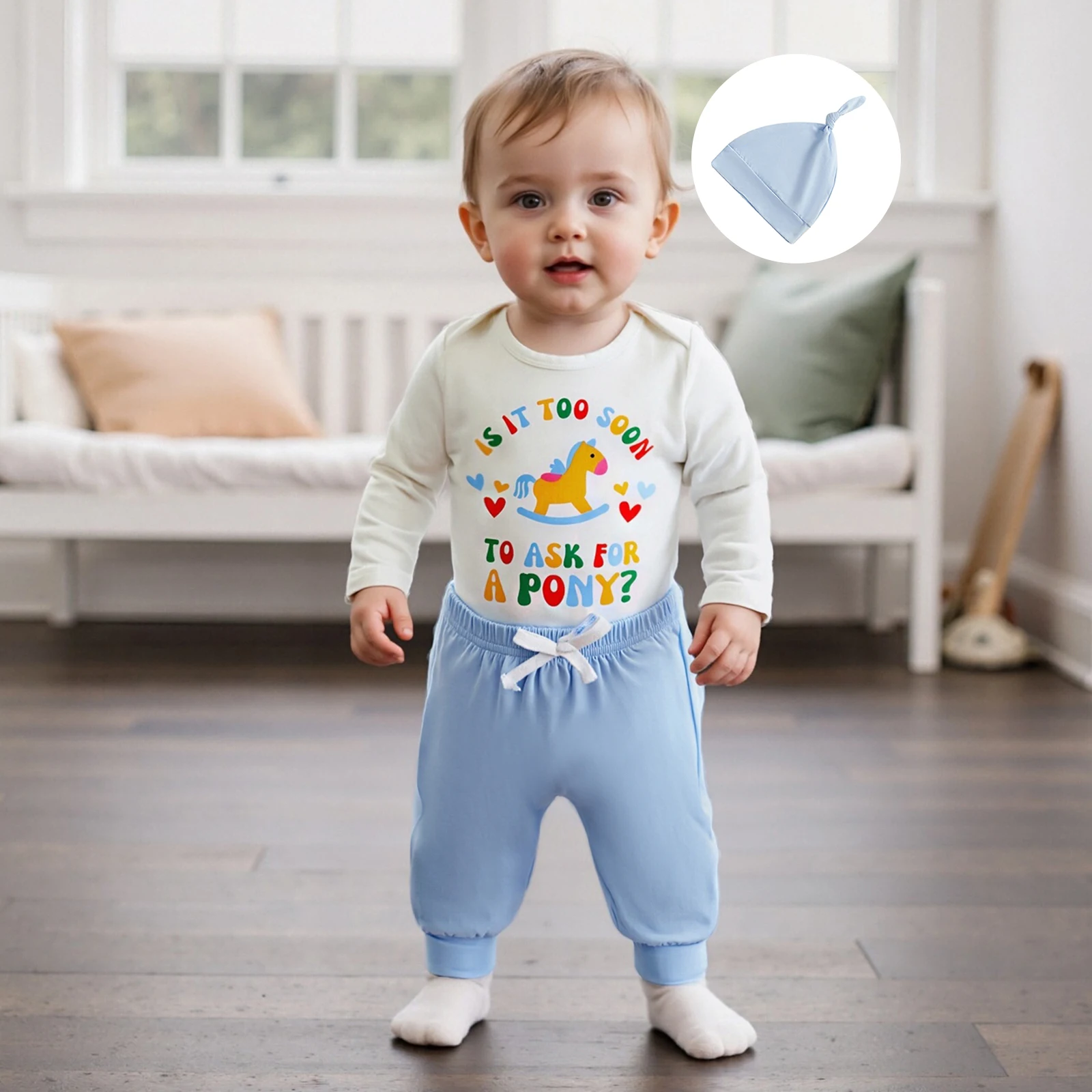 Dress your little one in style with our Infant Baby Boy Girl Outfits. This adorable set features a Letters Print design, a cozy long sleeve crew neck romper, and comfortable elastic waist joggers pants paired with a cute hat. Perfect for all seasons, this outfit ensures your baby stays fashionable and comfortable, whether lounging at home or out on an adventure.