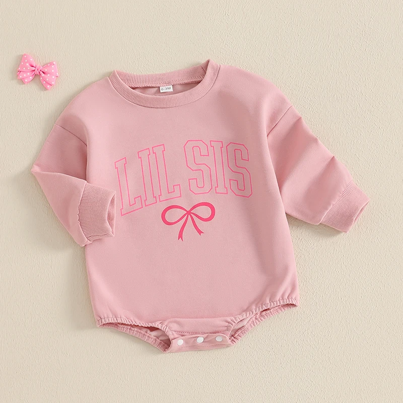 Baby Girls Romper Long Sleeve Crew Neck Letters Bow Print Bodysuit