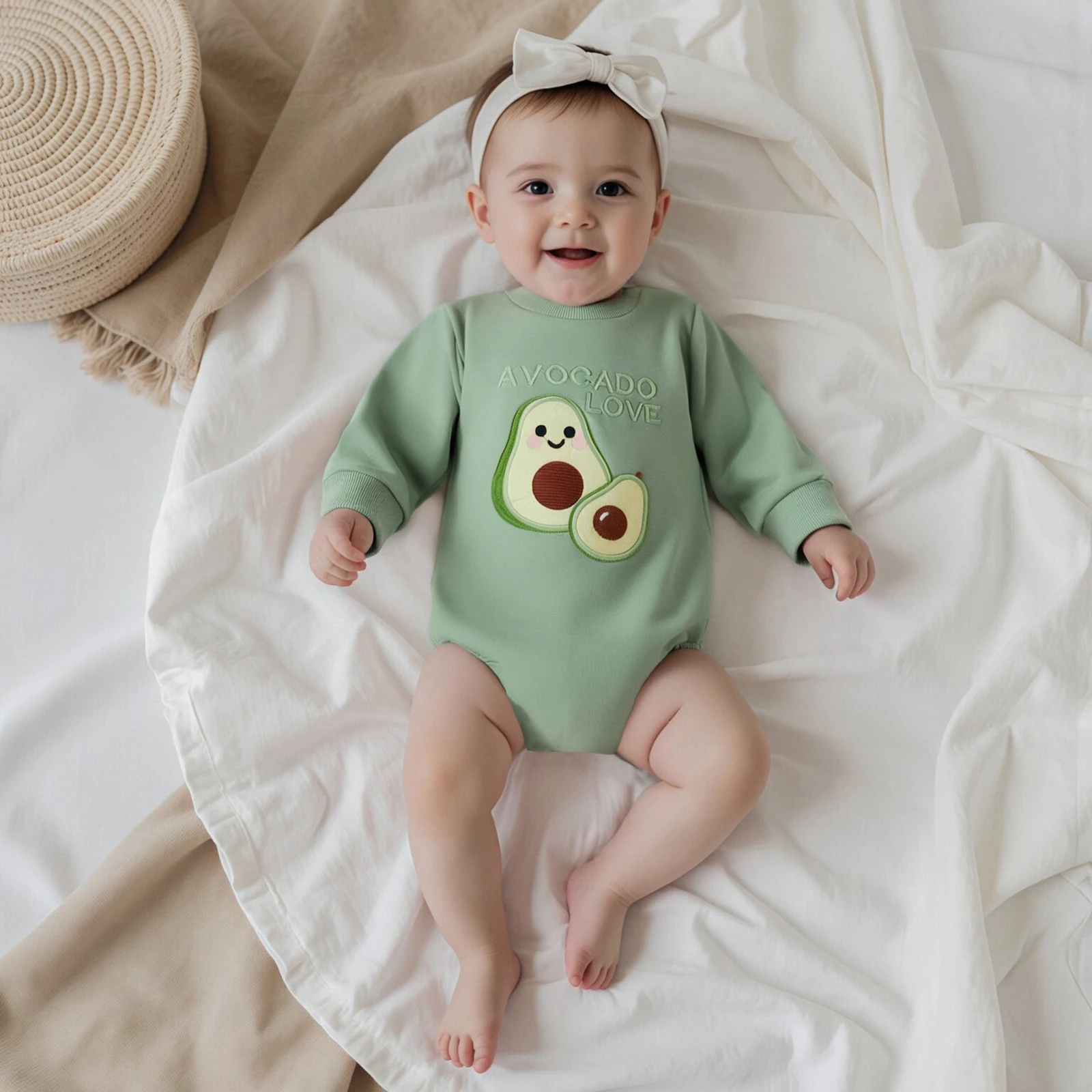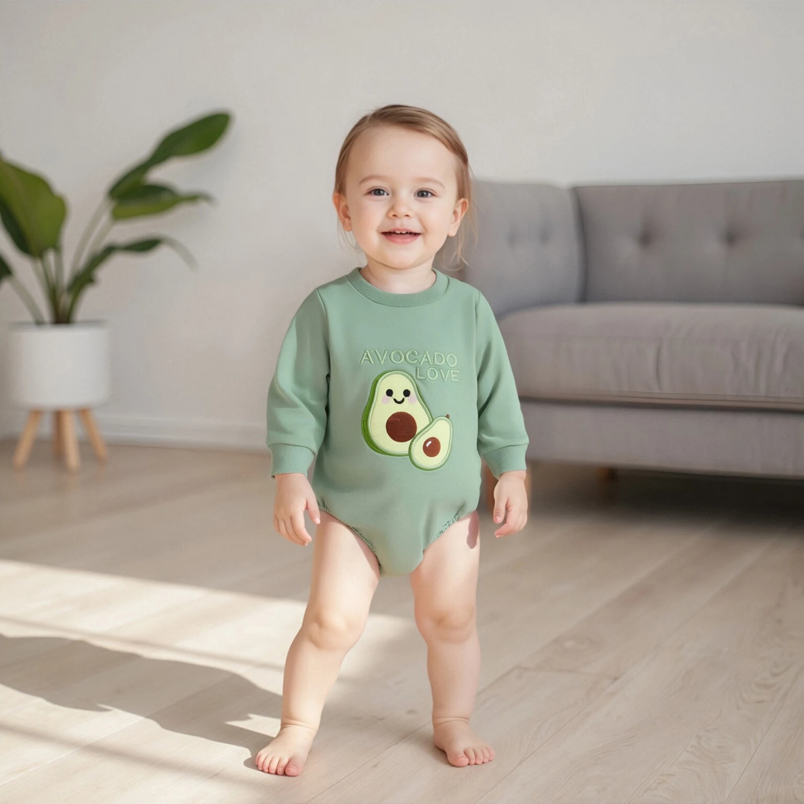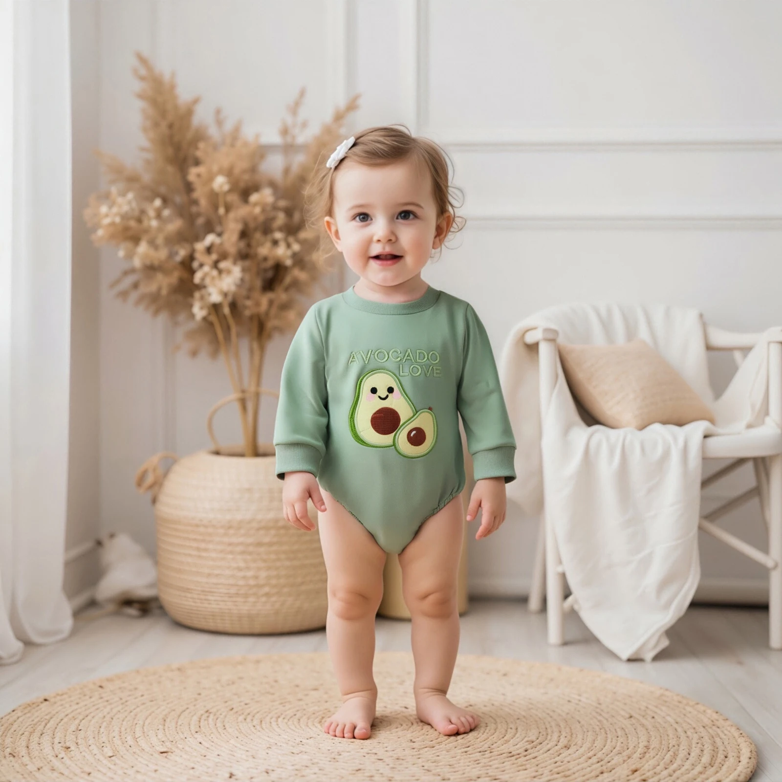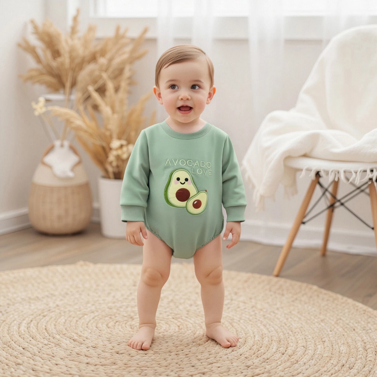 Introducing the adorable Baby Boy Romper designed for casual daily wear. This charming long sleeve bodysuit features a delightful avocado embroidery that adds a touch of whimsy to your little one’s wardrobe. Crafted for comfort and style, this romper is perfect for playdates, family gatherings, or simply lounging at home. Your baby will not only look lovely but will also receive plenty of compliments from family and friends!