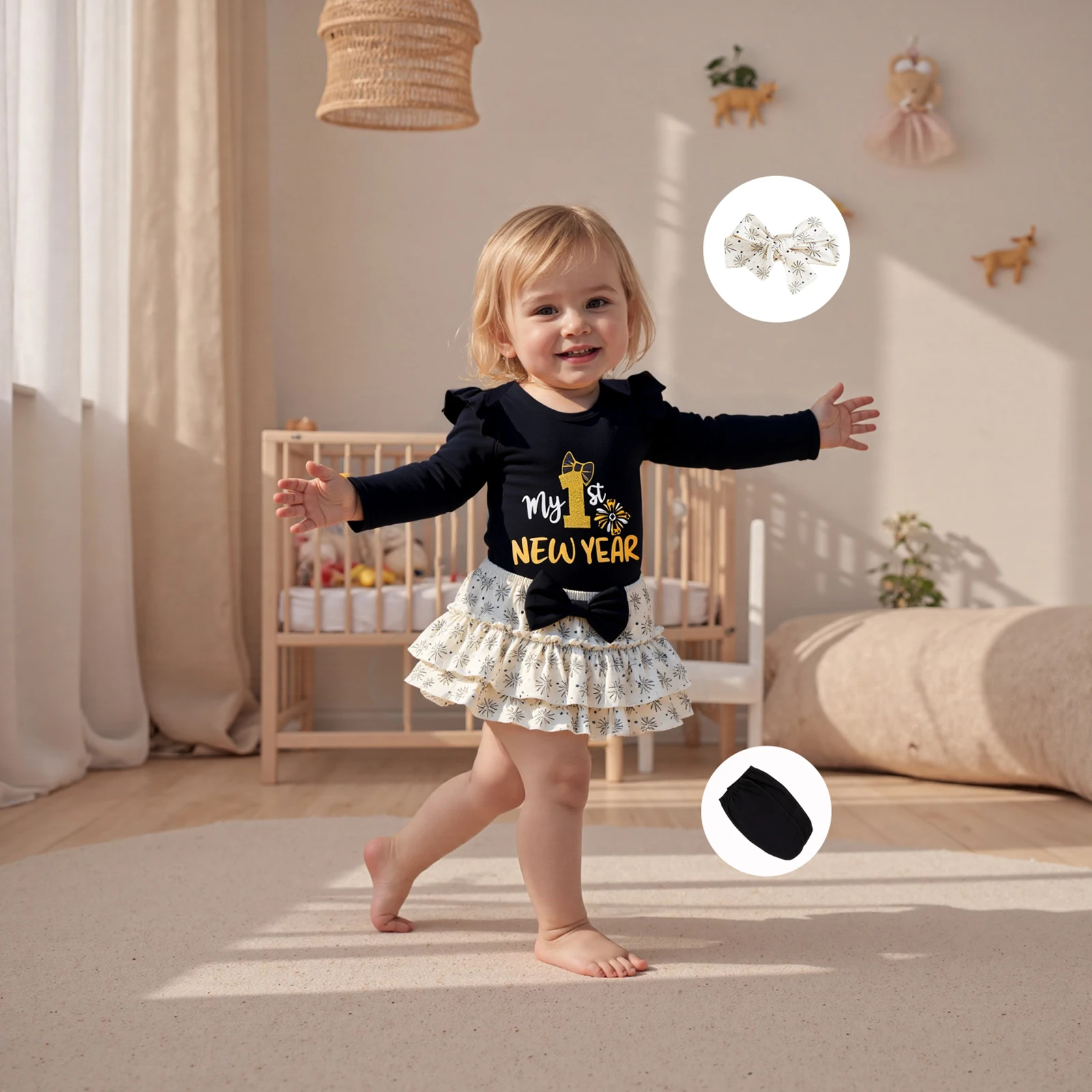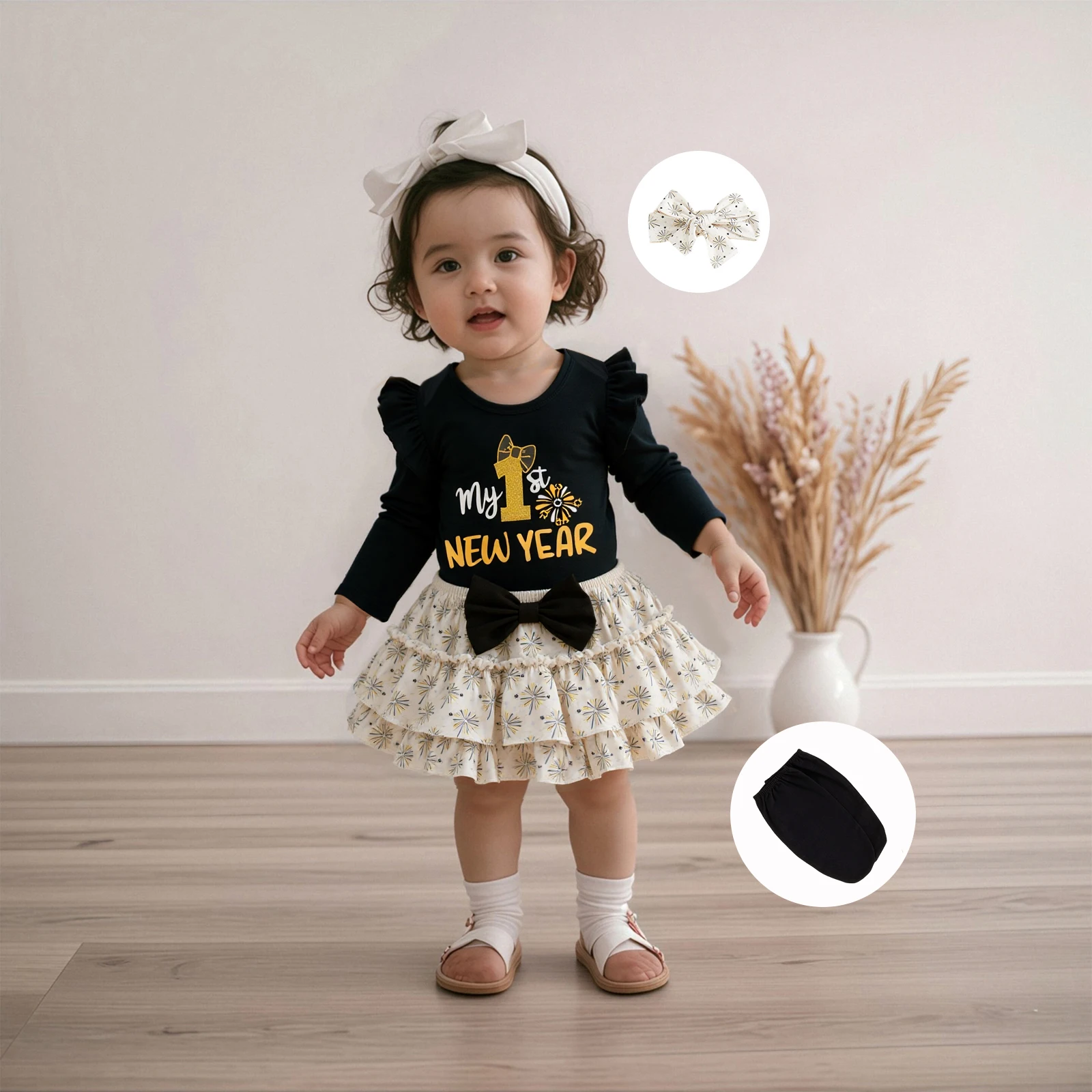 Introducing our adorable Baby Girl New Year Outfits, designed to make your little princess stand out during festive celebrations! This charming ensemble includes a long sleeve round neck romper, stylish shorts, a cute bow headband, and cozy long socks. Crafted with care and attention to detail, this outfit is perfect for any occasion, making it a must-have addition to your baby’s wardrobe.