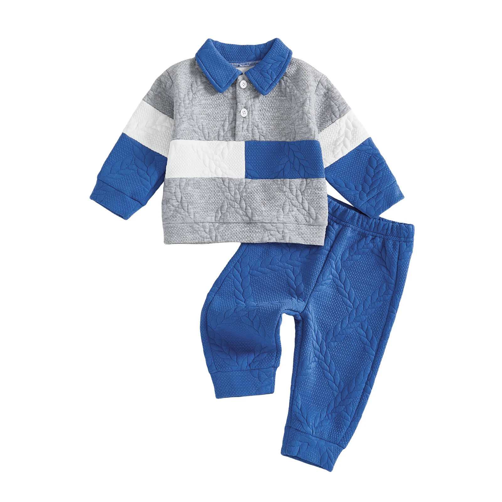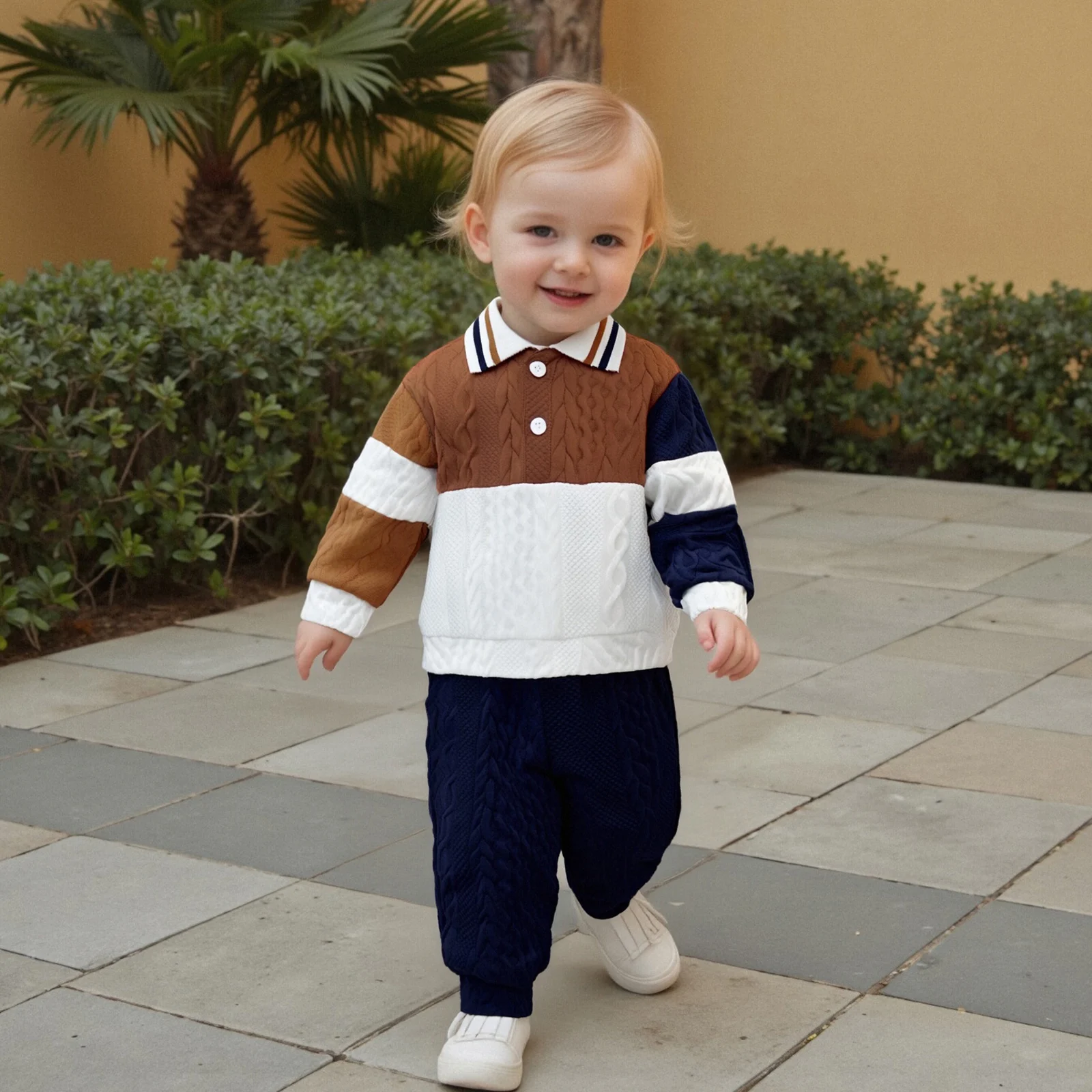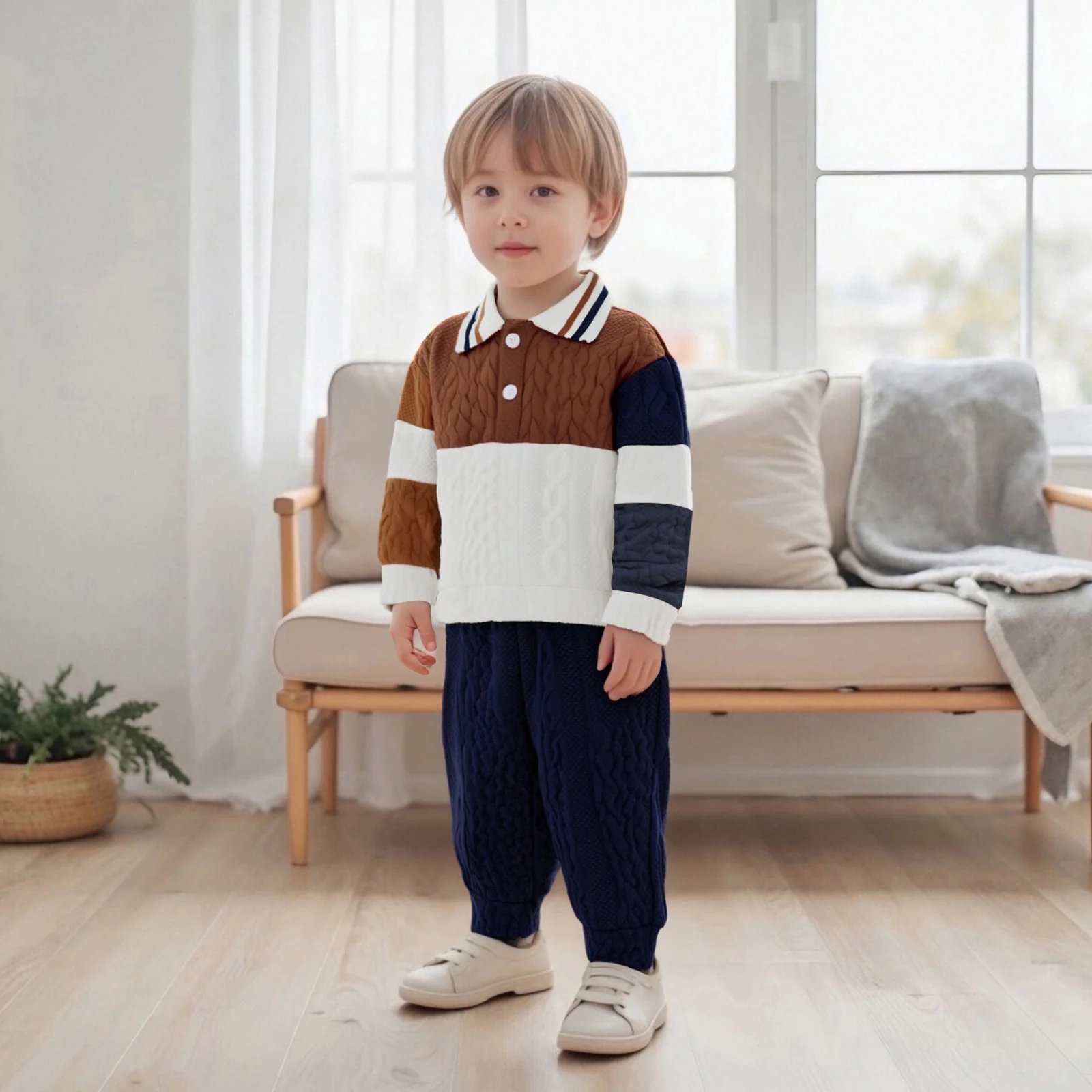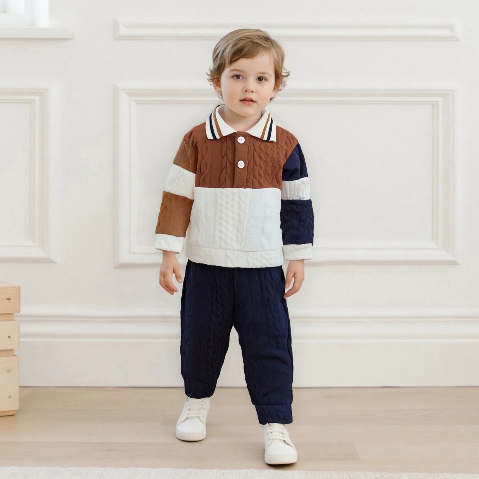 Dress your little one in style this autumn with our Toddler Boy Fall Outfits set, featuring a delightful patchwork long sleeve lapel knit pullover paired with elastic waist solid pants. Designed for comfort and style, this two-piece outfit is perfect for any occasion, from playdates to family gatherings. Crafted with care, this ensemble will keep your toddler looking adorable while providing the freedom to move and explore.