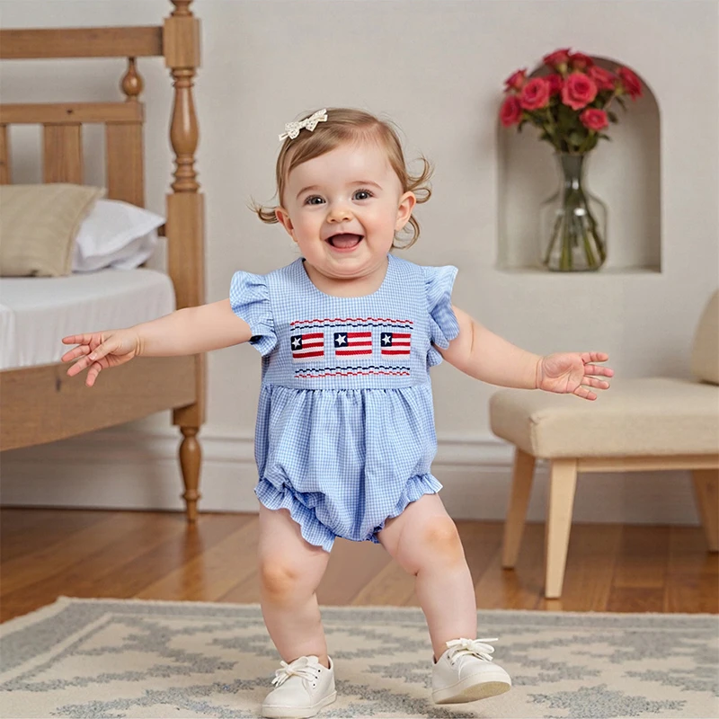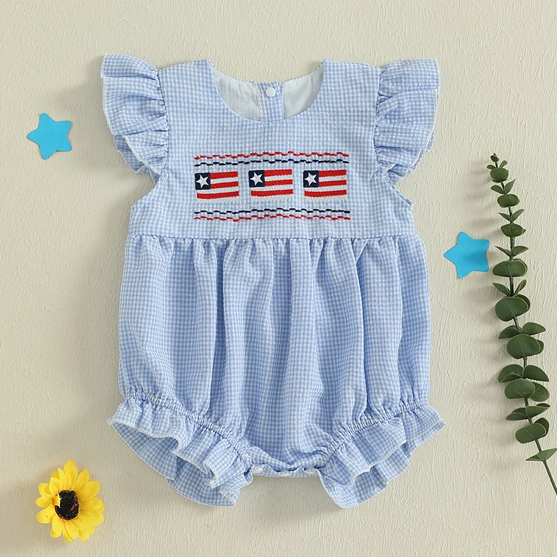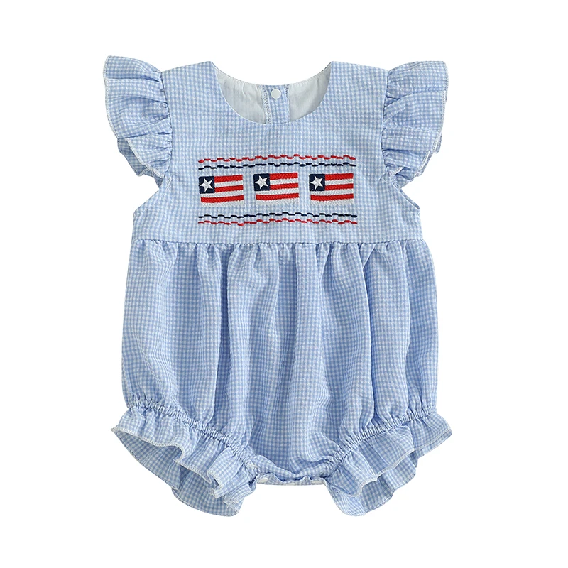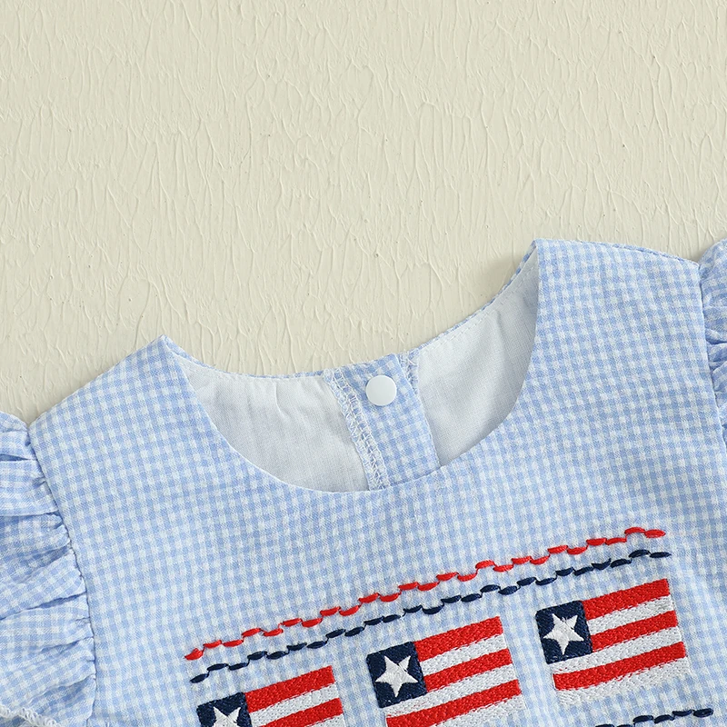 Elevate your little one’s wardrobe with our adorable Baby Girl Patriotic Romper. This charming jumpsuit is designed with a delightful mix of flag embroidery and plaid print, making it the perfect outfit for every occasion. Crafted with love and attention to detail, this romper combines style and comfort, ensuring your baby girl looks cute while feeling cozy.