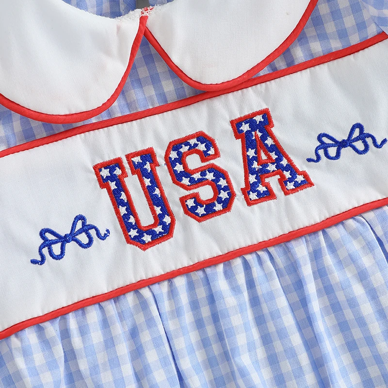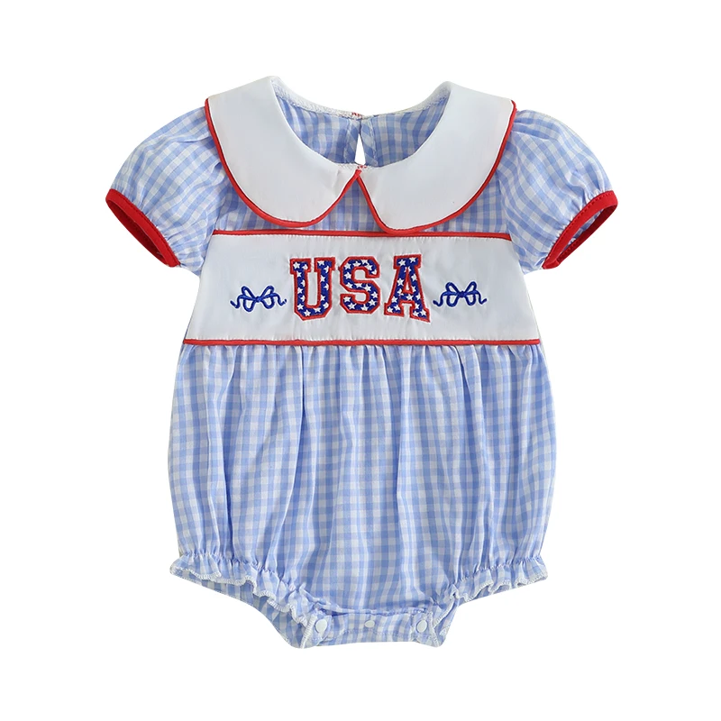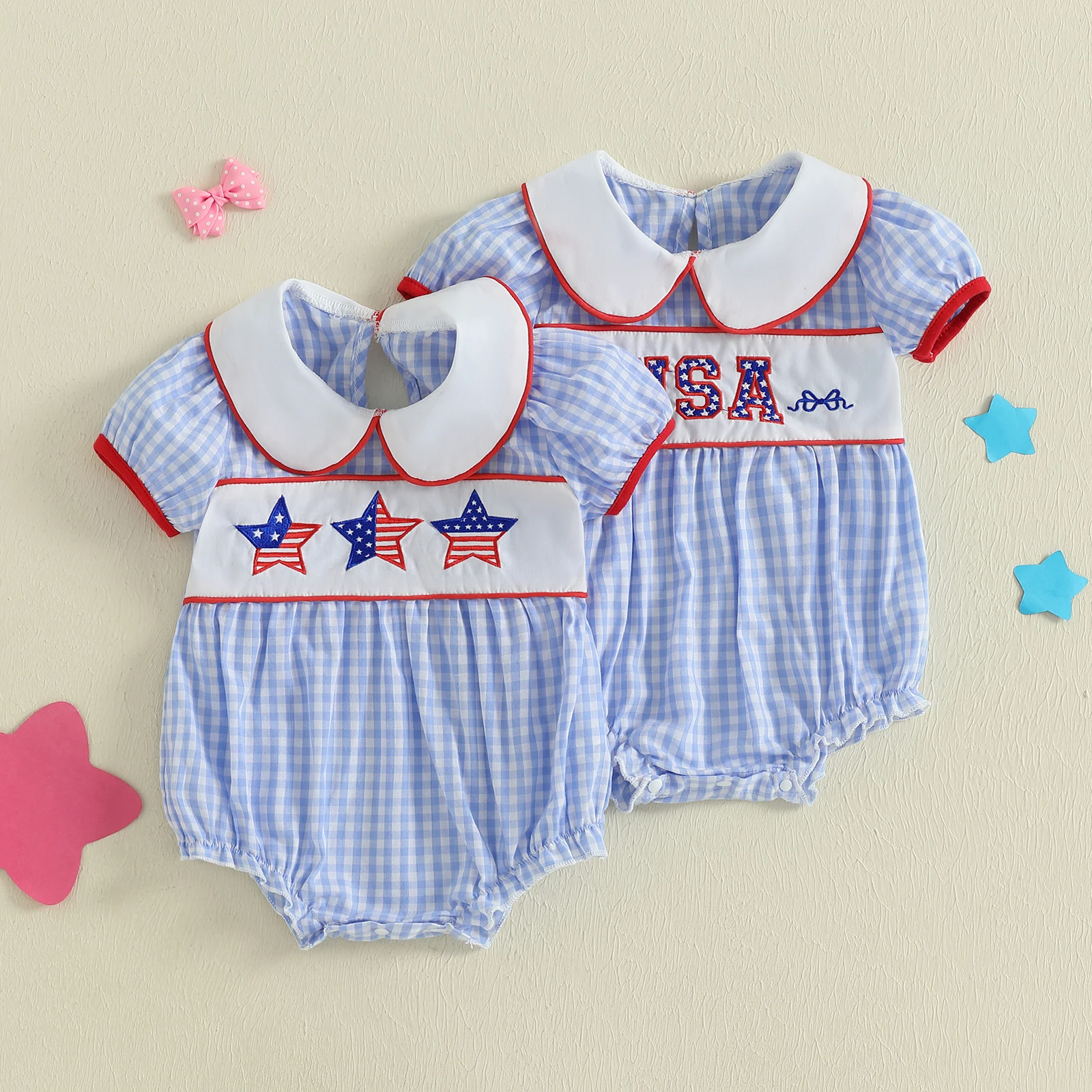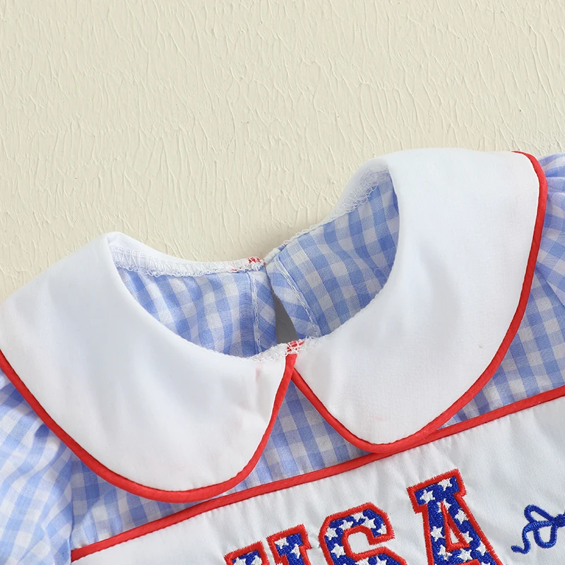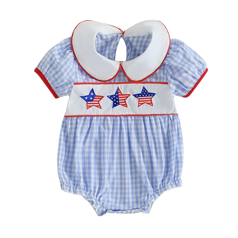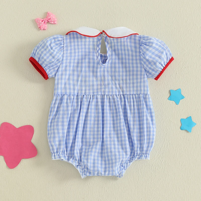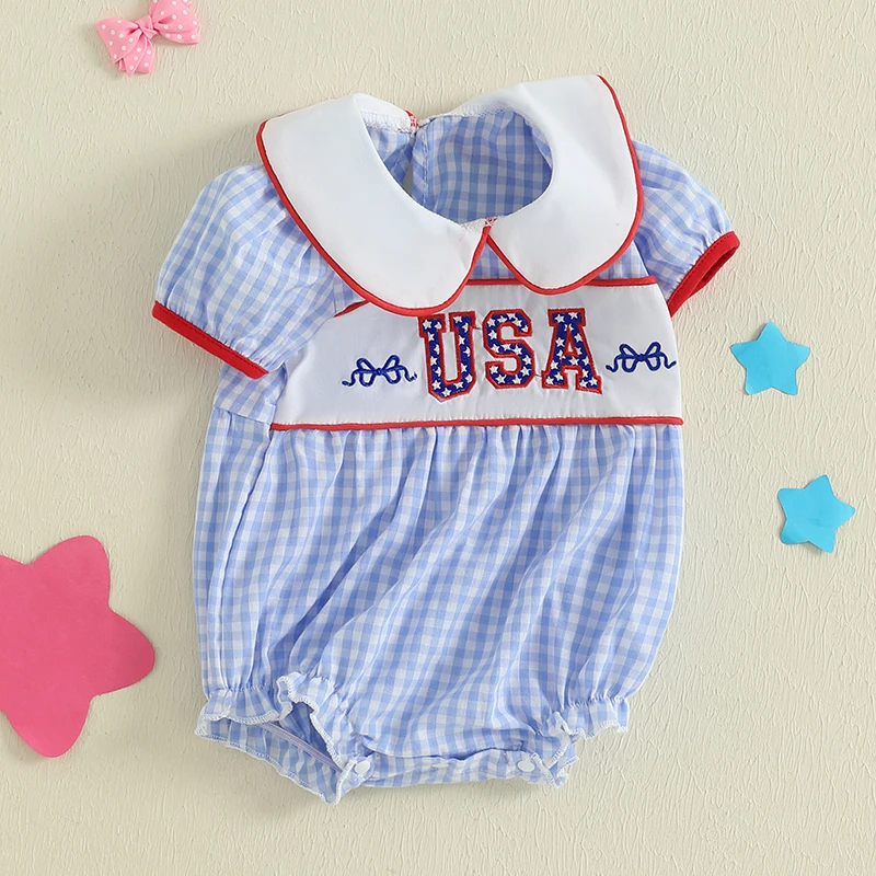Let your little one shine this Independence Day with our adorable Baby Girls Independence Day Romper. Featuring a charming doll collar, letter and star embroidery, and a playful plaid design, this short sleeve jumpsuit is perfect for celebrating special occasions or for everyday wear. Its comfortable fit and stylish design make it an essential addition to your baby girl’s wardrobe.