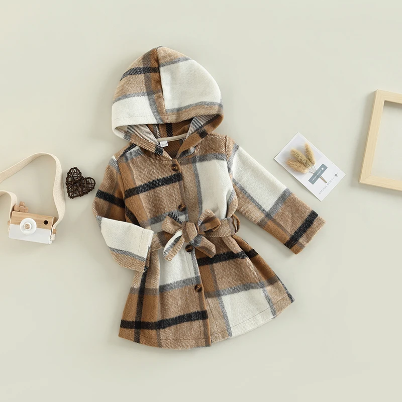 Introducing the Toddler Girls Flannel Plaid Jacket, a stylish and versatile outerwear piece designed for your little one’s comfort and fashion. Whether it’s for a casual day out or a family gathering, this long sleeve button-down belted coat with a hood is the perfect addition to any toddler’s wardrobe. Crafted to keep your child warm yet stylish, this jacket is ideal for spring and fall seasons, making it a must-have for every young girl’s closet.